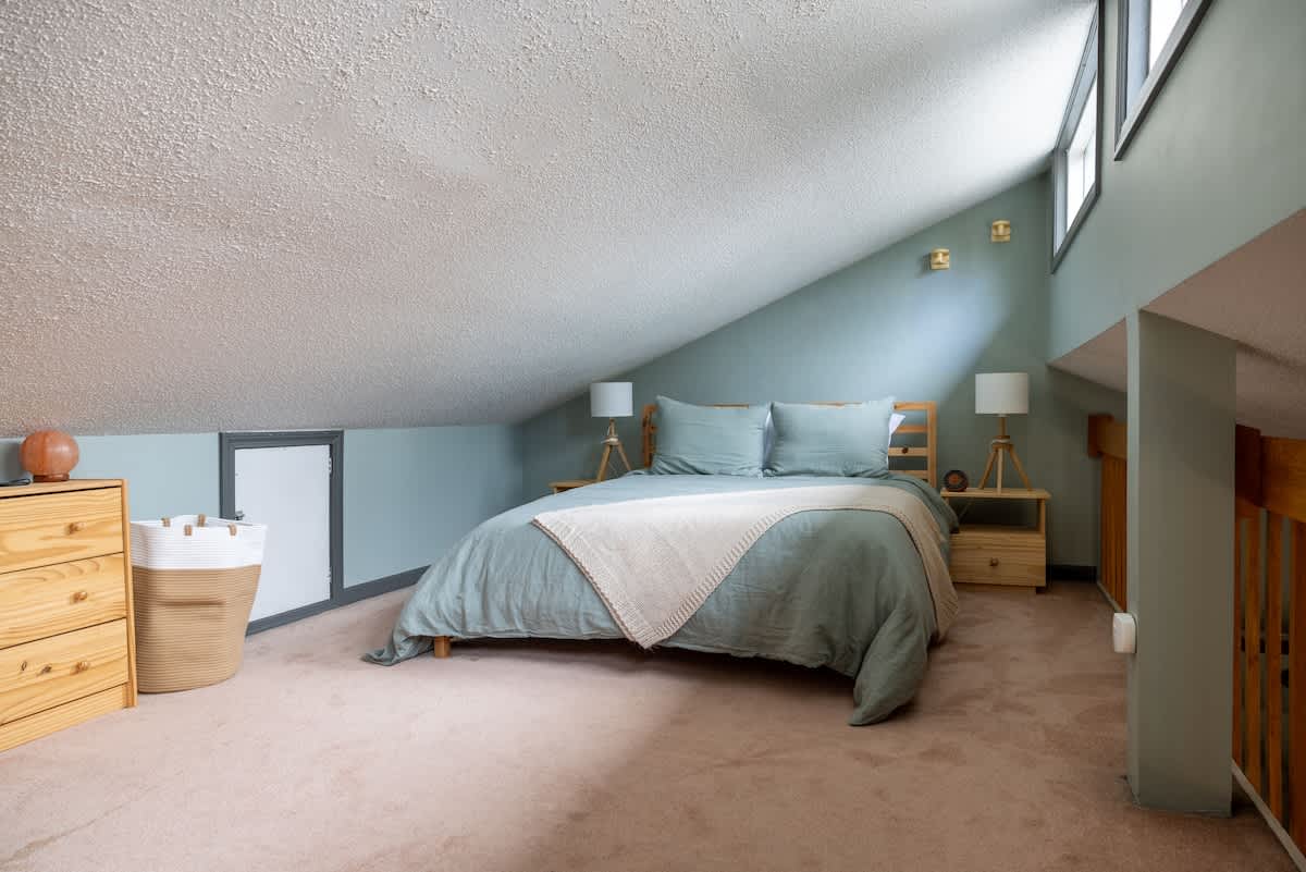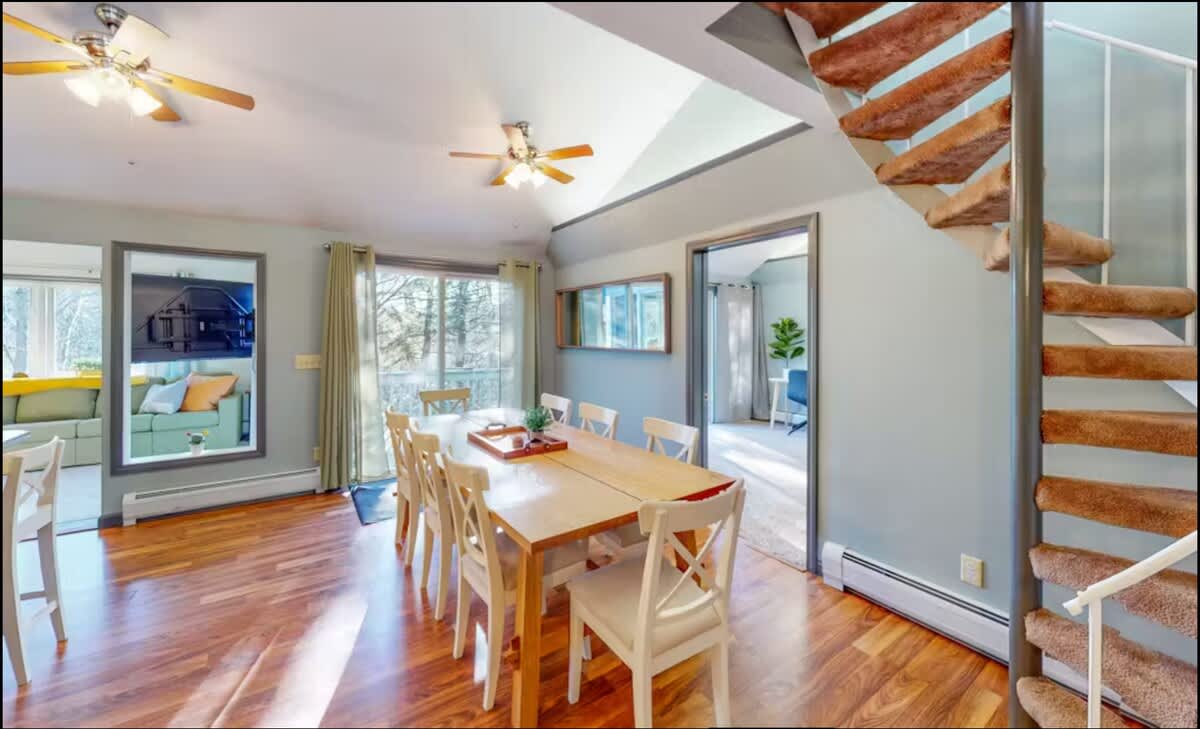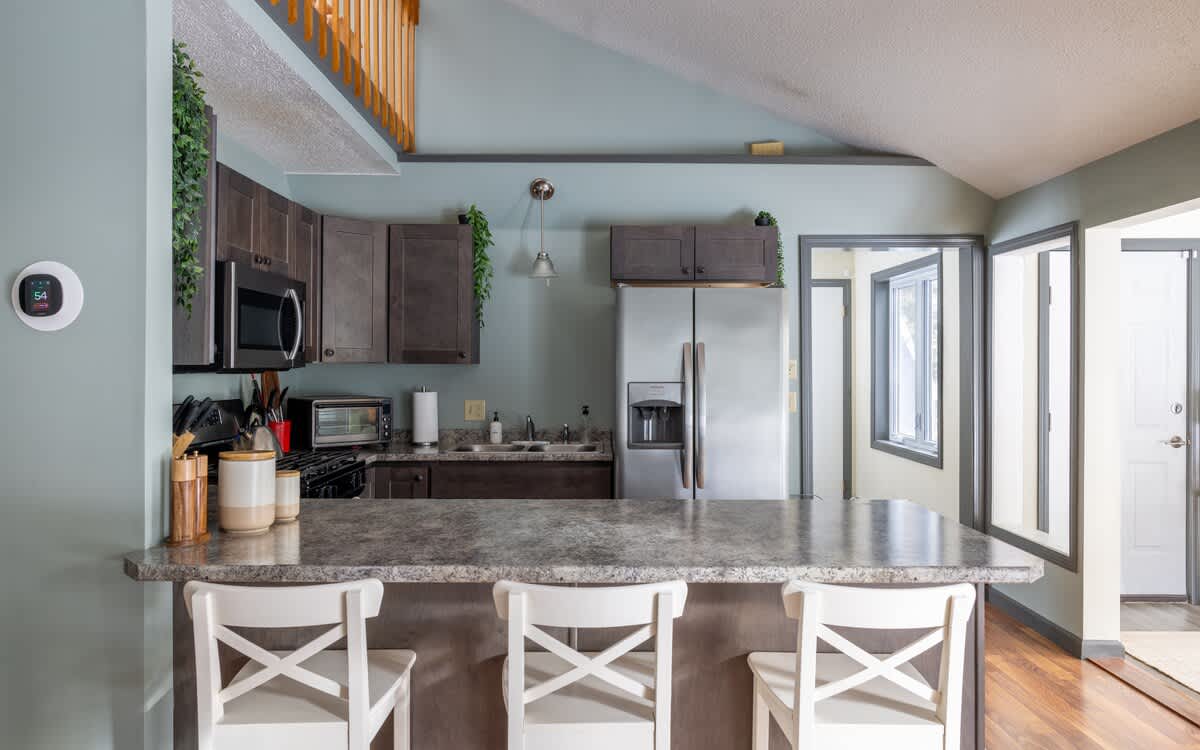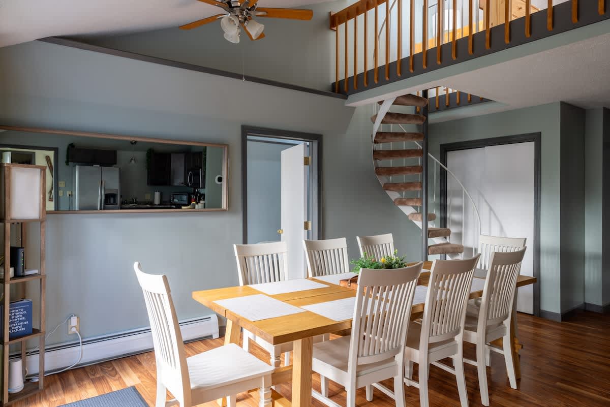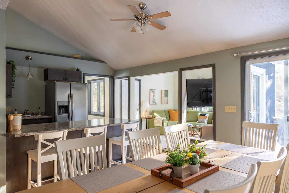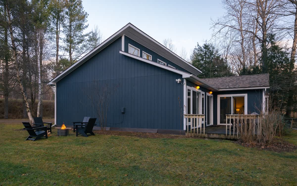 Our family-friendly getaway has been thoughtfully updated with modern-day amenities for the utmost enjoyment: a peaceful setting, three bedrooms, one bathroom, renovated kitchen, outdoor fire pit area, EV charger, washer and dryer, modern decor and amenities…all while being less than 10 minutes away to Jay Peak Resort.