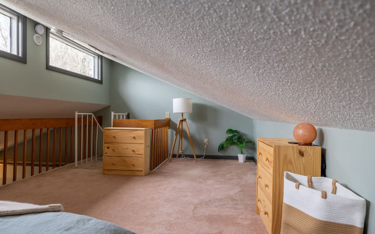 The Chestnut Ridge Cabin is equipped with everything you'll need for an awesome Vermont getaway! The house offers three bedrooms (main floor: one bedroom with a king, one bedroom with two twin-over-twin bunk beds; second floor: open loft bedroom with a queen), one bathroom, a recently renovated kitchen with stove, oven, microwave, and several coffee makers (drip and french press), WiFi, three smart TVs, Public Goods products, organic bed and bath linens, washer and dryer available for guest use, an EV charger, carport for inclement weather, mudroom with ski storage, dedicated work space, outdoor deck with Adirondack rockers, and an outdoor fire pit area with addition lounge seating, all while sitting adjacent to the Jay Branch of Crook Brook for some relaxing river ambiance.