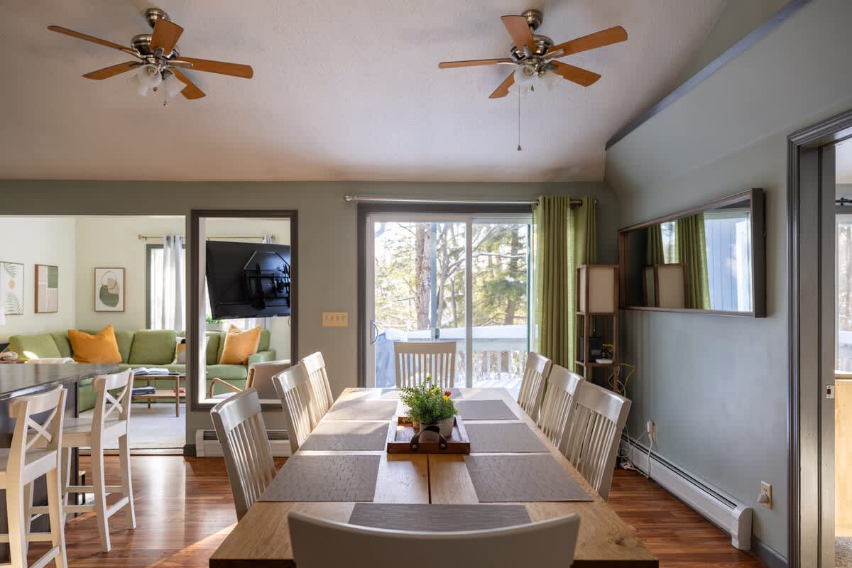 Our family-friendly getaway has been thoughtfully updated with modern-day amenities for the utmost enjoyment: a peaceful setting, three bedrooms, one bathroom, renovated kitchen, outdoor fire pit area, EV charger, washer and dryer, modern decor and amenities…all while being less than 10 minutes away to Jay Peak Resort.