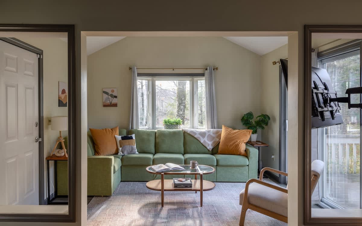 Our family-friendly getaway has been thoughtfully updated with modern-day amenities for the utmost enjoyment: a peaceful setting, three bedrooms, one bathroom, renovated kitchen, outdoor fire pit area, EV charger, washer and dryer, modern decor and amenities...all while being less than 10 minutes away to Jay Peak Resort.