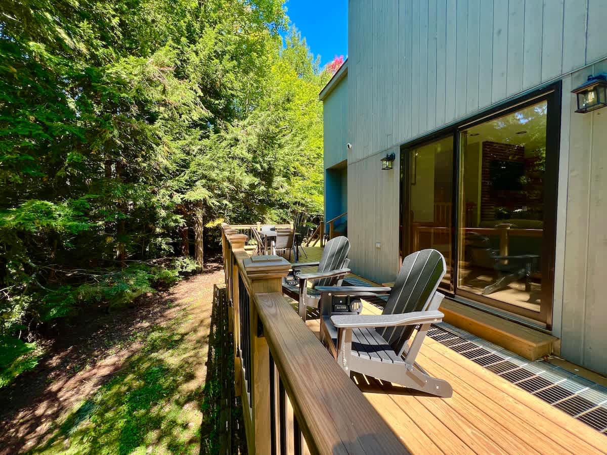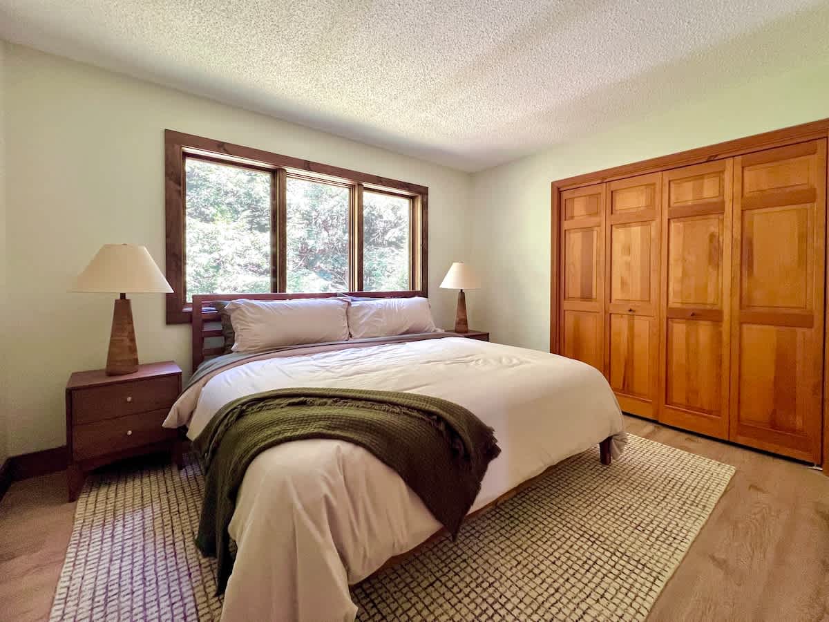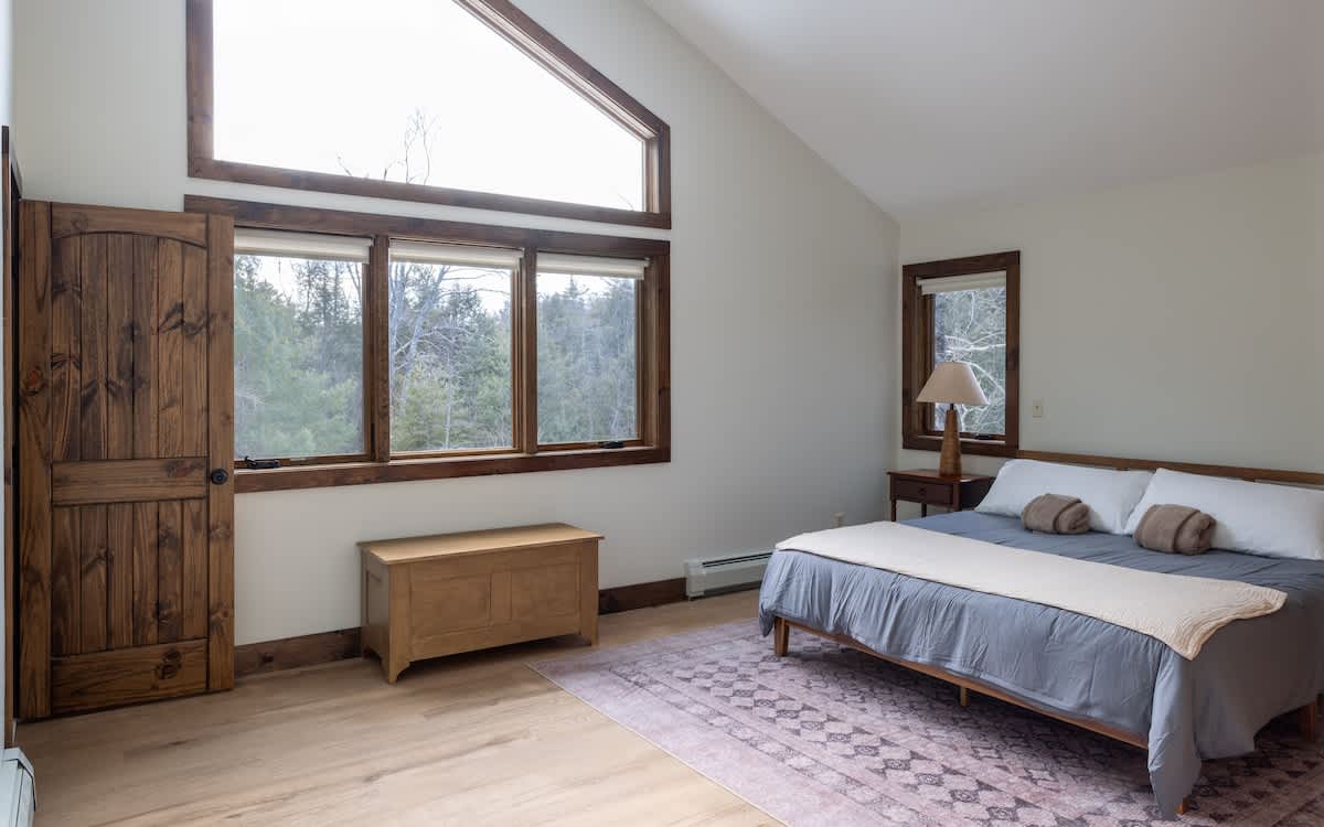 The Derry Woods Cabin is equipped with everything you'll need for an awesome Vermont getaway! The house offers three bedrooms: bedroom 1 king with ensuite bathroom, bedroom 2 with another king, and then a third bedroom with a queen, and a twin-over-twin bunk bed. We also have a total of two and a half newly renovated bathrooms, a fully stocked kitchen with stove, oven, microwave, and drip coffee maker, Nespresso, WiFi, Public Goods products, dedicated work space, indoor wood burning fireplace, washer and dryer available for guest use, two outdoor decks with outdoor dining area, Adirondack chairs, and an outdoor fire pit...just to name a few features!