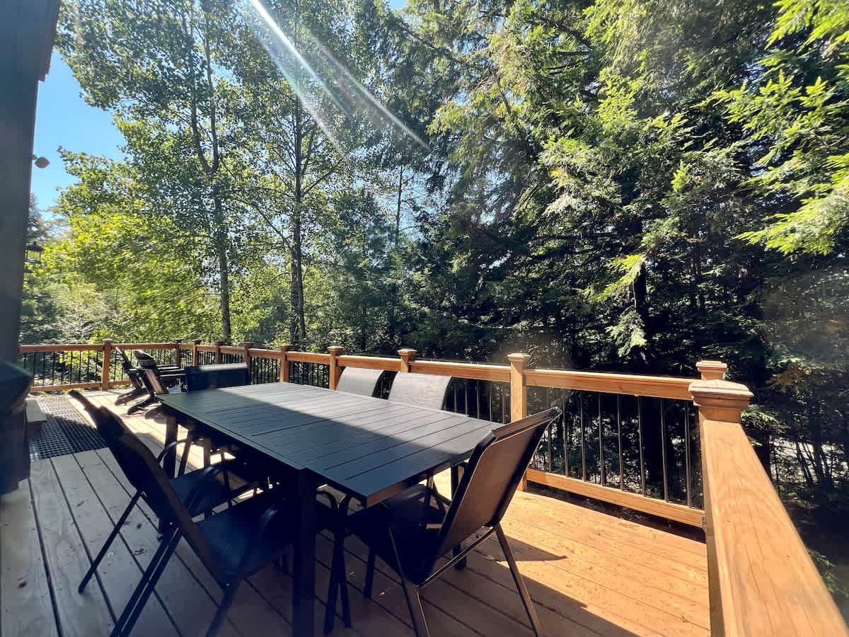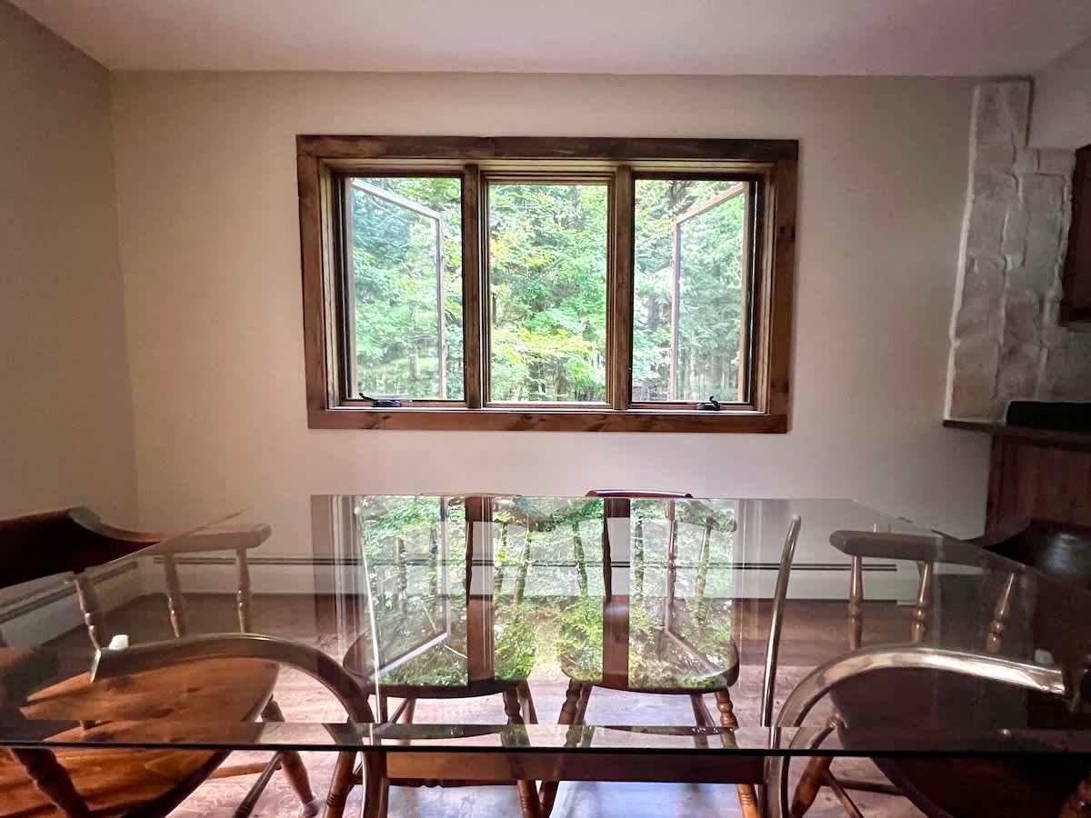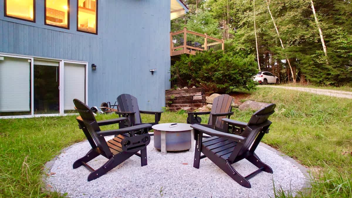 Our contemporary cabin has been thoughtfully updated for a great family getaway: a peaceful setting, three bedrooms, two and a half new bathrooms, indoor wood burning fireplace, outdoor fire pit area, outdoor dining area…all while being central to some of the best Vermont skiing, dining, and activities and under a mile to the beautiful Lowell Lake State Park with swimming, kayaking, and hiking!