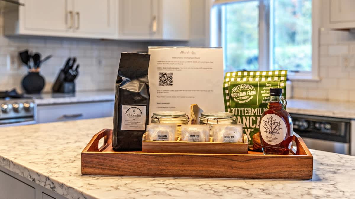 Welcome to Enchanted Views, a newly renovated 3-bedroom home on the edge of Stowe, Vermont. This newly renovated retreat offers breathtaking views from every room—mountains from the living spaces and a tree-lined pond from the upstairs bedrooms. Just 4 miles from Stowe Village and 10 miles from Stowe Mtn Resort, you’re perfectly positioned for skiing, hiking, and dining. Enjoy the front deck, wood-burning fire pit, ping pong table and cozy fireplace for the ultimate Vermont escape.
