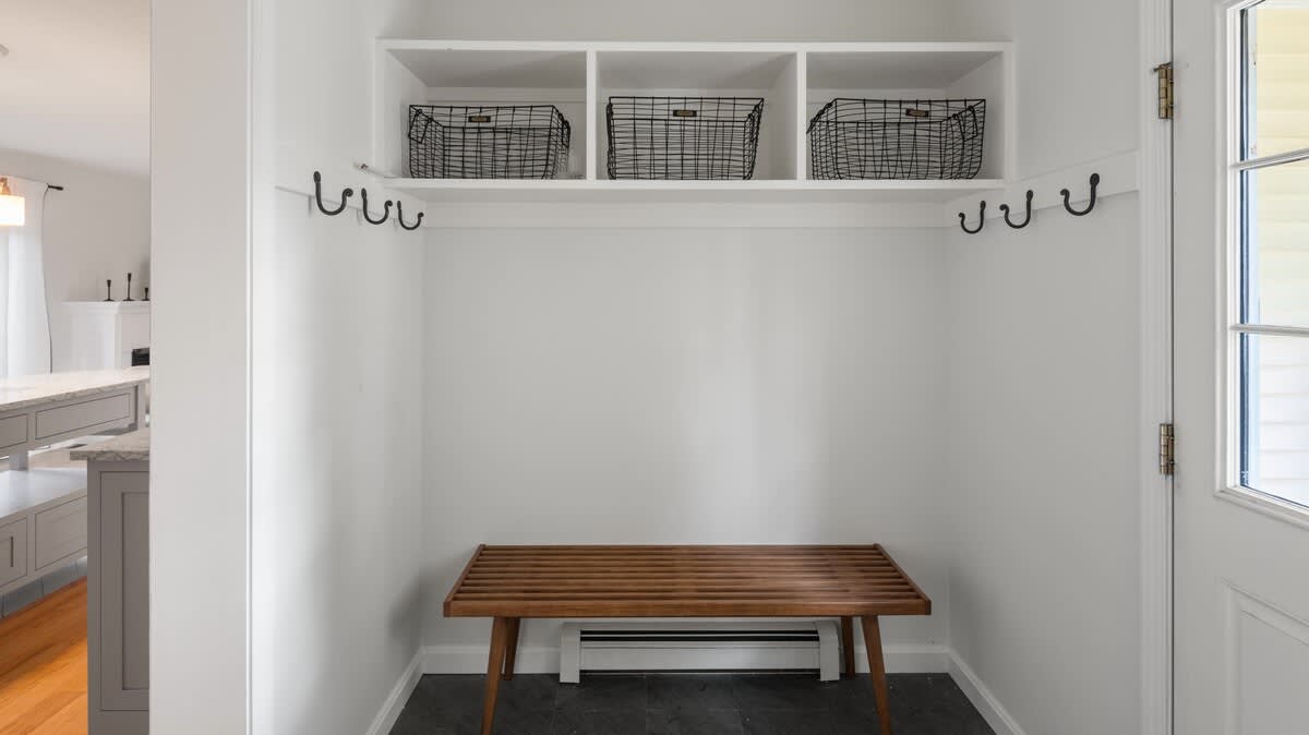 Pull into the home and enter through the garage into a convenient mudroom, furnished with a bench and plenty of hooks to store all your gear, no matter the season.