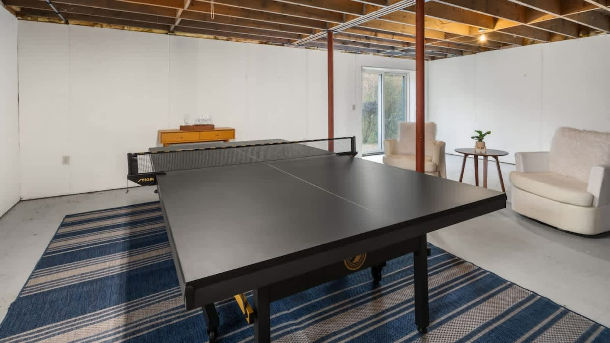 The expansive living room offers ample space for everyone to gather, play board games, or watch a favorite movie after a day of fresh mountain air. The kids will love the basement, complete with a ping-pong table and plenty of room to play.
