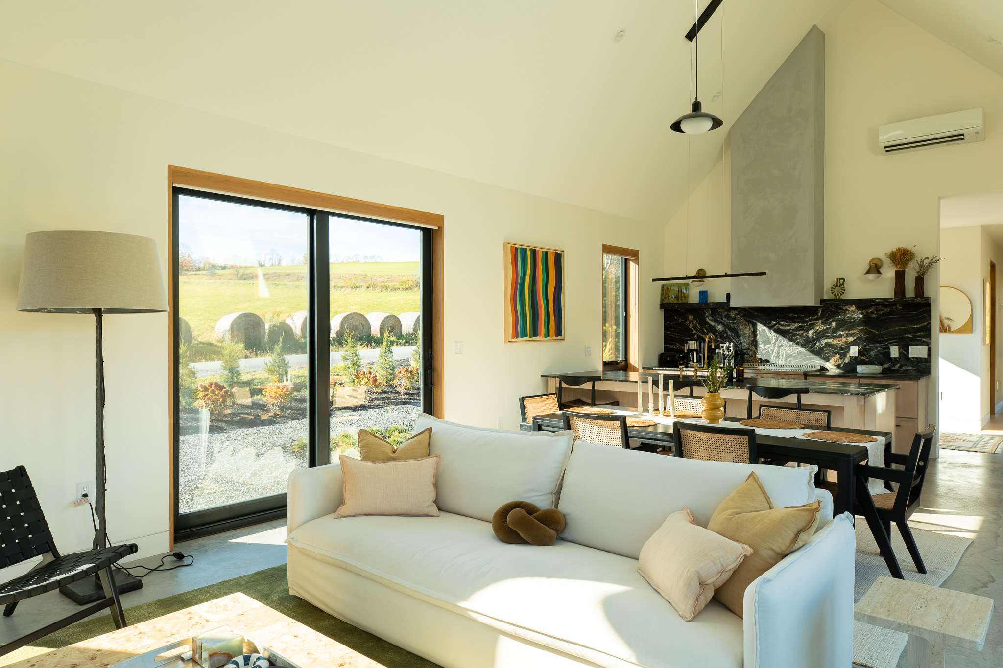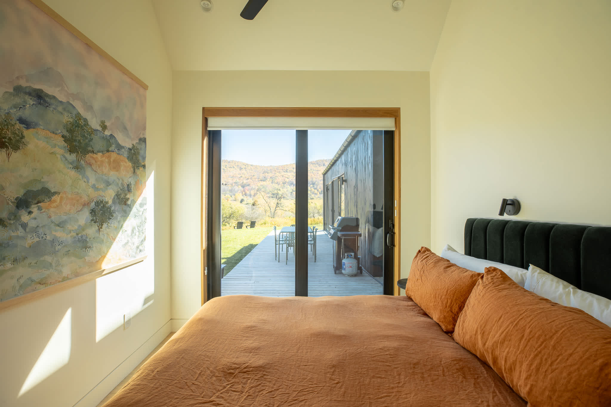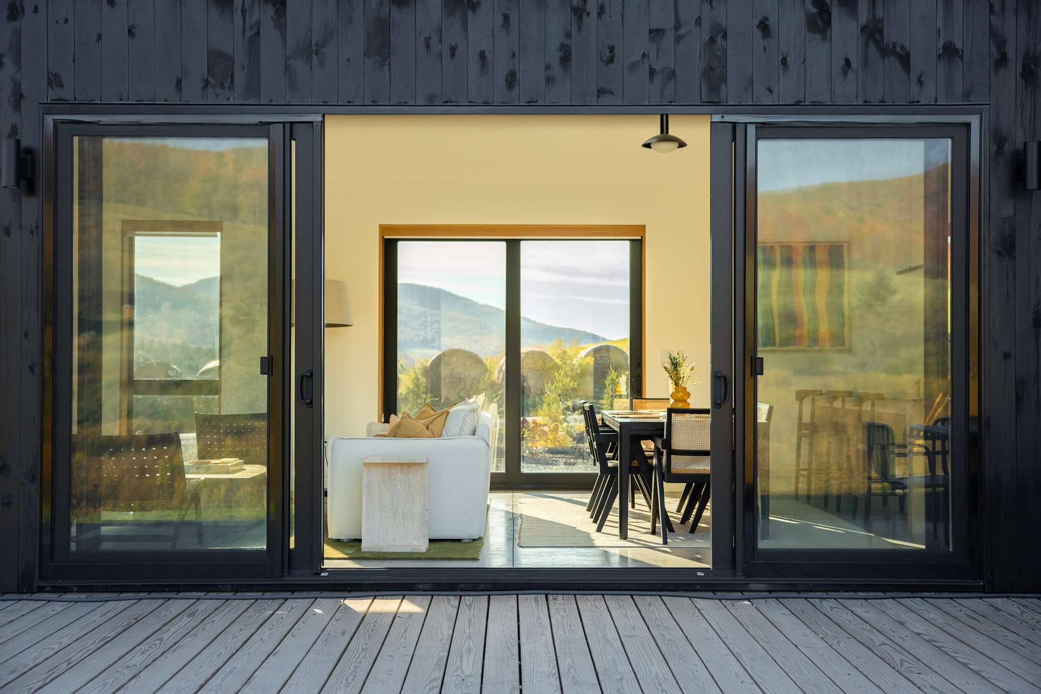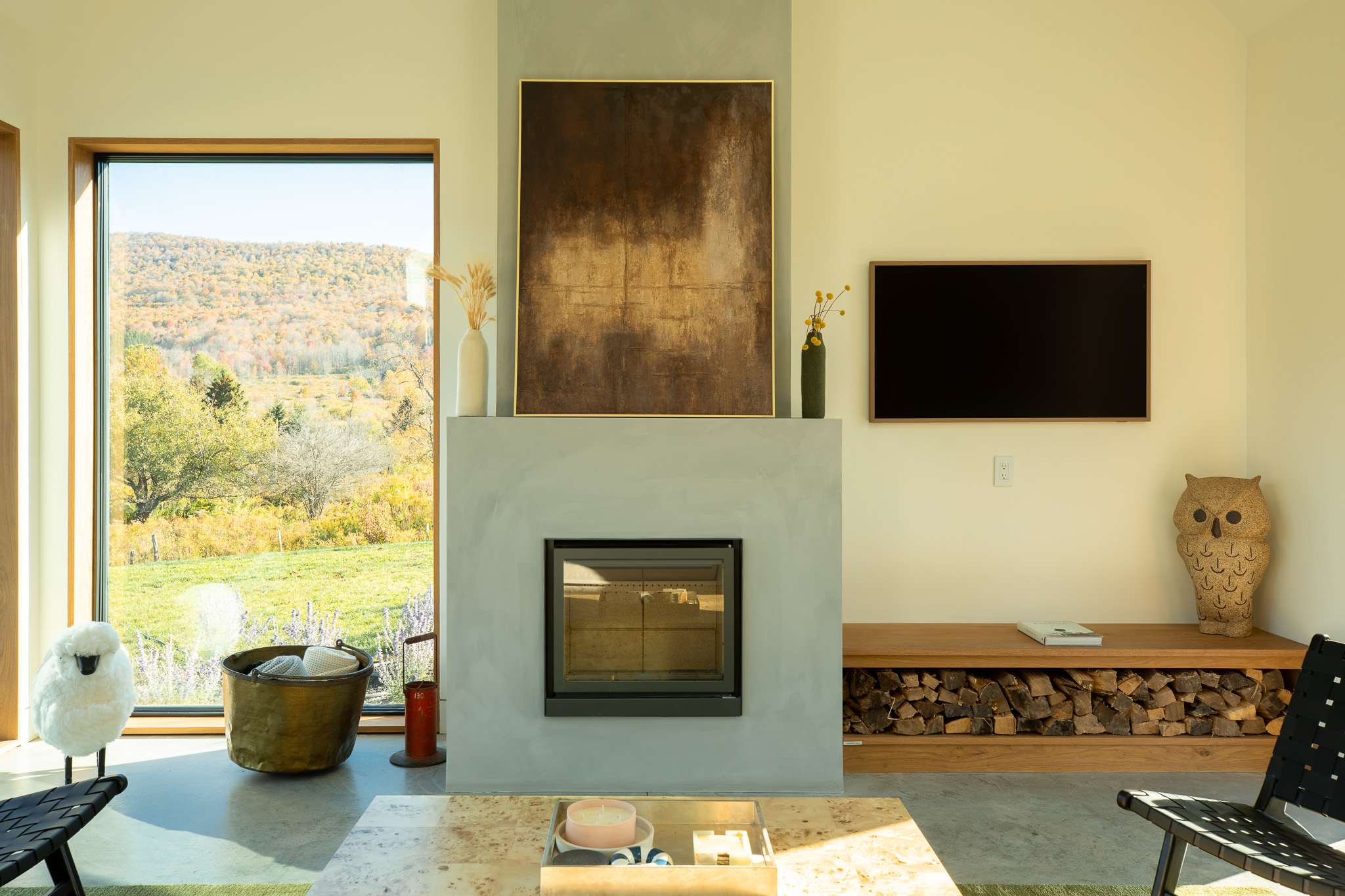 Endless Meadow House is a modern 3 bed, 2 bath black barn retreat just under 3 hours from NYC. With a breathtaking backdrop of lush mountains, rolling meadows & open farmland, the home features Scandinavian inspired design, large windows offering panoramic views, a cozy fireplace, a firepit for evenings under the stars & a small bedroom that doubles as an office.