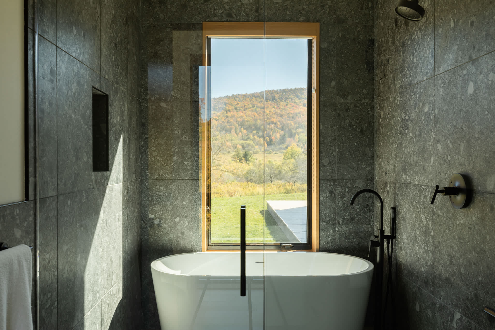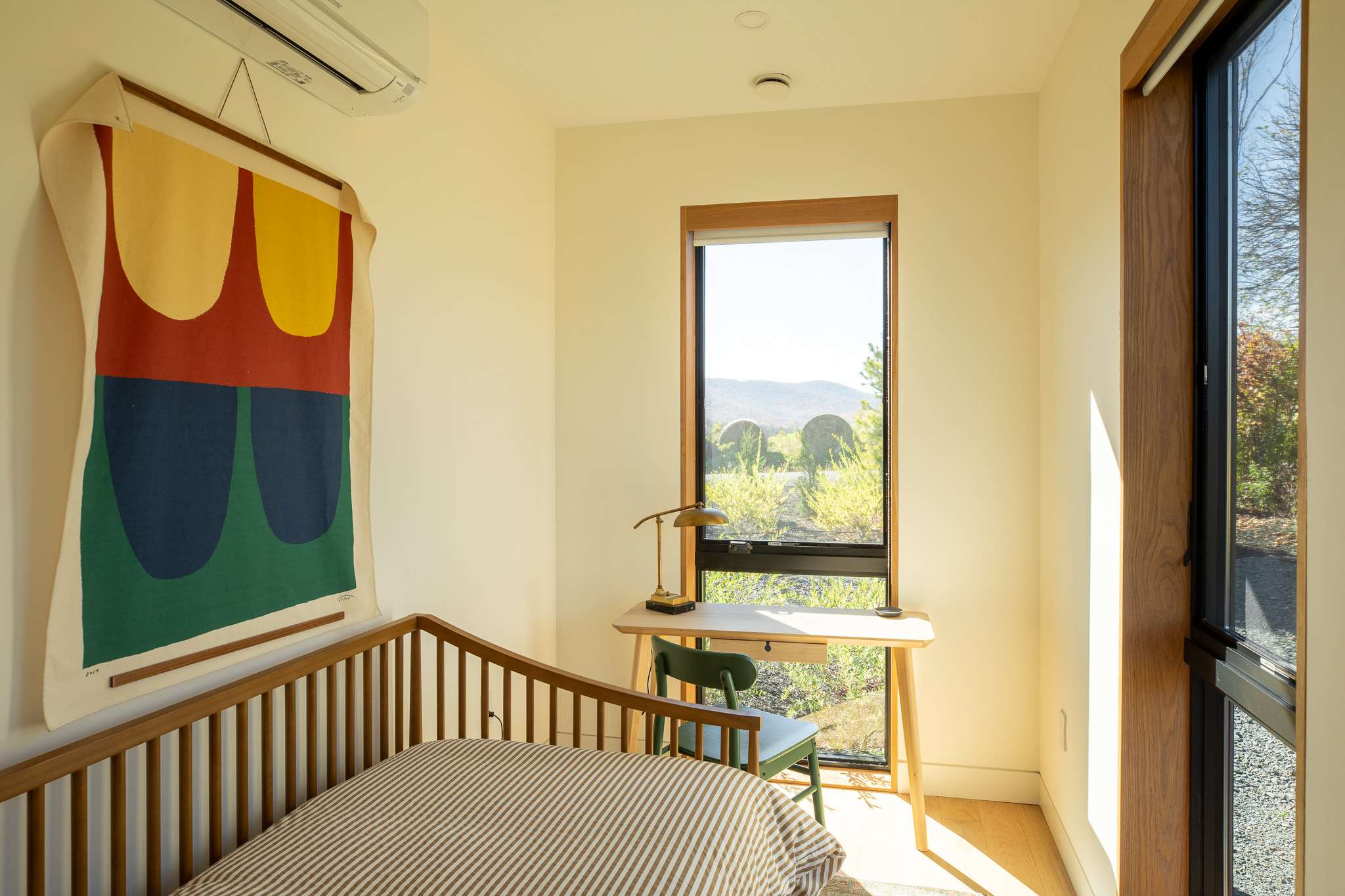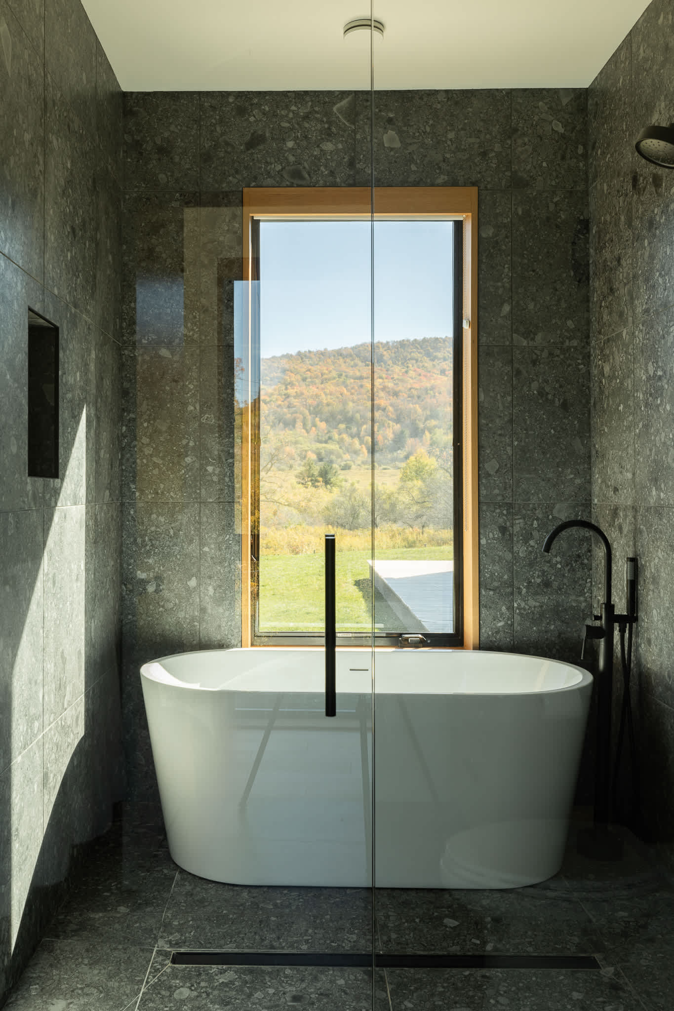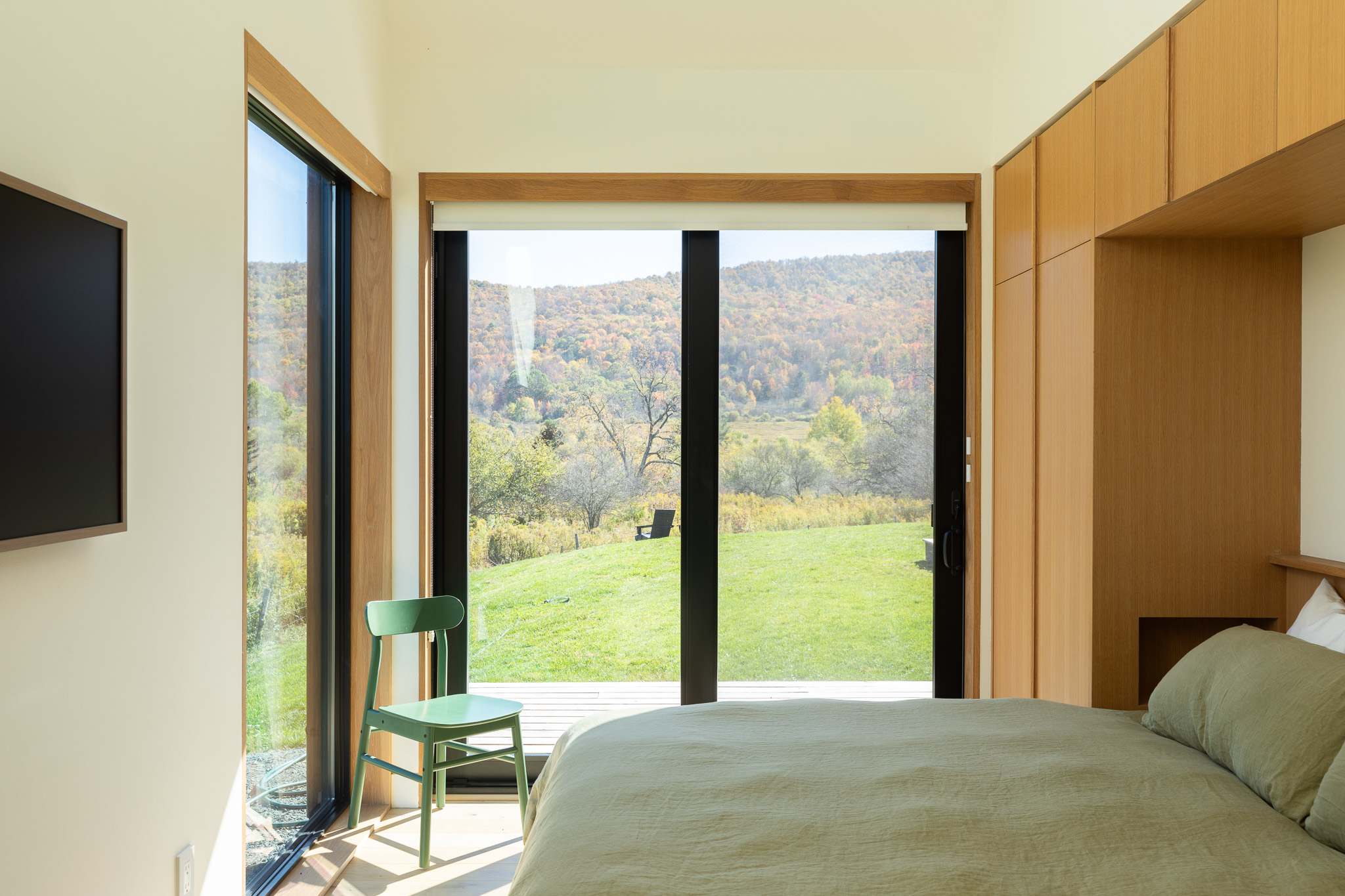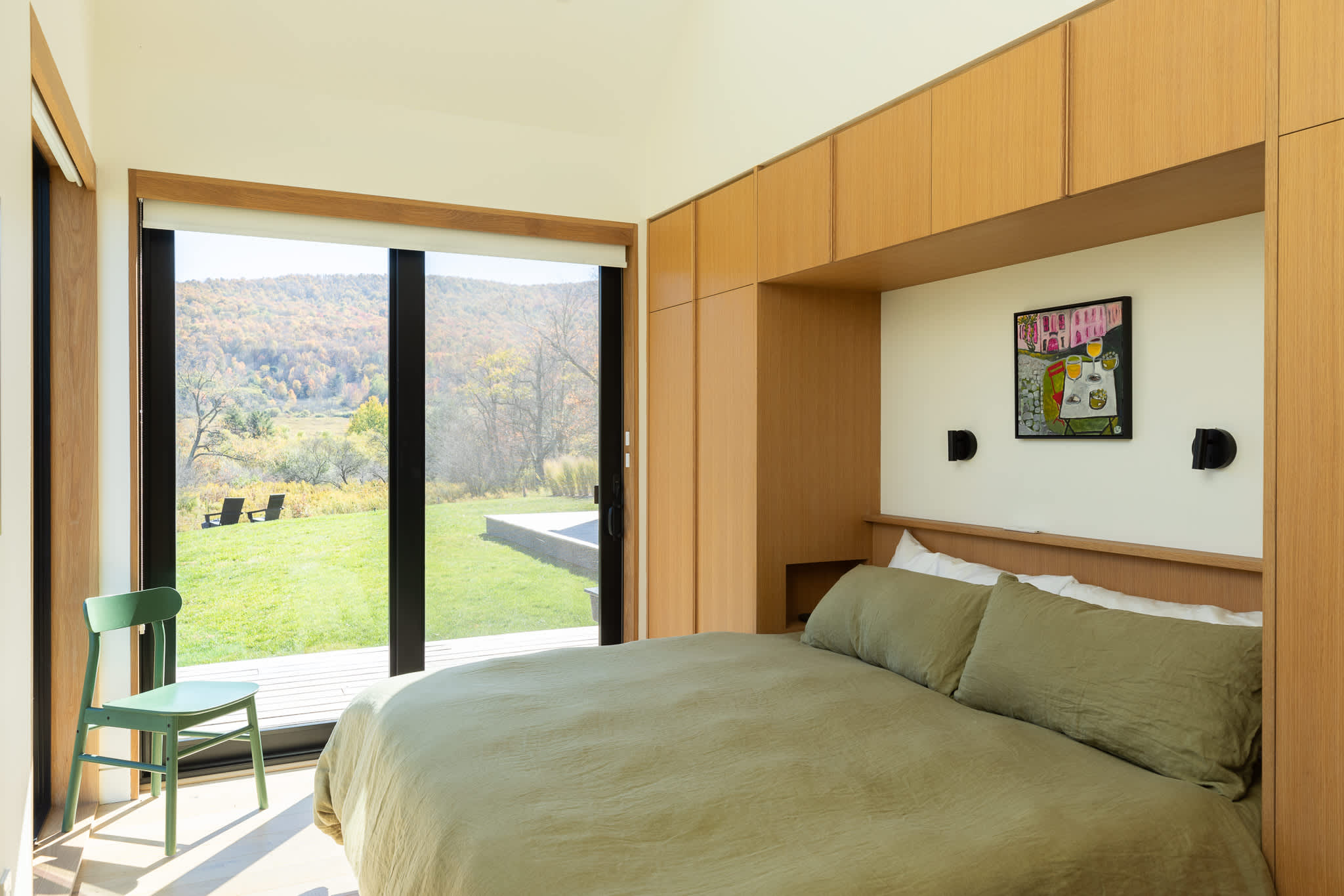 Endless Meadow House is a modern 3 bed, 2 bath black barn retreat just under 3 hours from NYC. With a breathtaking backdrop of lush mountains, rolling meadows & open farmland, the home features Scandinavian inspired design, large windows offering panoramic views, a cozy fireplace, a firepit for evenings under the stars & a small bedroom that doubles as an office.