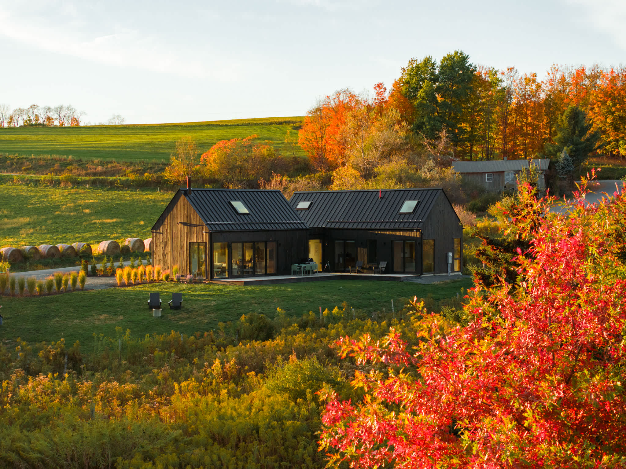 Welcome to your idyllic countryside escape — Endless Meadow House is a beautiful, contemporary black barn home, nestled in the rolling green hills and serene meadows with an elegant profile that harmonizes beautifully with its natural surroundings.