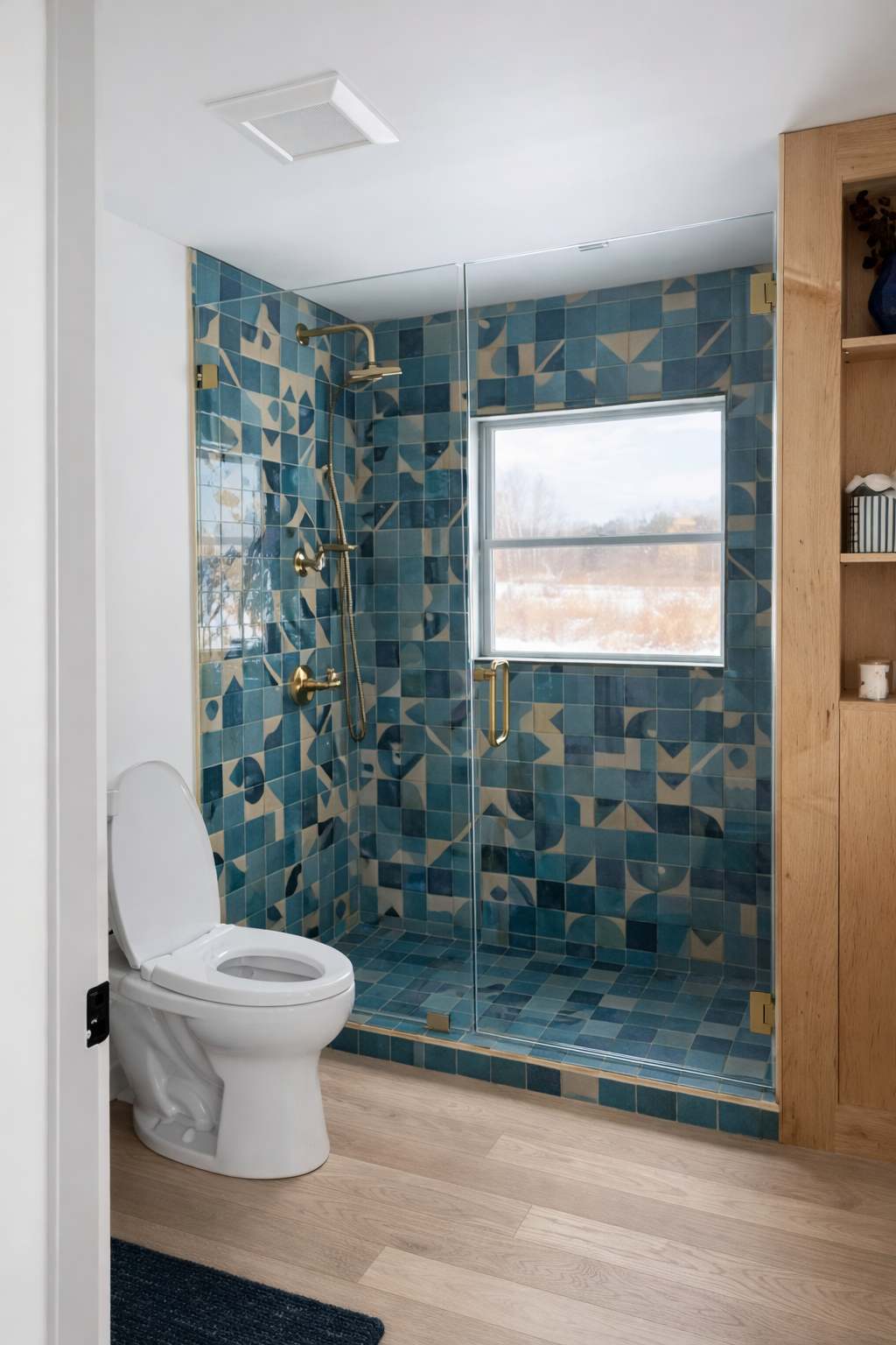 The living room, designed to maximize natural light and showcase the stunning surroundings, provides a tranquil retreat to unwind. For entertainment and relaxation, the vibrant blue TV room beckons with its generous sectional sofa and an enormous screen, promising delightful movie nights or immersive TV show marathons.