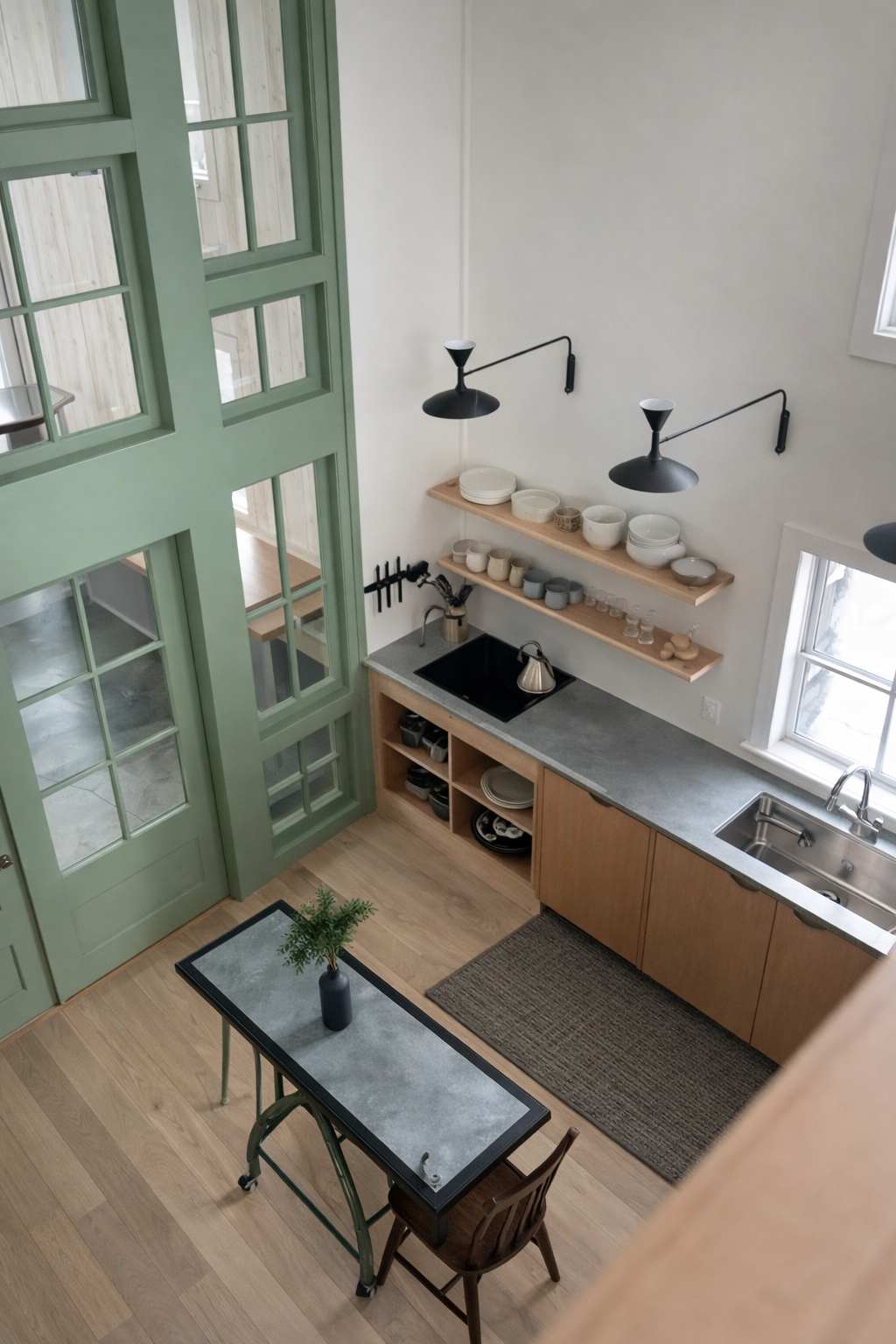 The open kitchen, equipped with modern amenities and a stylish kitchen island, is a functional space where you can unleash your culinary creativity. Adjacent to the kitchen, a large wooden dining table in the dining area becomes a gathering place for shared meals and cherished conversations, surrounded by the alluring charm of the home.