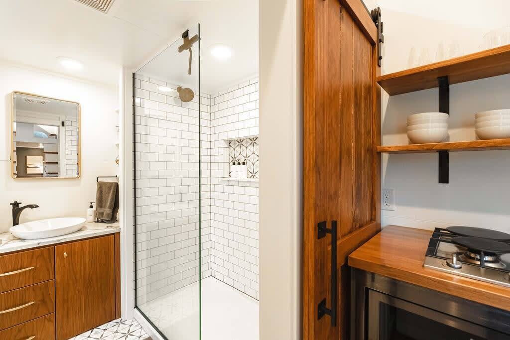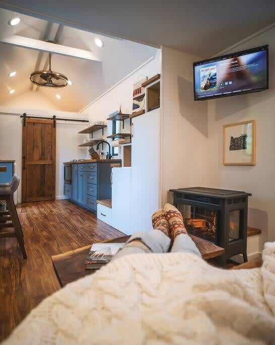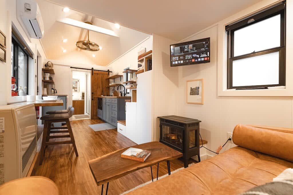 The house is located on the same property as Apple Blossom Cottage, a popular Airbnb. The two homes share a driveway, but you will have access to your own outdoor space and parking space for one car. The peaceful property also is home to wildflowers, chickens, and beautiful territorial views of the surrounding area. While the house does have its own dedicated outdoor area and amenities, this home is among several other tiny homes on the property. So if you are looking for a secluded getaway without anyone around, another one of our properties may be a better fit for you.