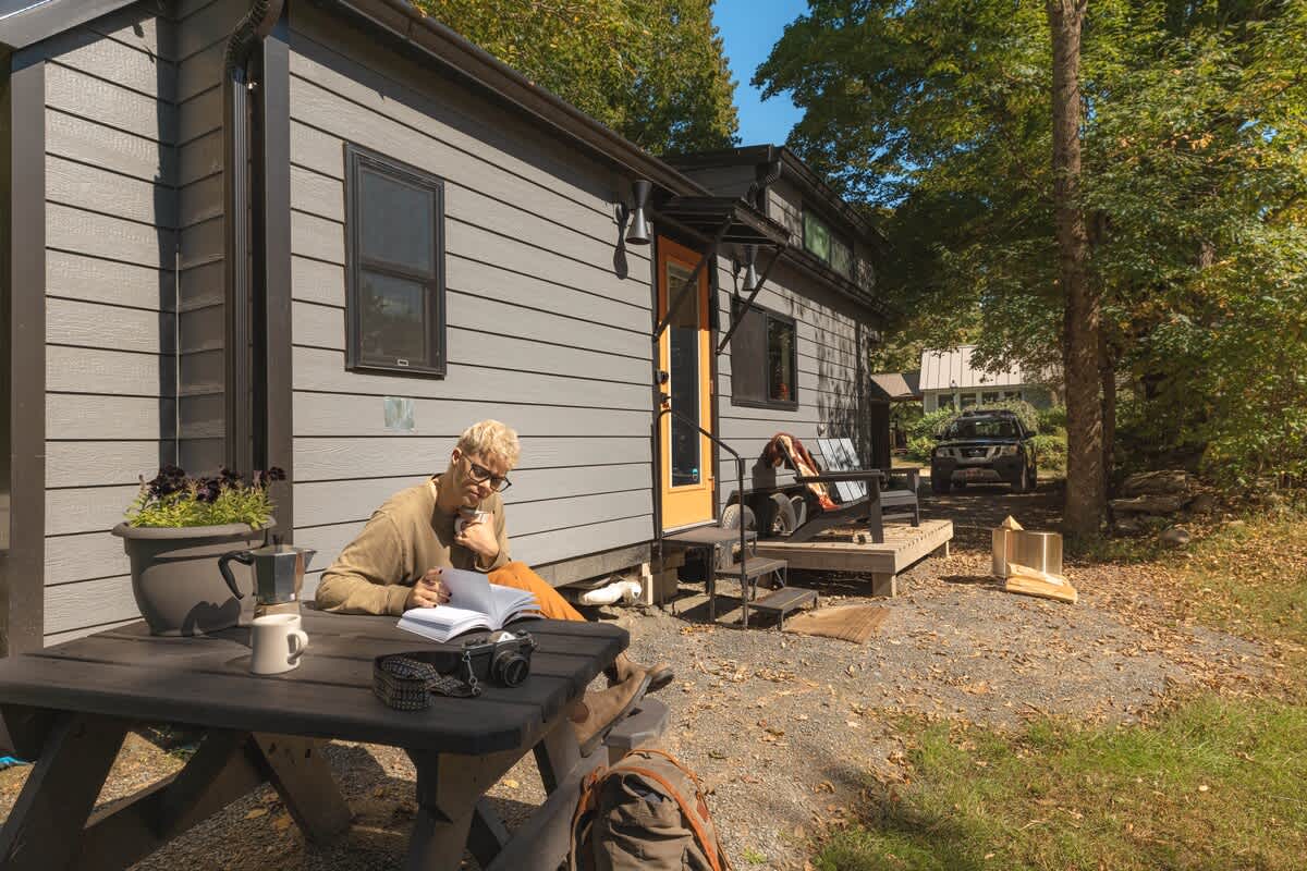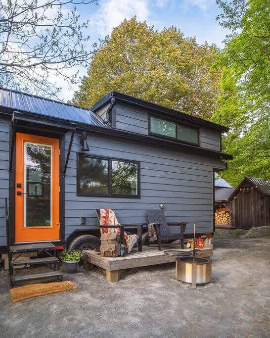 Welcome to the Foxglove Tiny House, a modern tiny house in Jamaica, VT. Dogs welcome with a $100 pet fee.