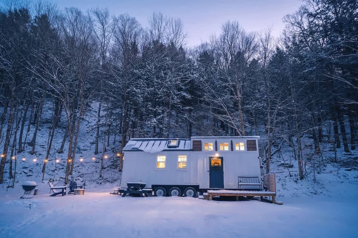 A unique tiny house vacation rental offering contemporary, Vermont farmhouse luxury in the Green Mountains. As featured on A&E's Living Smaller, Episode 12!