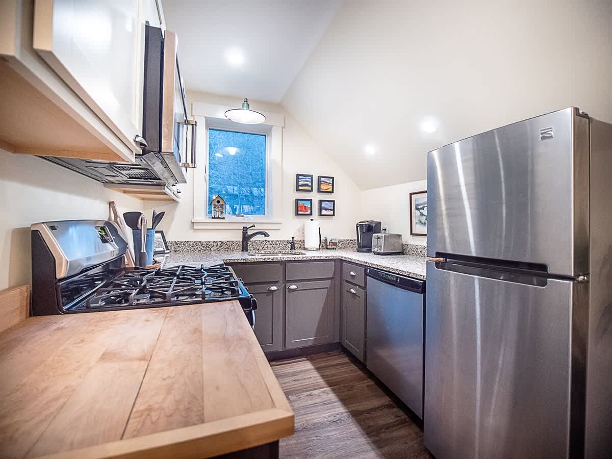 This is the cutest loft with a serious kitchen/kitchenware. Walking