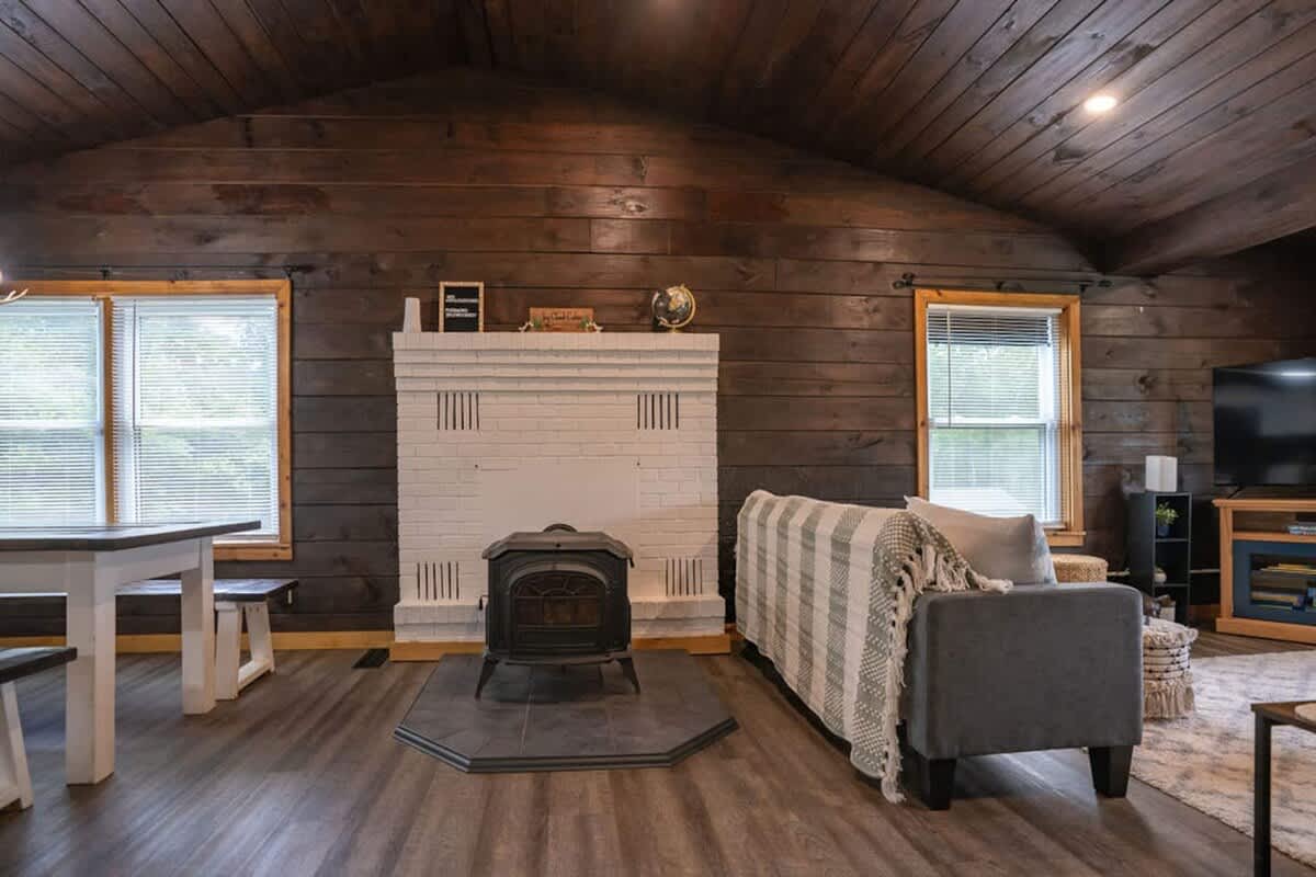 Welcome to Jay Cloud Cabin: your family and pet-friendly getaway located in the northern Green Mountains! This unique log cabin has been thoughtfully curated with modern-day amenities for your utmost enjoyment: a peaceful setting with a semi-private pond, three bedrooms, one bathroom, wood stove, washer and dryer available for guest use, modern decor and amenities…all while being less than 10 minutes away from Jay Peak Resort!