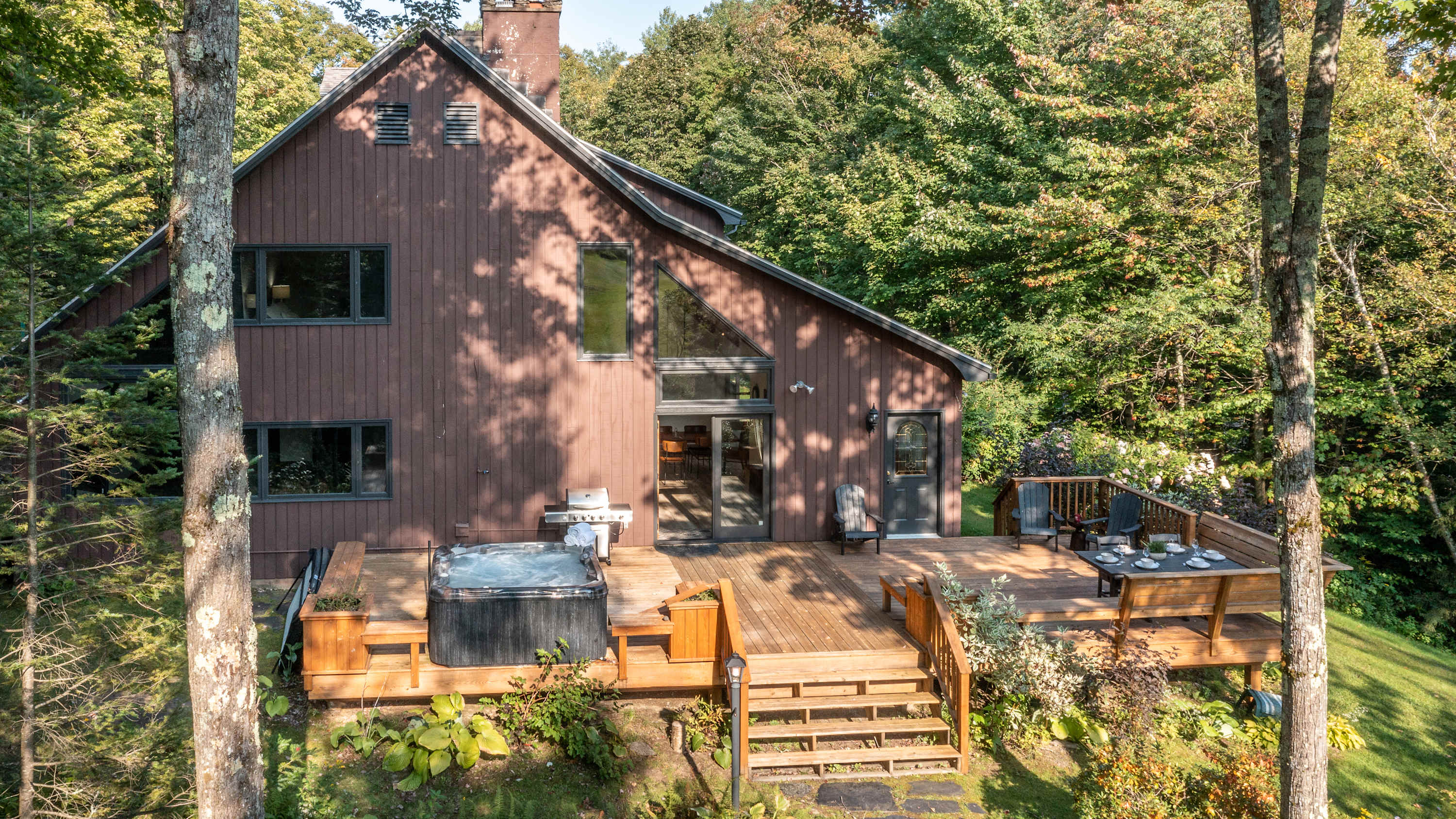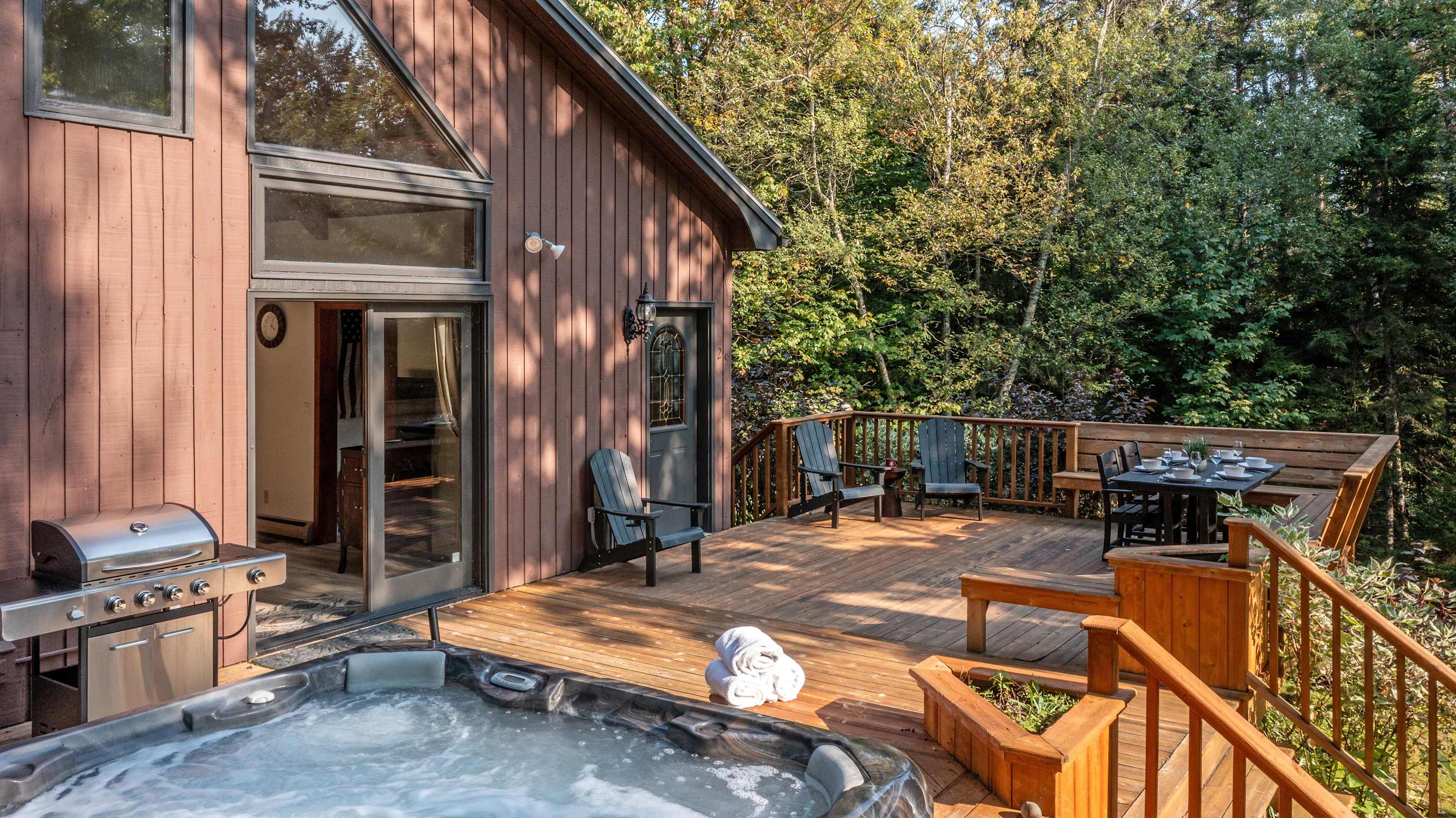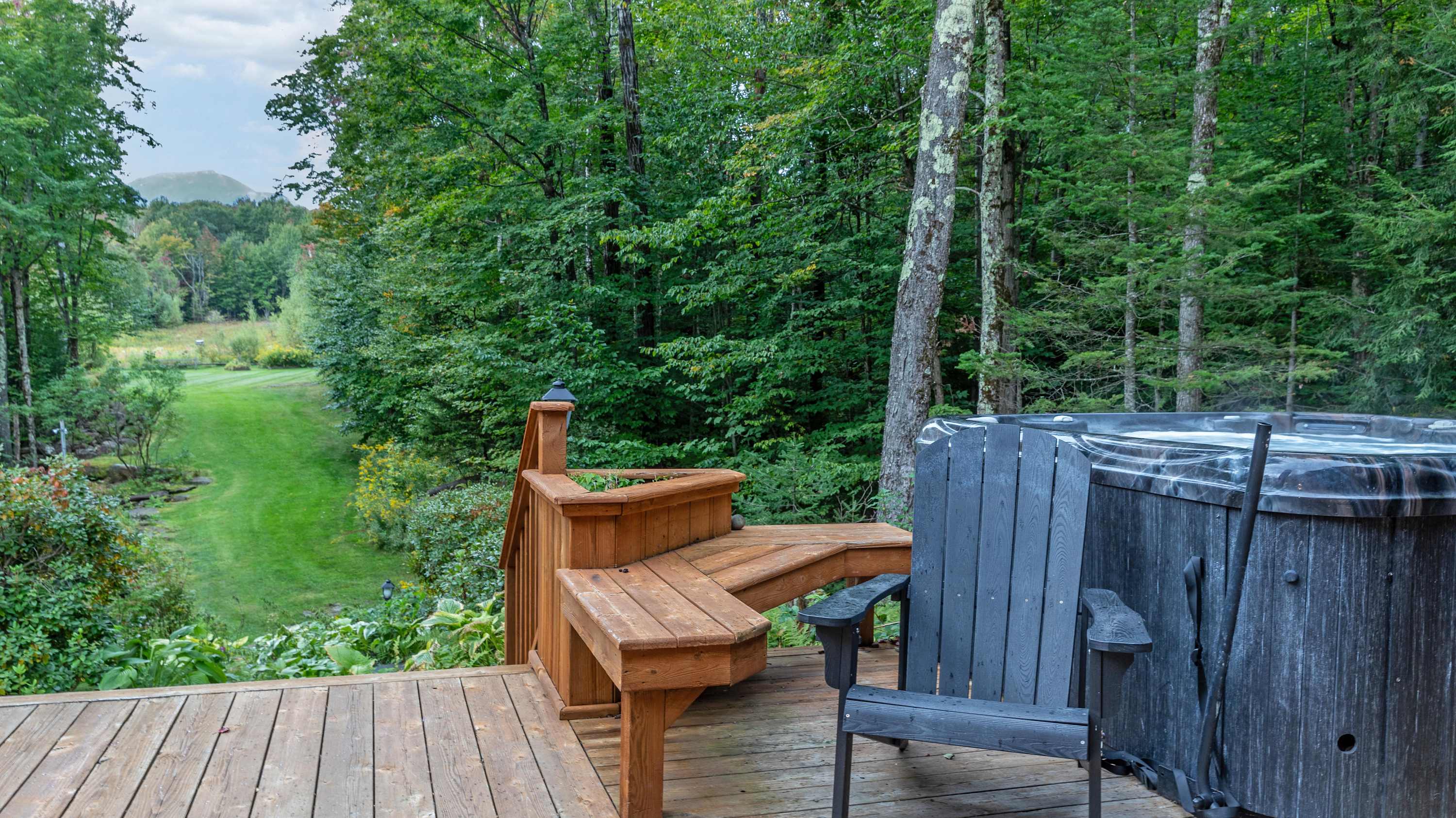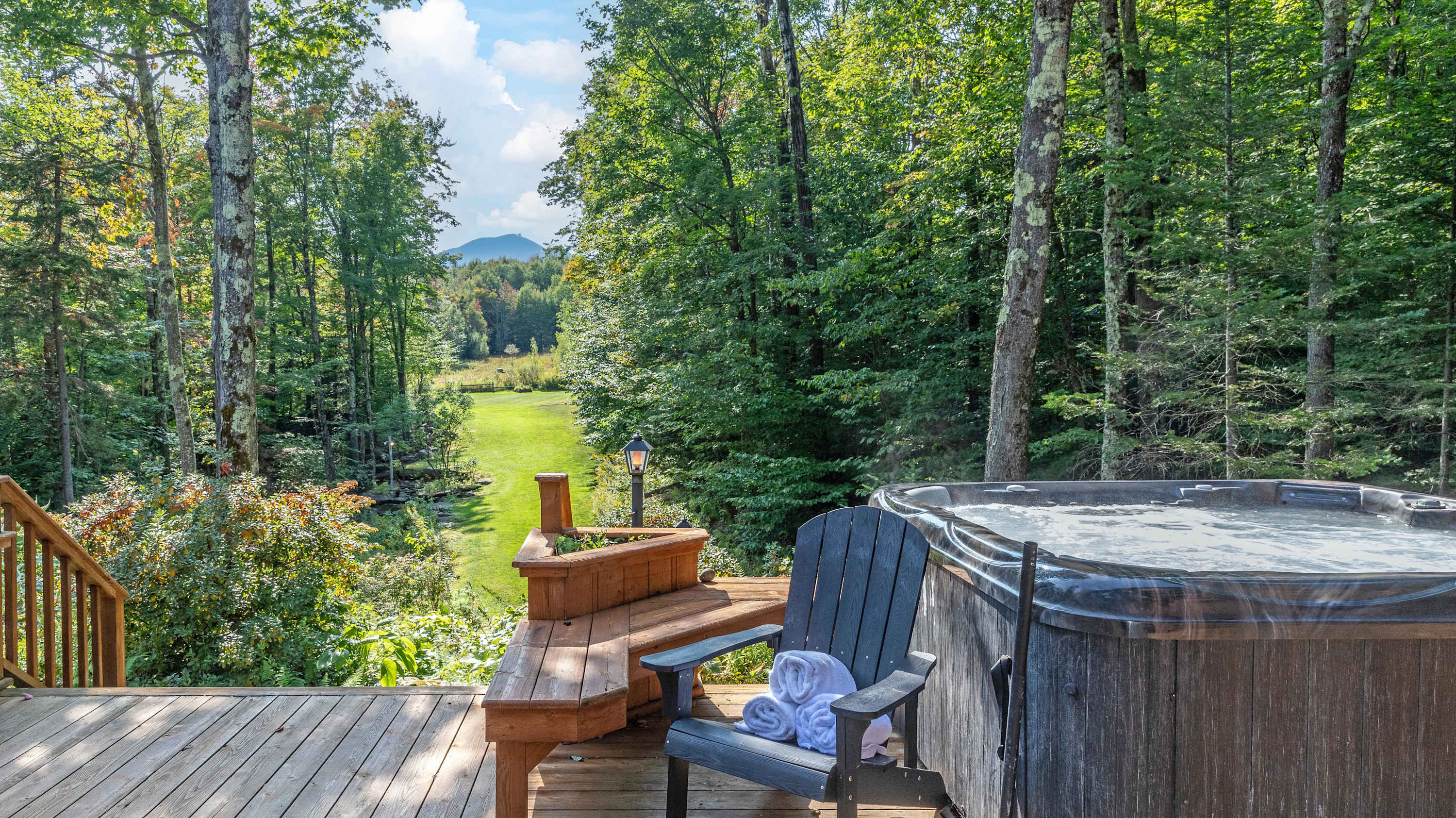 Step outside to enjoy stunning sunsets over Jay Peak from the expansive deck or relax in the private hot tub. In the warmer months, gather around the dining table for a meal with a view or enjoy some laughs around the firepit by the babbling stream. Right off the property is the Jay Community Trail system, offering trails for hiking, mountain biking, and, in winter, snowshoeing and cross-country skiing.