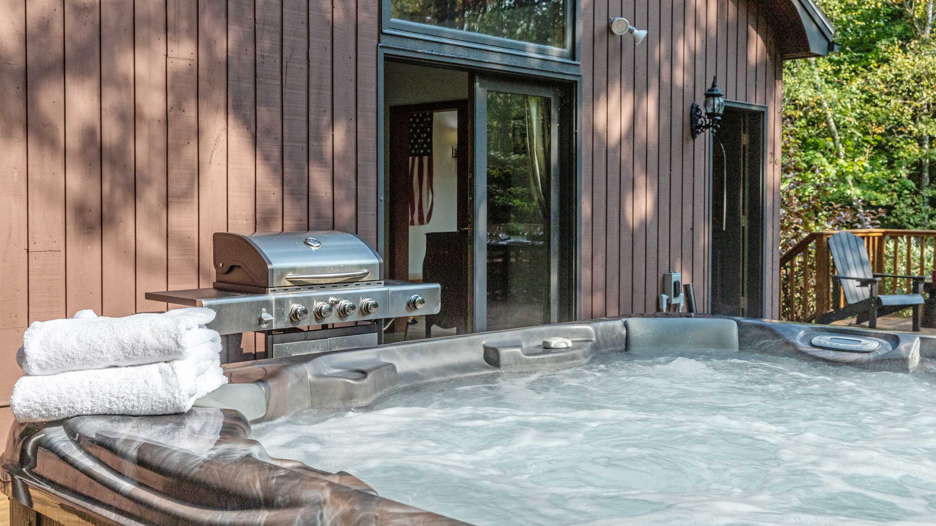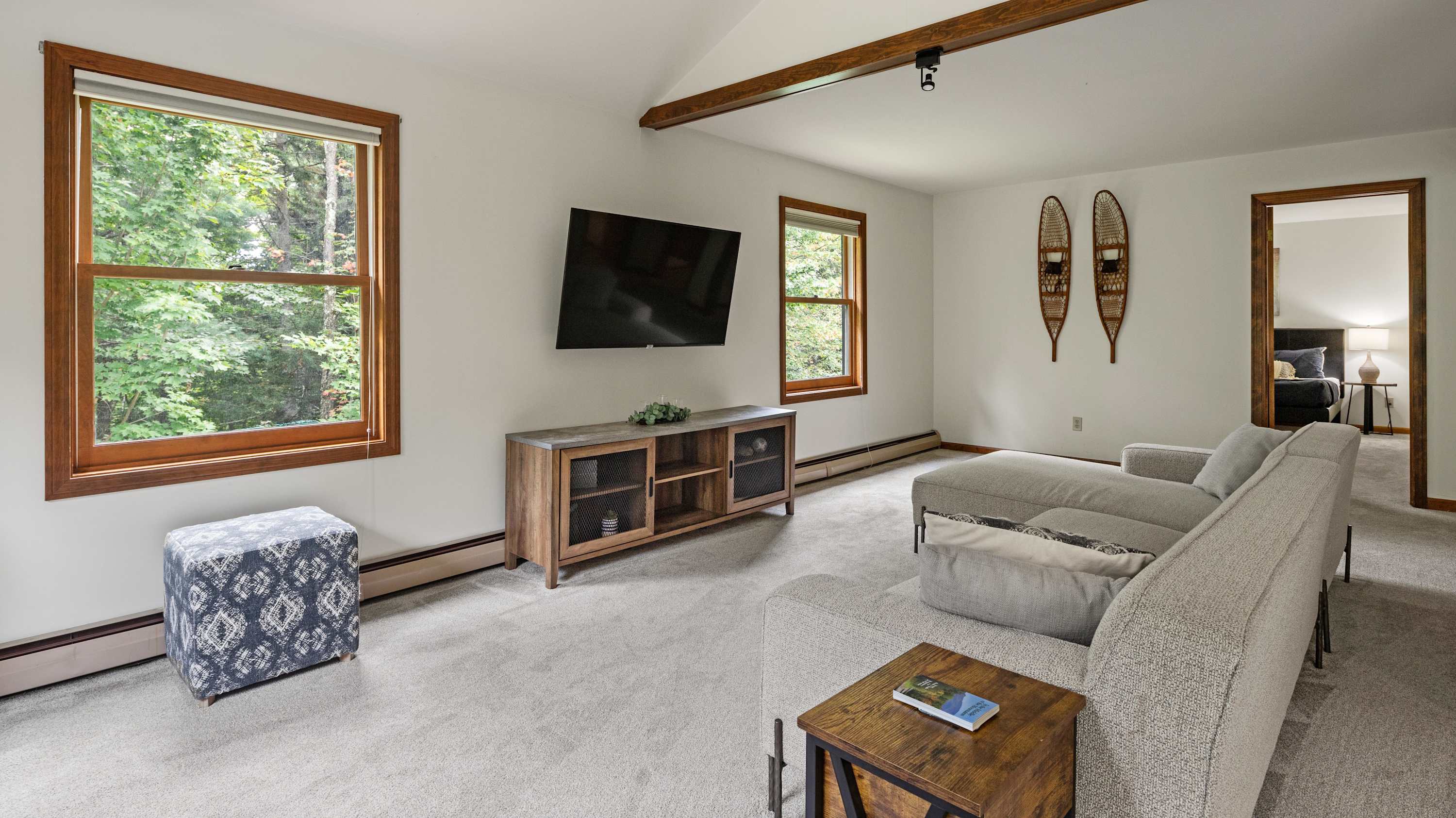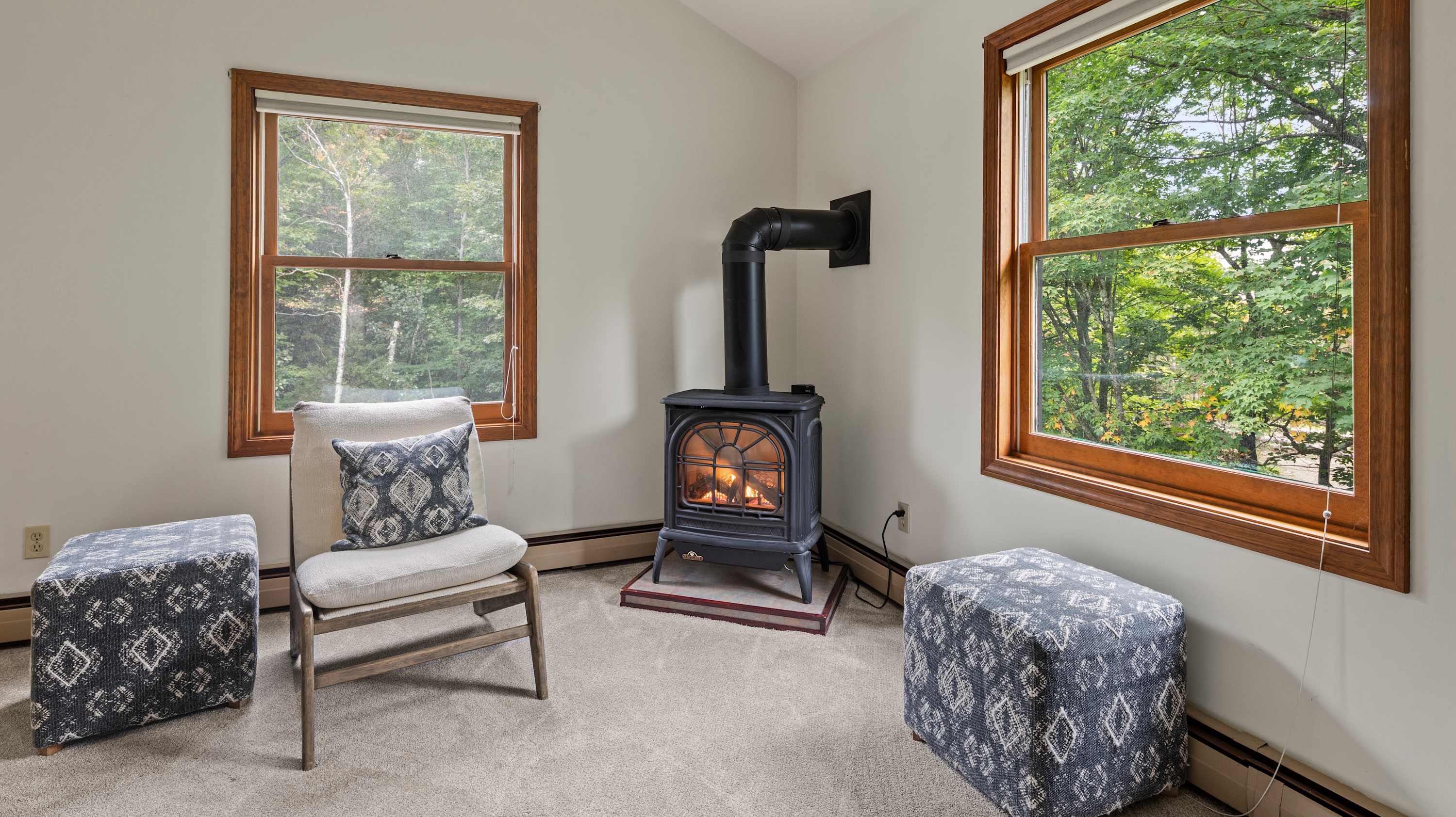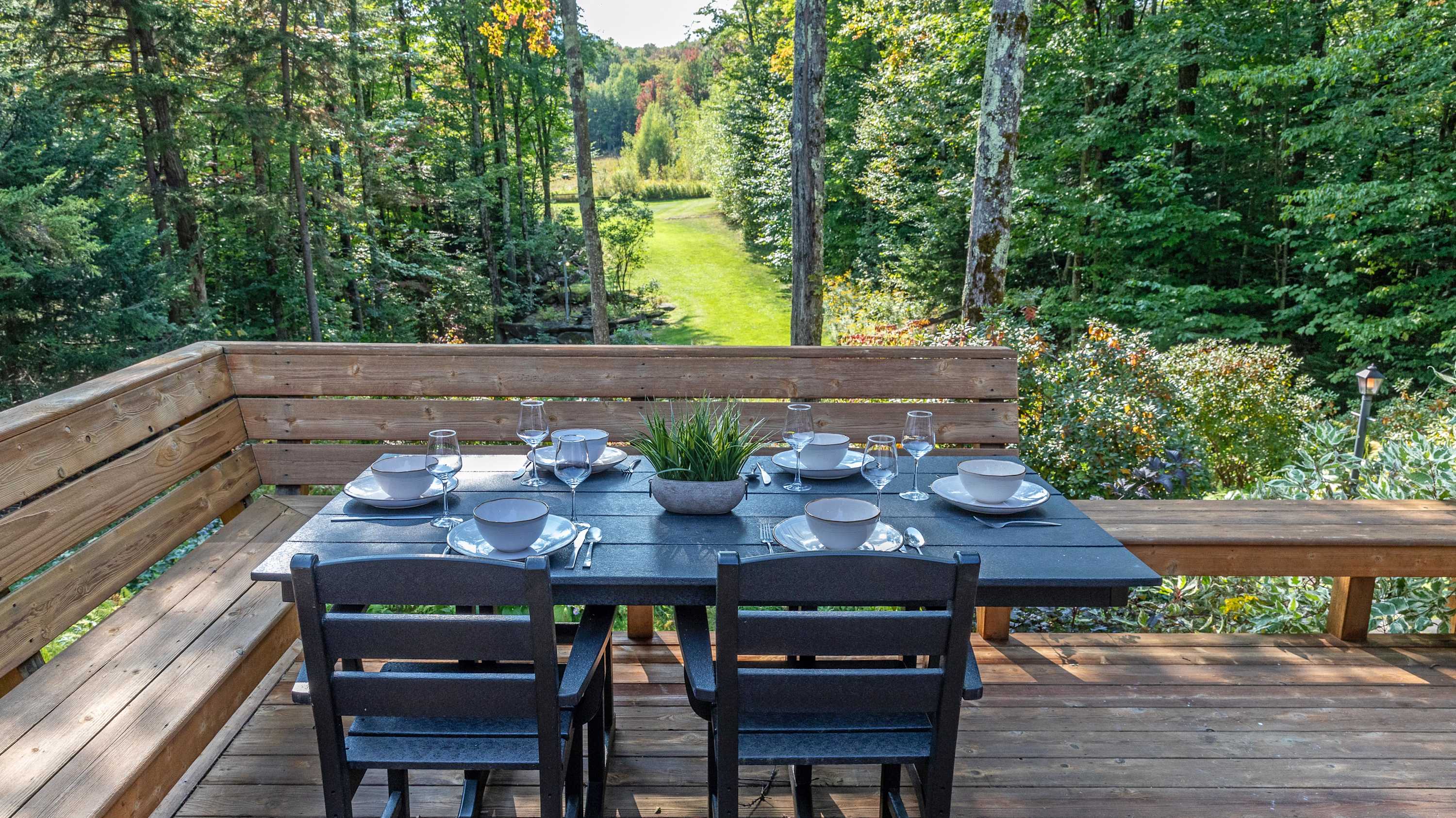 Step outside to enjoy stunning sunsets over Jay Peak from the expansive deck or relax in the private hot tub. In the warmer months, gather around the dining table for a meal with a view or enjoy some laughs around the firepit by the babbling stream. Right off the property is the Jay Community Trail system, offering trails for hiking, mountain biking, and, in winter, snowshoeing and cross-country skiing.
