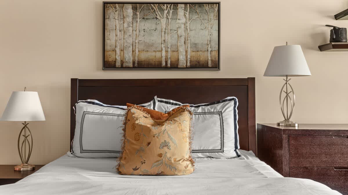•Two bedrooms, one king and one queen. There are two Pillow-top Euro Loungers that fold out to comfortable beds similar to Full XL beds, 80.3" L x 50" D, in the family room.