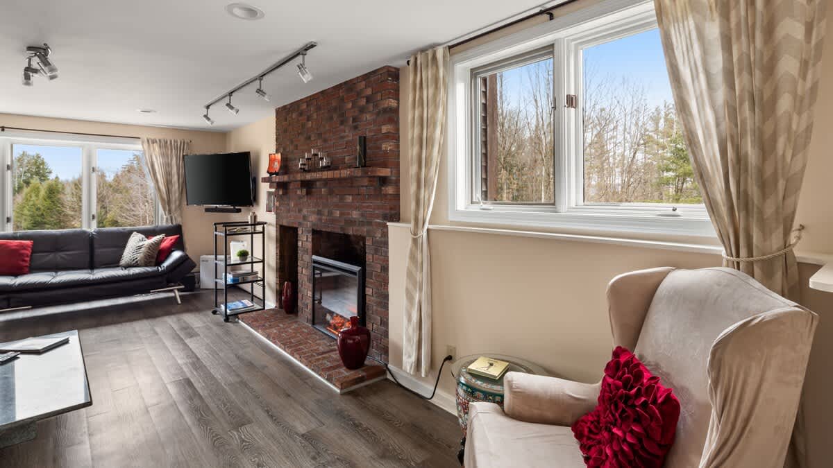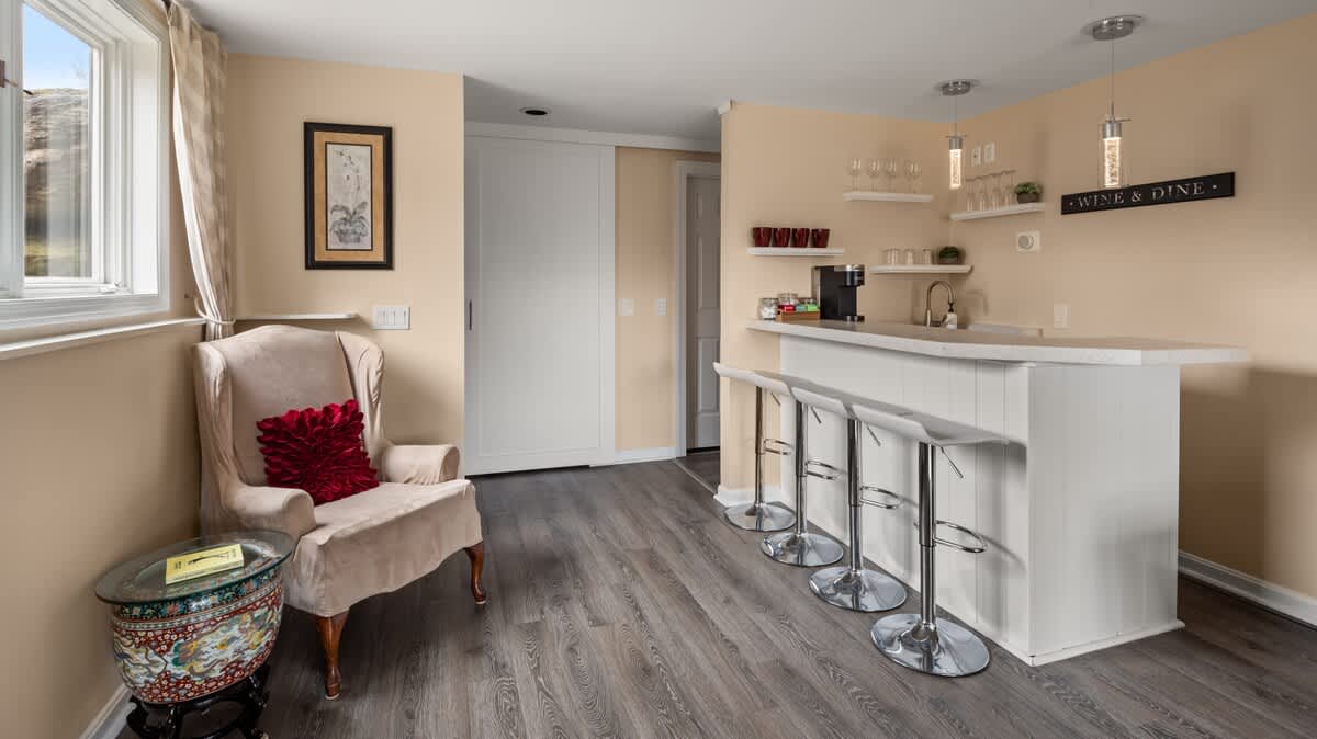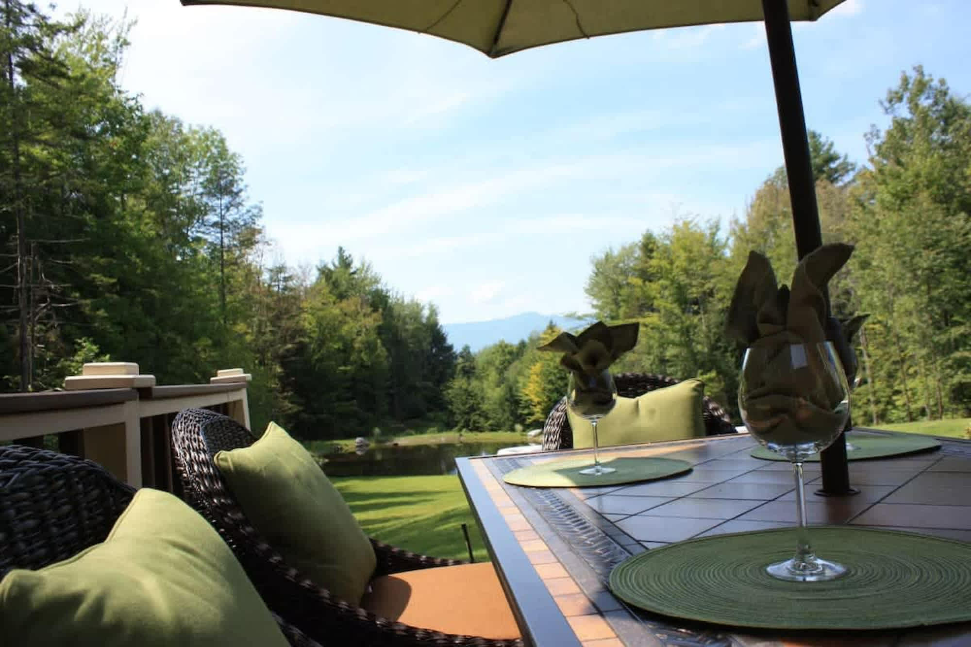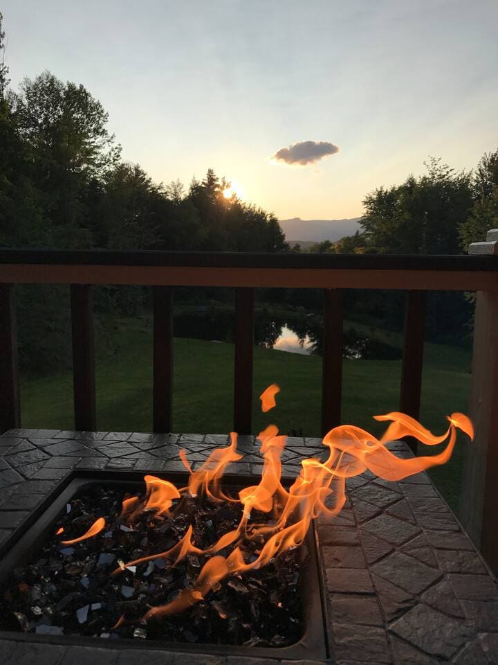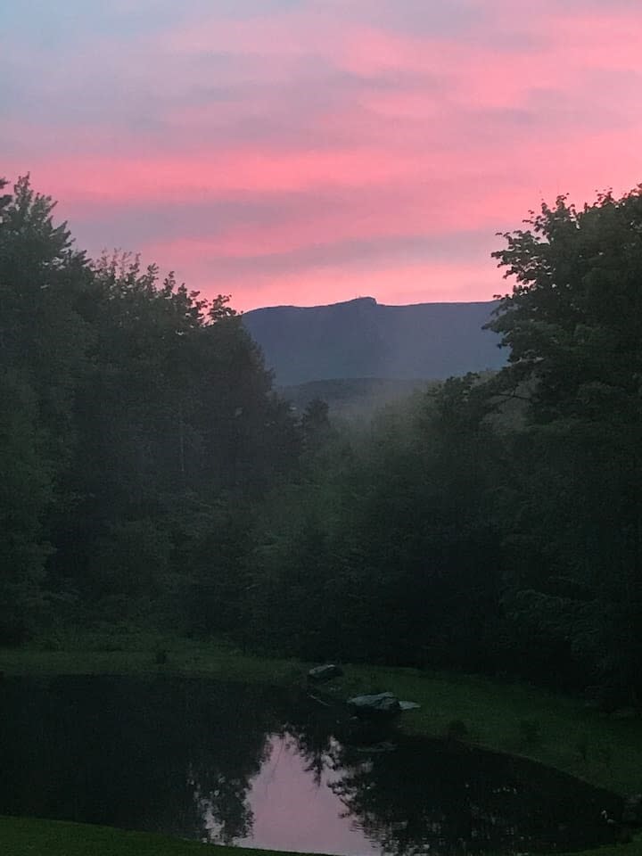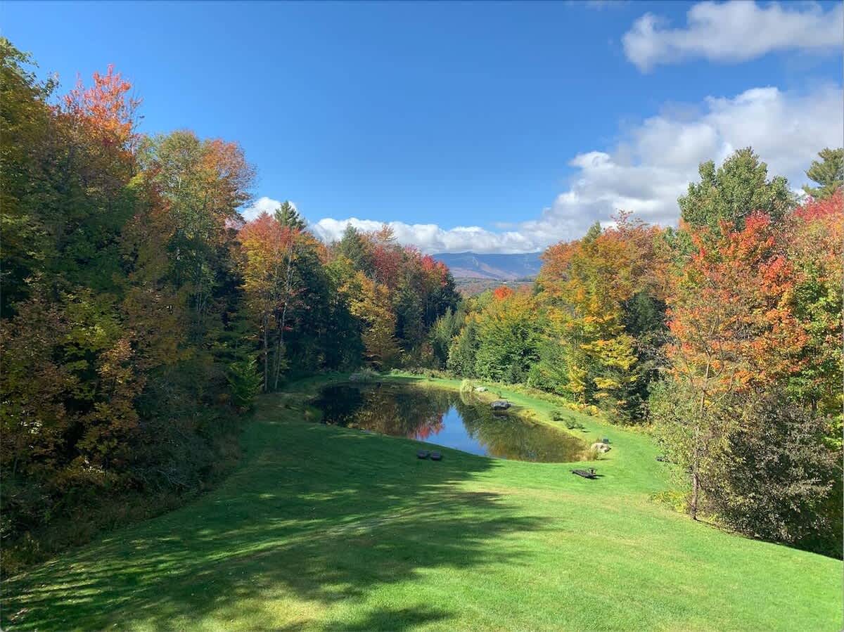 The rooms look out towards Stowe Mountain (Mount Mansfield), and you have direct access to the backyard, hot tub, and pond. There is a full bath, family room, kitchenette, bar, Smart TV, and WiFi. One room has a King bed and the other has a Queen bed. There is a desk and plenty of drawer and closet space. If you would like to add more people, the family room has two Pillow-top Euro Loungers that fold out to comfortable beds similar to Full XL beds, 80.3" L x 50" D.