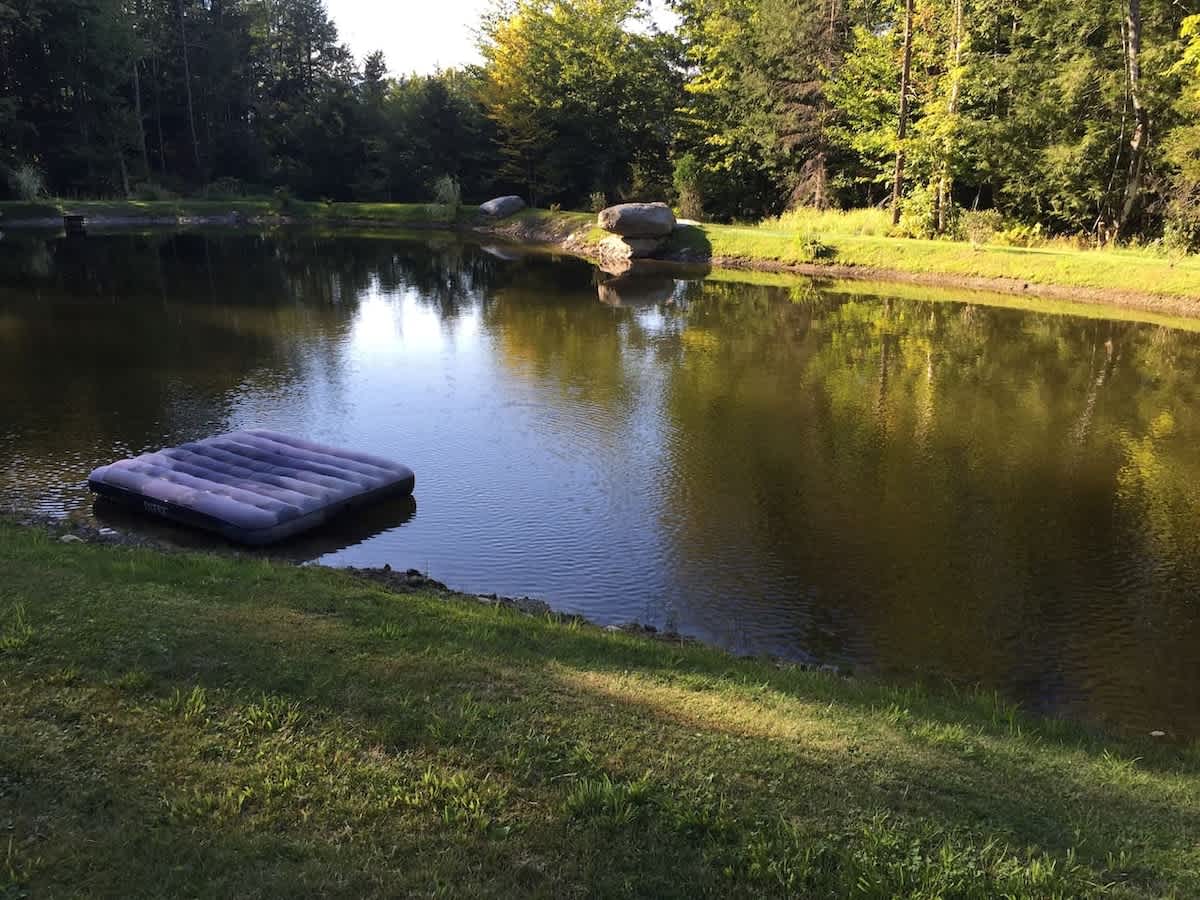 The pond is available subject to weather and safety conditions. You can swim in the pond. There are no lifeguards on duty. Use of the hot tub, pond, and the surrounding area is at your own risk.