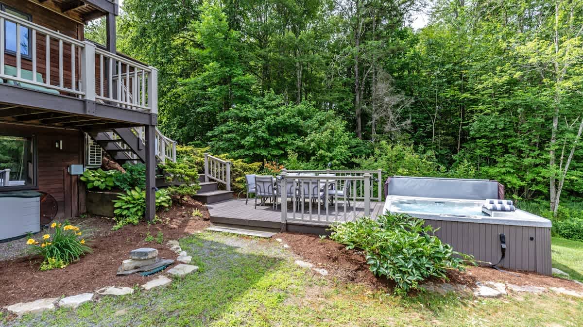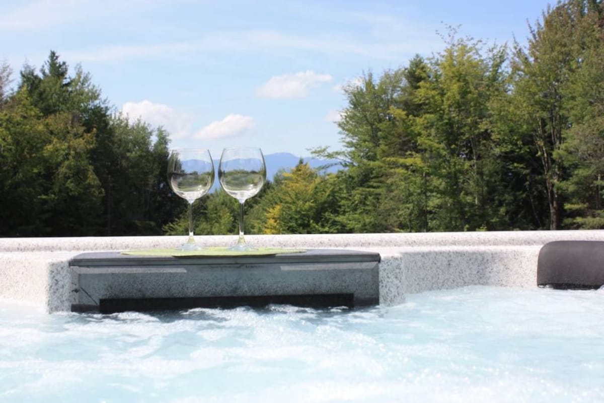 *Private hot tub* overlooking the pond with mountain view