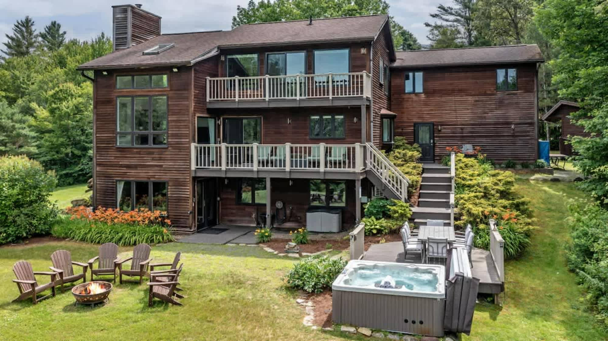 NEW PROPERTY: Luxury mountain retreat at the end of a private road in Stowe, minutes from the village. Enjoy stunning views, a private pond, two fire pits, hot tub, and spacious layout perfect for two two couples or one family. Features include 2 king bedrooms, 2 full ensuite baths, open kitchen, wood-burning fireplace, soaking tub, and outdoor dining. Check our reviews on our other listings!