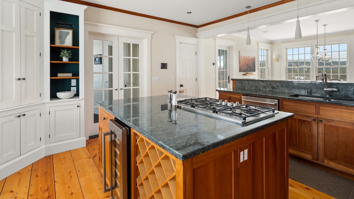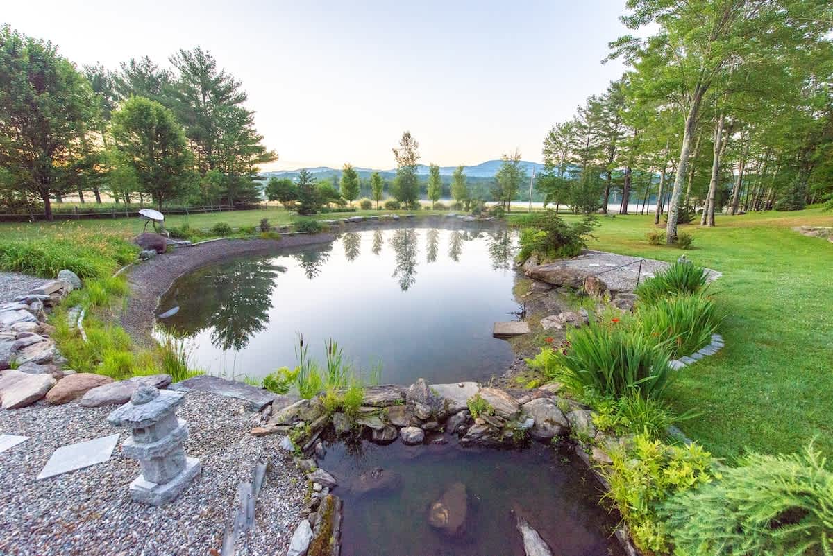 Outside, all 10.5 acres are yours to explore- including granite paths, stone walls, sculptures, waterfalls, two ponds and tea house. Located just a short drive to Stowe Mountain Lodge and 0.8 miles from the shops and restaurants on Mountain Road, the Modern Farmhouse offers everything you could want for a peaceful family vacation or adventure-filled mountain getaway!