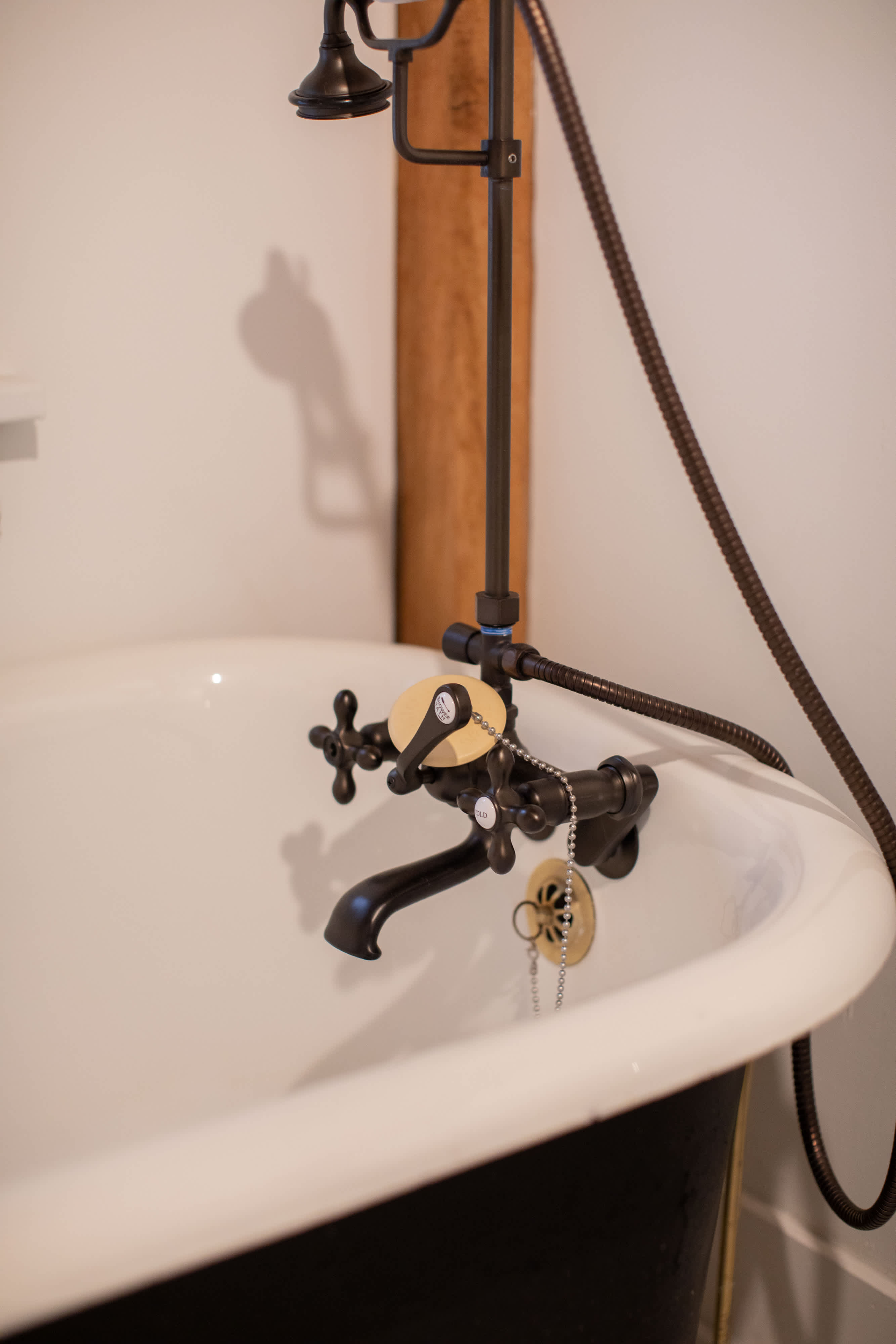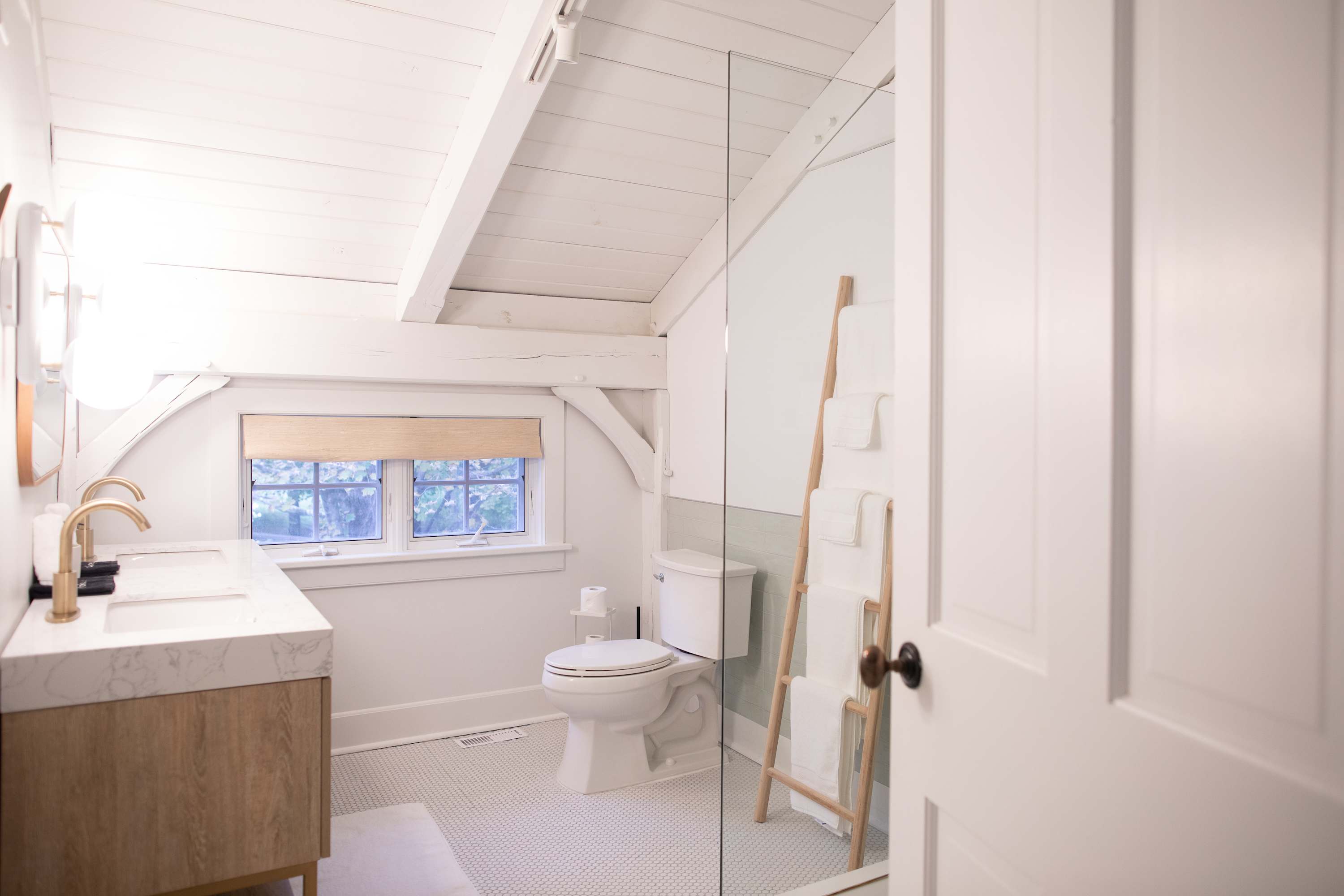 Upstairs, there are three bedrooms including the master bedroom which offers a king size bed, TV, ensuite bathroom with a walk-in shower and views out to the gazebo and pond. One guest bedroom has two twin beds that can be converted into a king while the other offers a double bed. A shared bathroom with a clawfoot tub & shower combo is conveniently located on the landing between the 1st and 2nd floors.