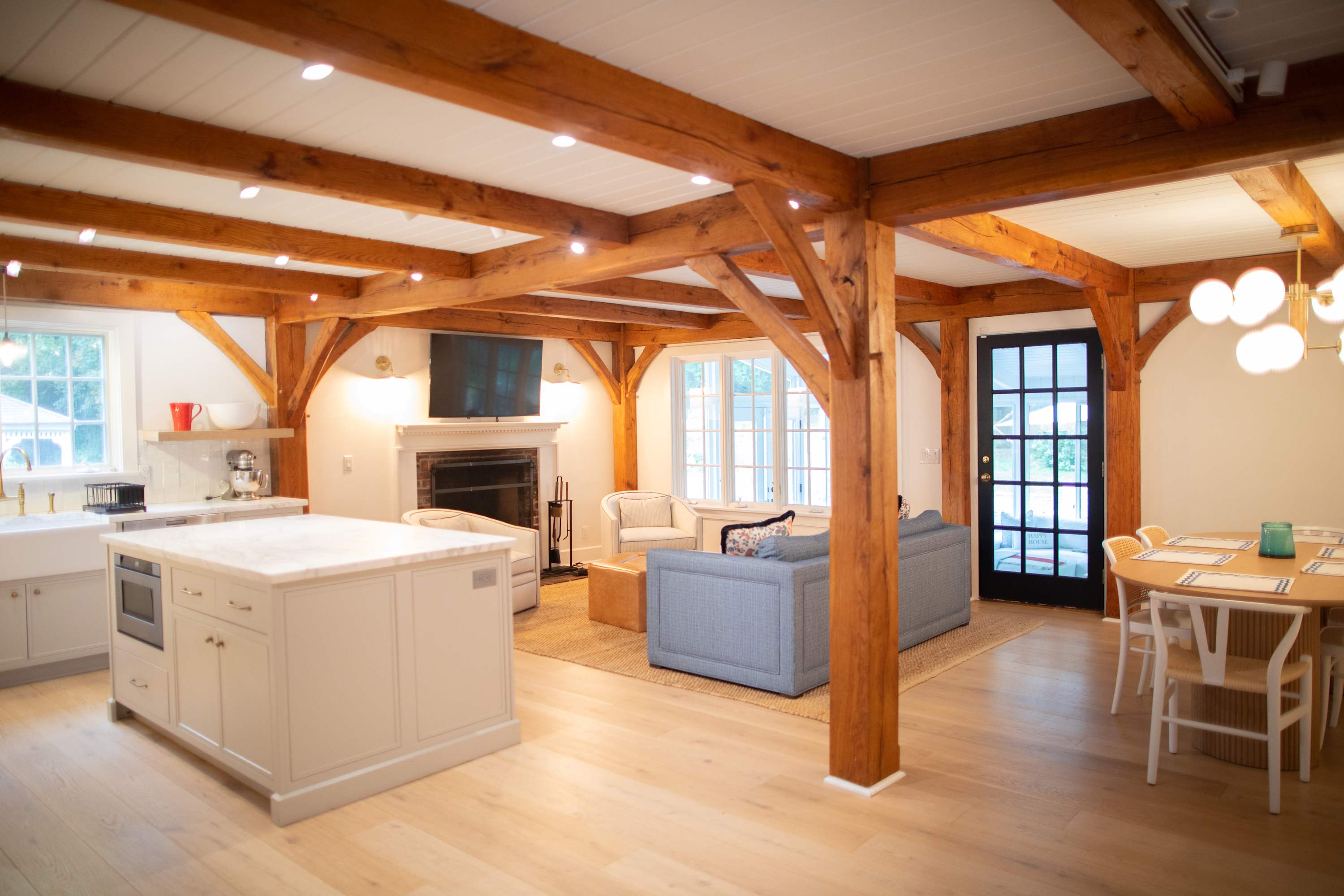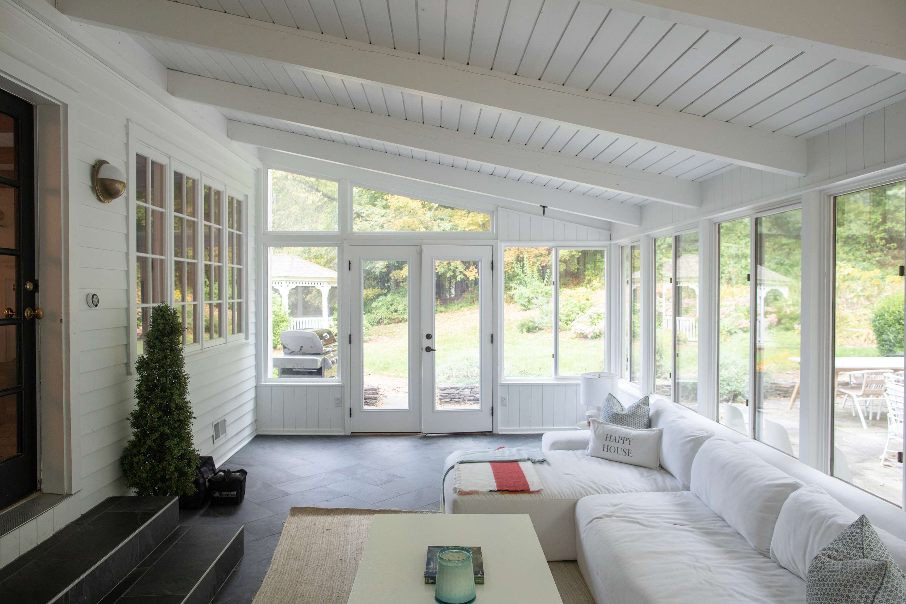 Enter through the front door into a cozy sitting room with a gas fireplace which leads into an open concept kitchen, dining and living area with a TV and wood burning fireplace. Head to the large sunroom (our favorite space in the house) or grab a book or a cup of coffee into the lounge and start your day appreciating the serene garden views.