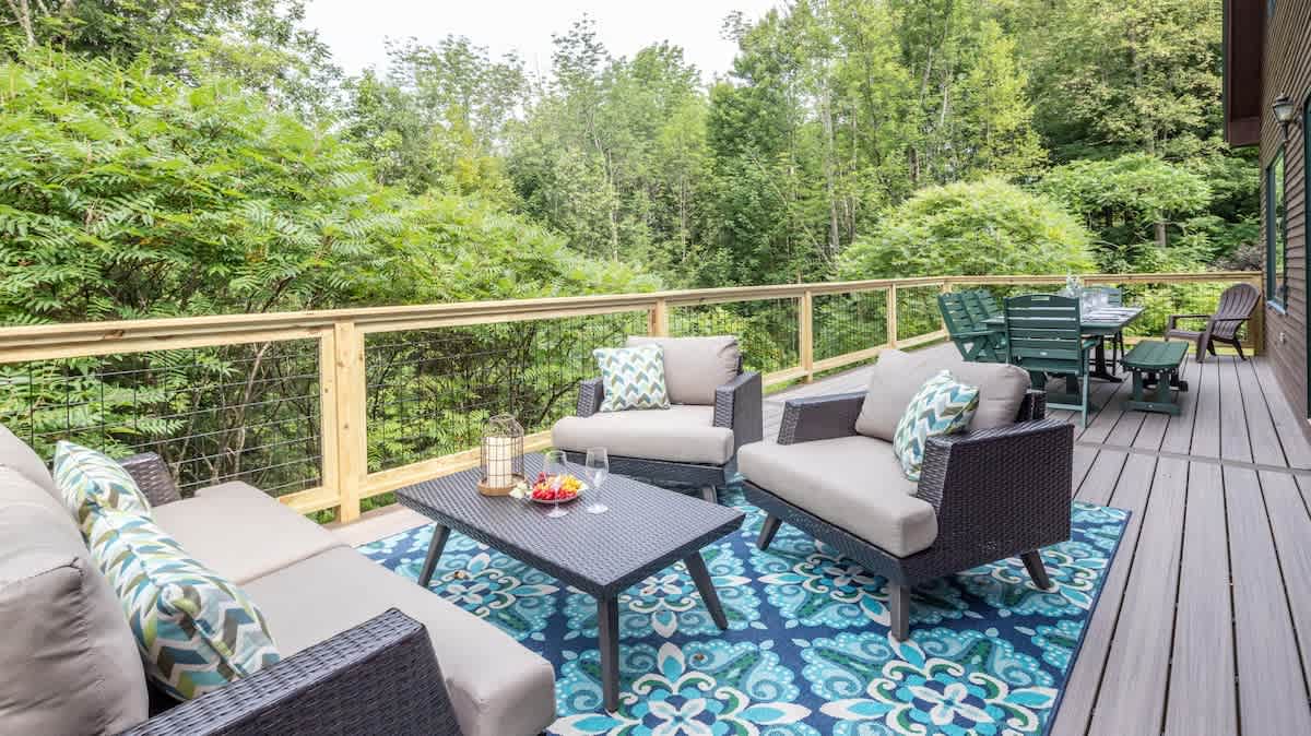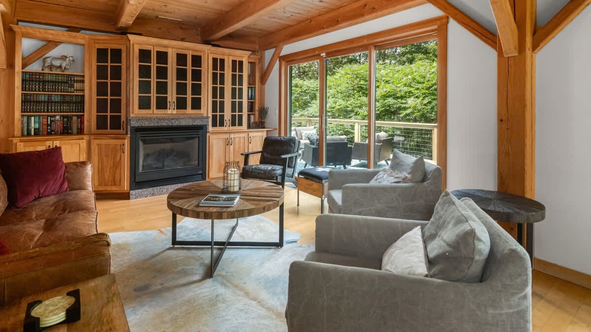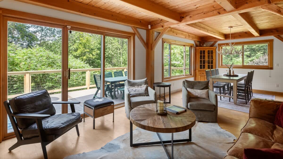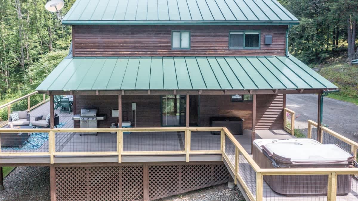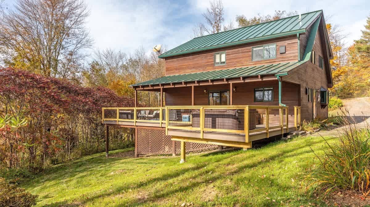 The perfect getaway with a home theater, gourmet chefs kitchen, hot tub and large deck. Ideally set up for two families or three couples for a four season vacation – hike, bike, ski or just relax, pet friendly.
