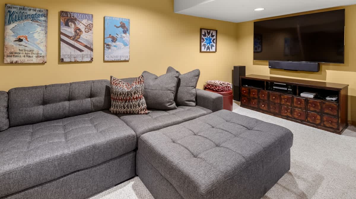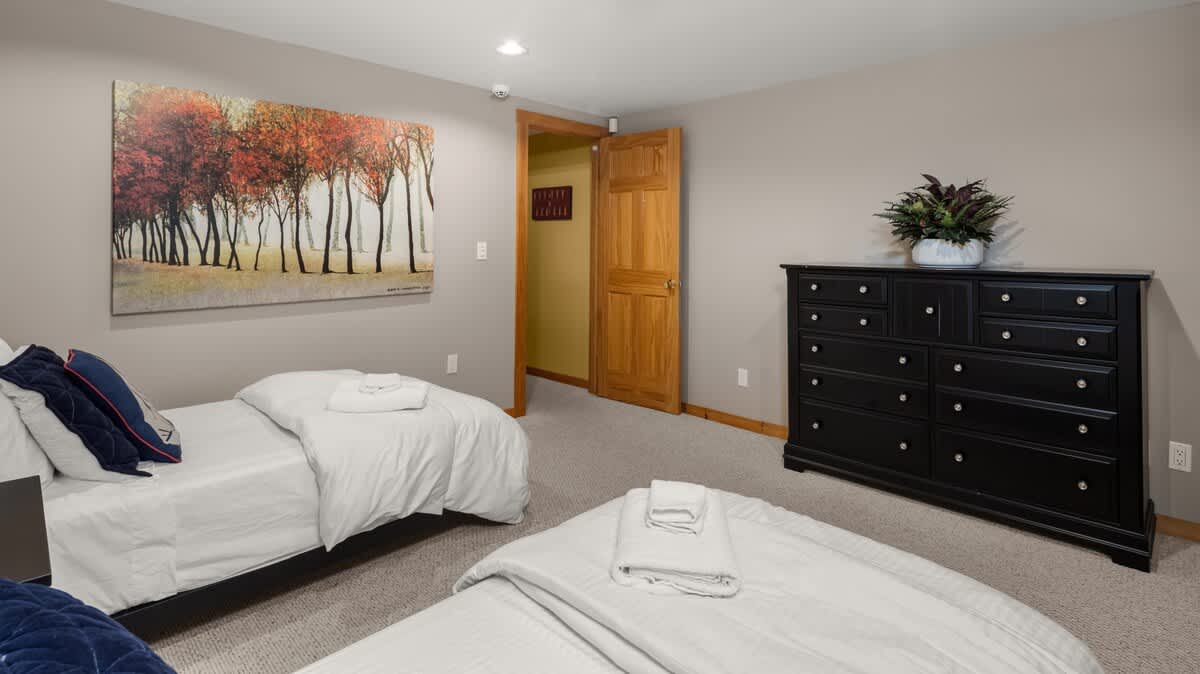 Downstairs, both bedrooms have two twin beds (can convert to a king) next to home theater.