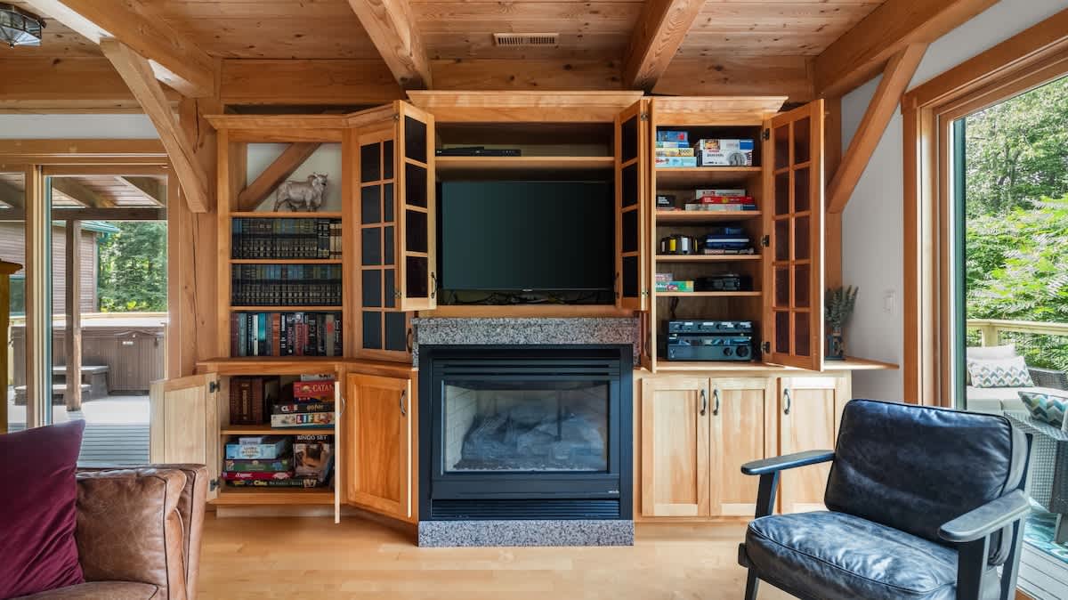 Full house access and equipped with use of outdoor grill, gas fireplace, air conditioning, refrigerator, cooking utensils, crock pot, microwave, dishwasher, Keurig coffee maker, toaster oven, dining table seats six with four stools at the counter next to it.