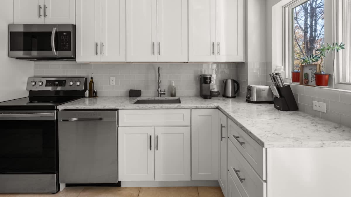 Not only do we stock this property for each guest with a fresh bag of organic coffee, creamers, sugars and an assortment of teas, it's also fully stocked with hotel-like toiletries such as; shampoo, conditioner, body wash, hand soap, dish soap, dishwasher pods, laundry pods, salt, pepper, olive oil, Q-tips and more!