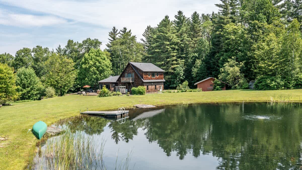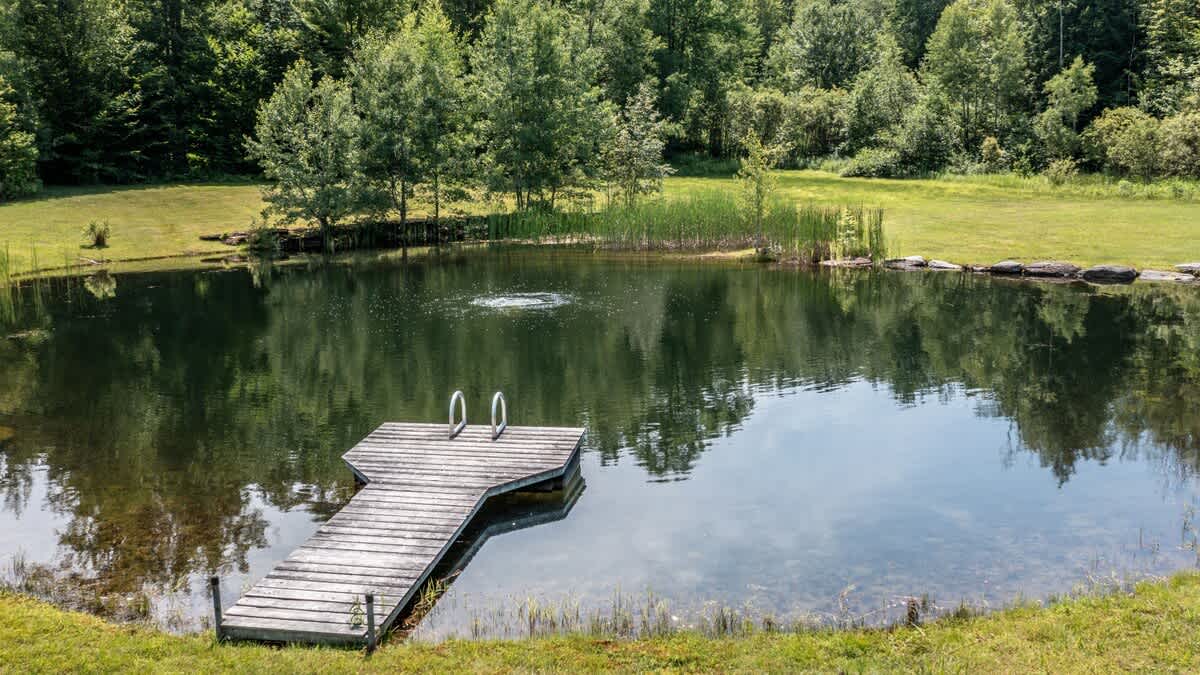 Wonderfully secluded mountain home only 1 mile from the center of Stowe Village in a beautiful, 5 acre private setting! This fabulous estate has everything one could possibly need; 4 bedroom ( sleeps 8 comfortably), 5 bathrooms, swim pond, outdoor shower, game room, spacious kitchen which has all of the appliances needed for gourmet cooking. Each room is an adventure in itself.