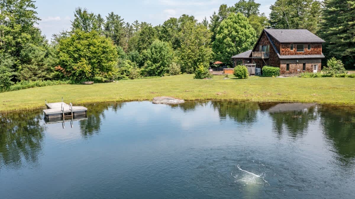 Minutes away from the village, golf and much more. Enjoy the hot tub while looking at breathtaking views of Mt. Mansfield. Watch TV or surf the Internet while you prepare meals in our fully stocked gourmet kitchen, complete with gas fire place and seating for ten. With 4 full baths there’s room for everyone. Four bedrooms on three floors give you places to get away and unwind when needed. Swim pond and outdoor shower for the summer months. The only thing missing is you!