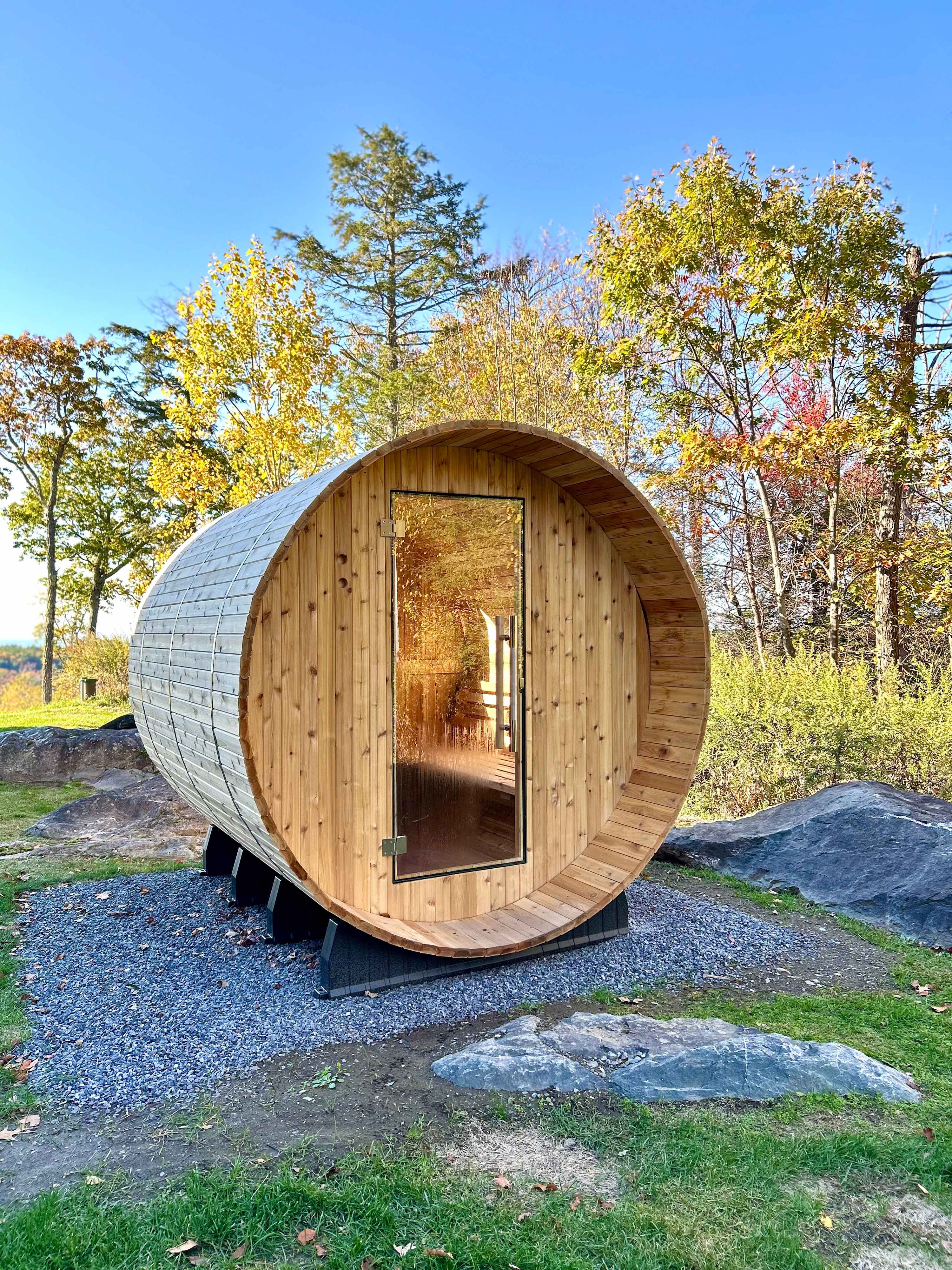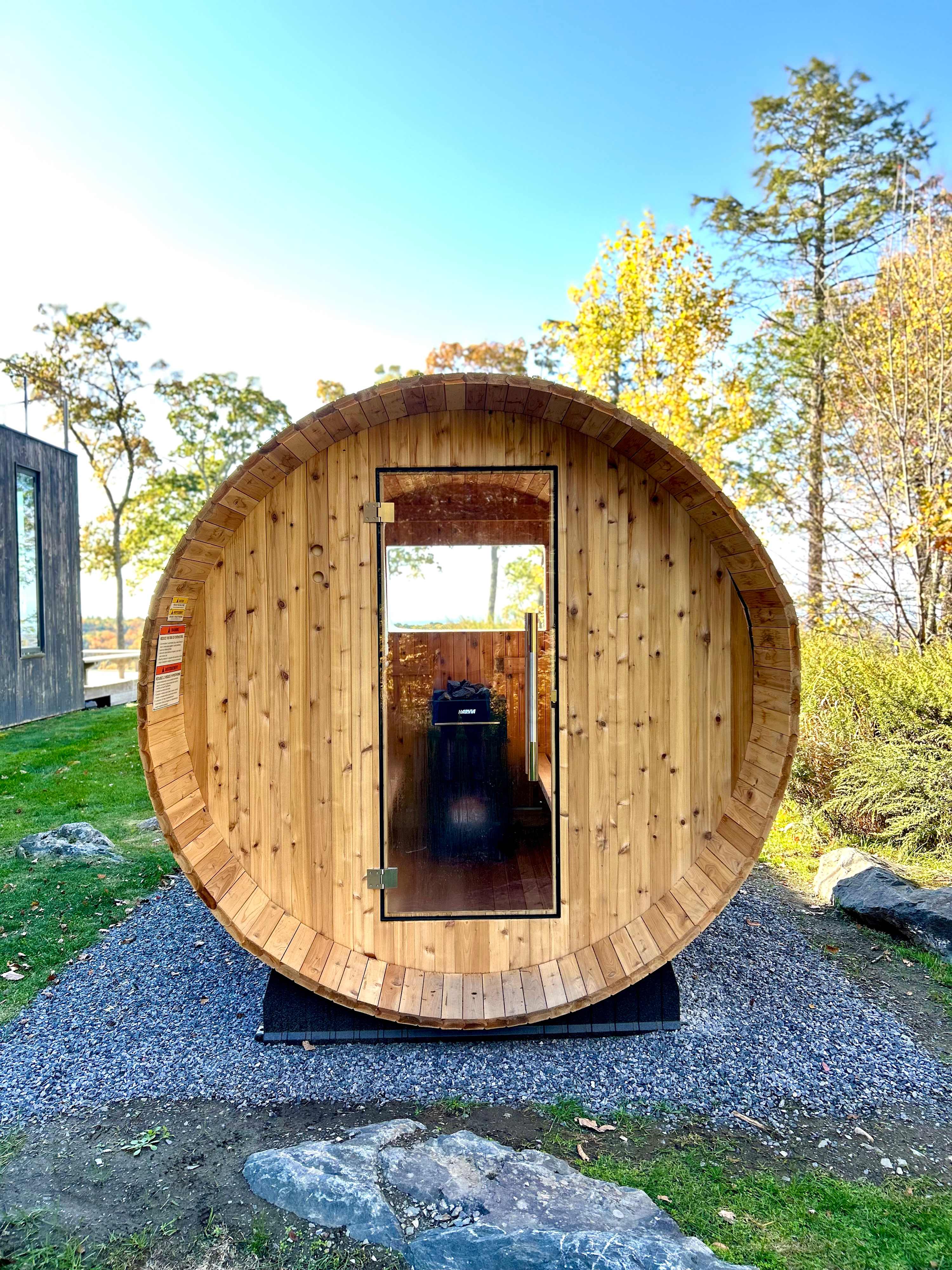 The outdoor spaces of this estate offer an array of amenities to savor, relax, and soak in the breathtaking vistas. From the private patio that open from the ground floor living spaces to the inviting swimming pool complete with sun loungers. Enjoy a scandi-experience in the newly added barrel sauna just steps from the back door, or jump in the serene swimmable pond and enjoy nights by the fire pit! Mature trees surround the property, enhancing the sense of seclusion and tranquility.