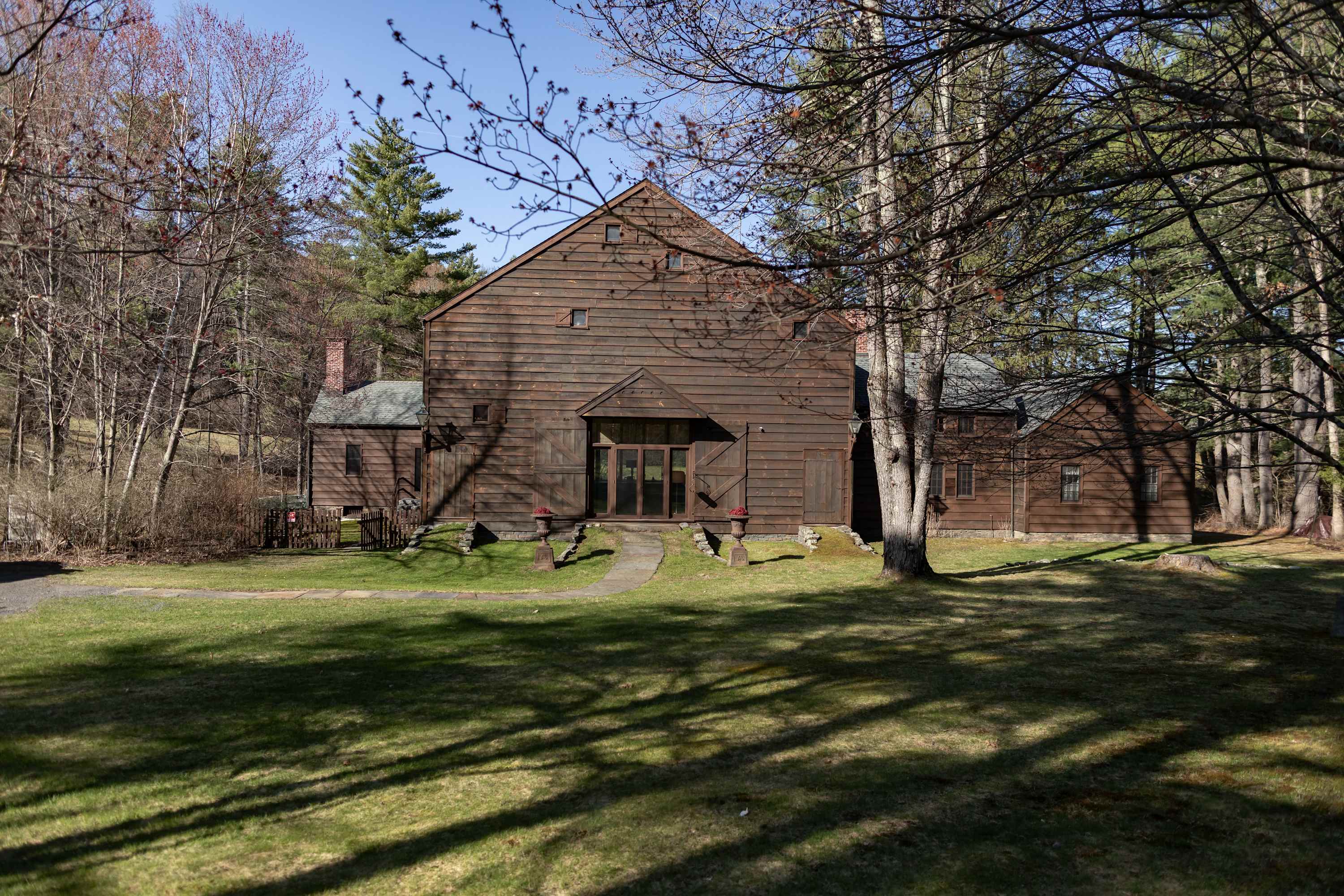 Sanctuary Barn is a unique and spacious post and beam 2 bed, 2 bath home just outside of the Village of Chatham. Featuring two fireplaces, multiple levels, and stunning design, this is a one of a kind Hudson Valley home, appointed in thoughtful luxury. The grounds feature extensive stonework on the outdoor patios, a pond, and sculptures that you can discover as you wander the property.