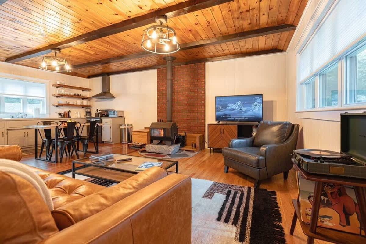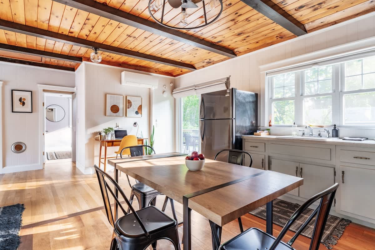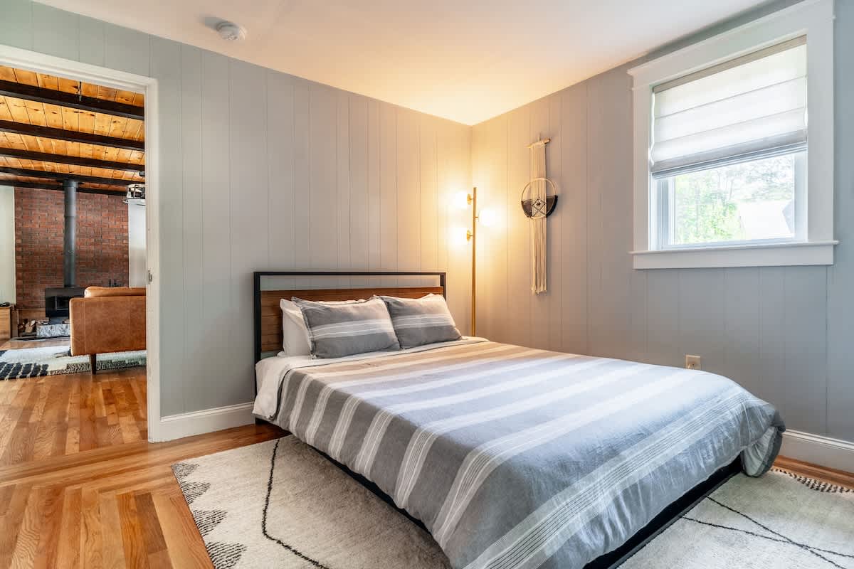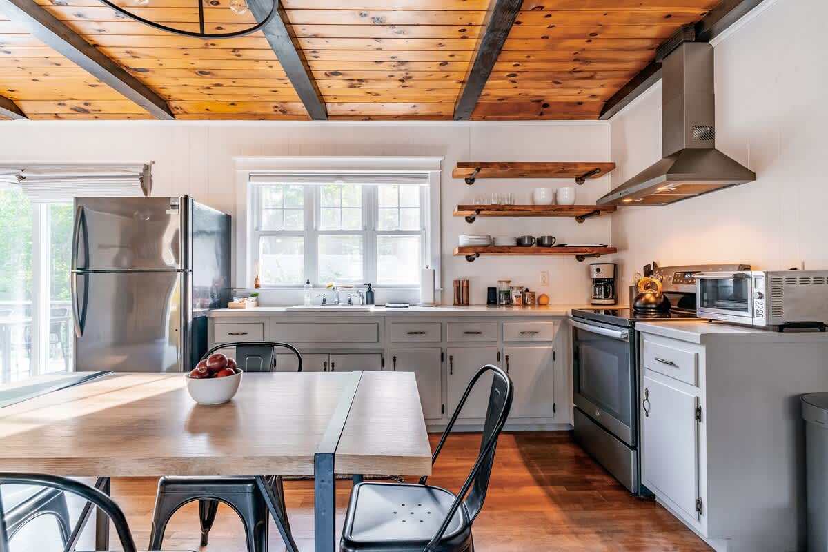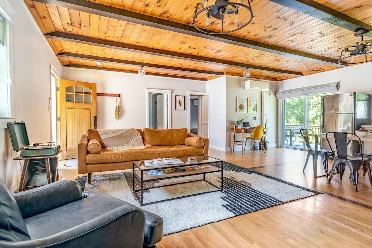 Curated two-bedroom cabin offering mid-century modern style just 15 minutes outside of Portsmouth, NH and 10 minutes from the best of Maine's "Vacationland." A perfect location to enjoy shopping, dining, beaches, and hiking. Seasonal views of the Piscataqua River. Dogs welcome with a $100 pet fee.