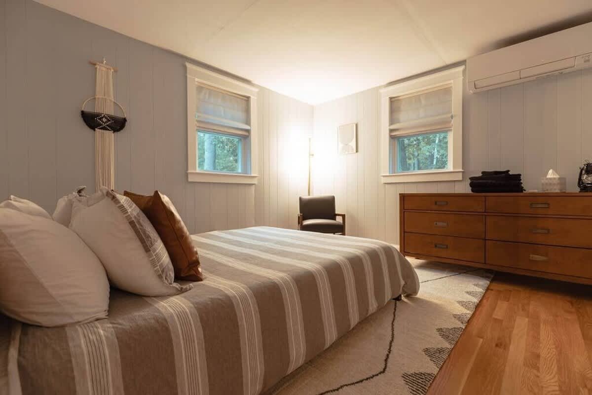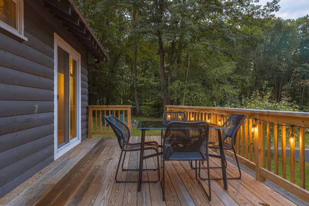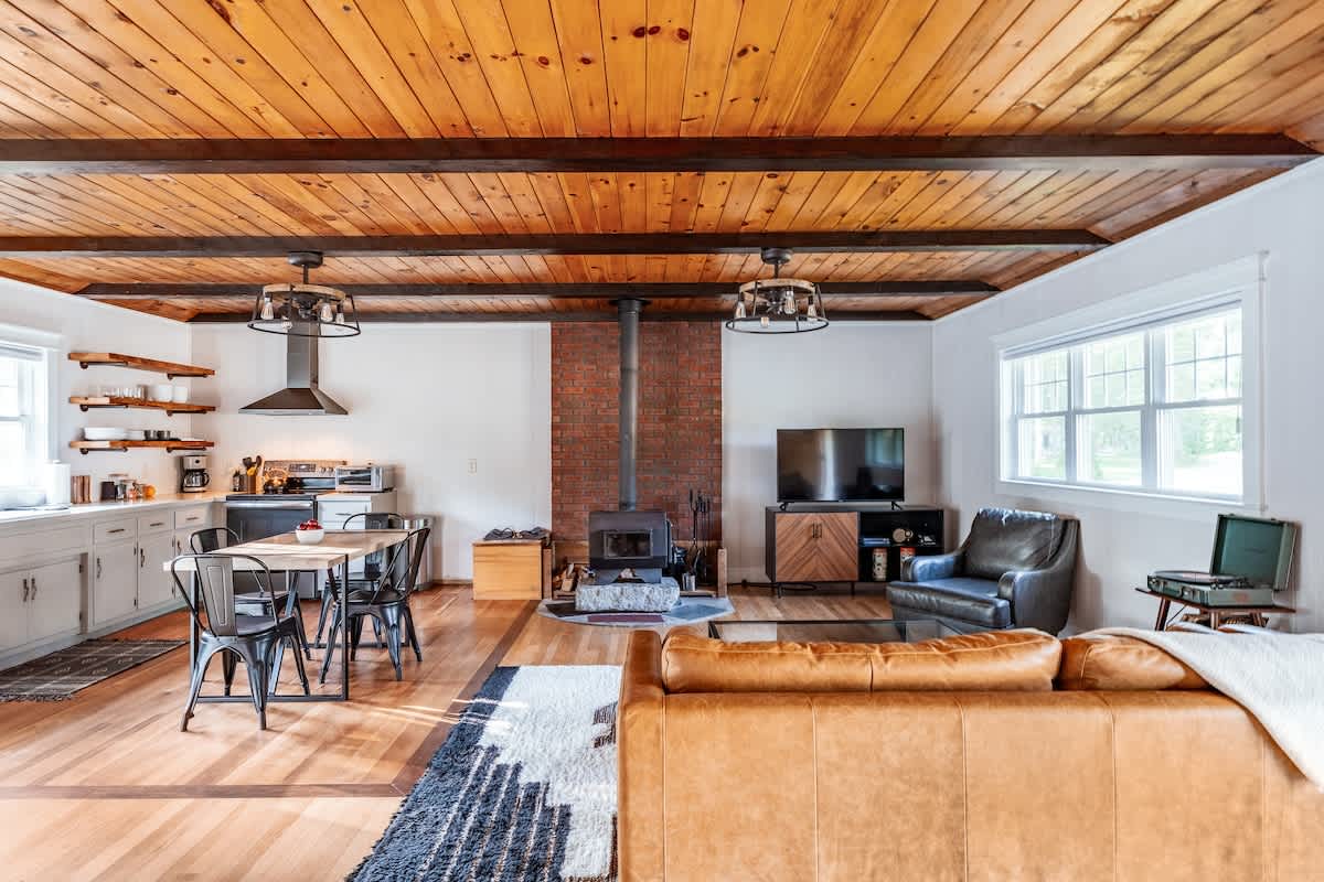 Curated two-bedroom cabin offering mid-century modern style just 15 minutes outside of Portsmouth, NH and 10 minutes from the best of Maine’s “Vacationland.” A perfect location to enjoy shopping, dining, beaches, and hiking. Seasonal views of the Piscataqua River. Dogs welcome with a $100 pet fee.