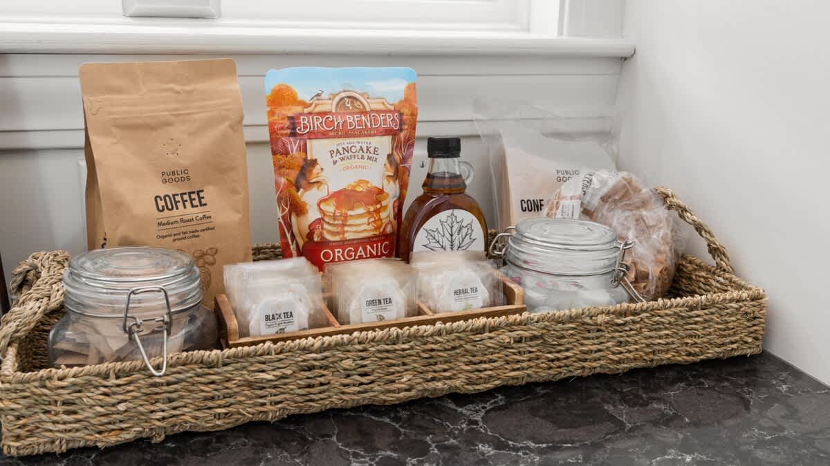 When you walk into the home, a welcome gift basket is ready for you: complimentary coffee, tea, and other goodies. We also provide you with nice toiletries, luxury linens, & prompt response time if you need anything!