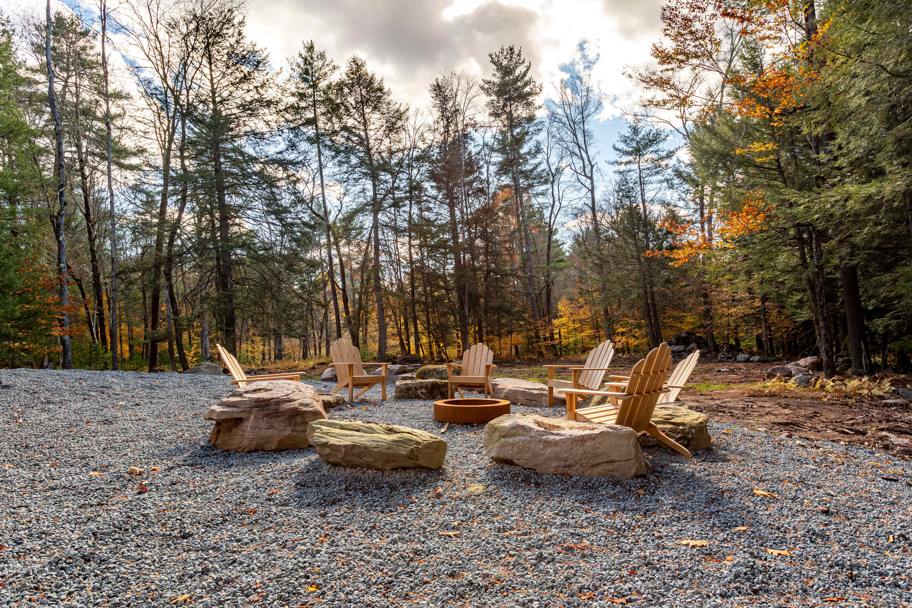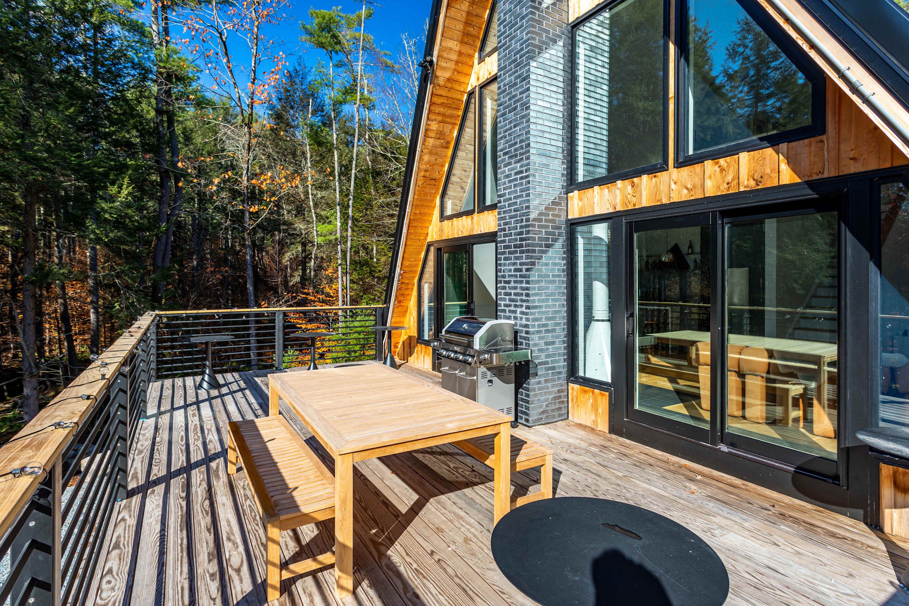 An expansive deck provides the perfect place to enjoy morning coffee, dine outdoors, or unwind with a glass of wine as the sun sets. In the evenings, gather around the outdoor fire pit beneath a canopy of stars and whispering pines.