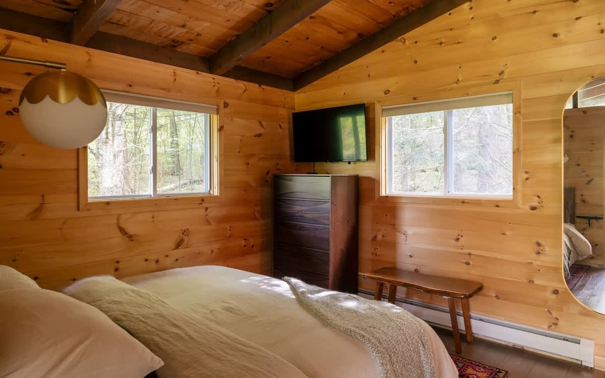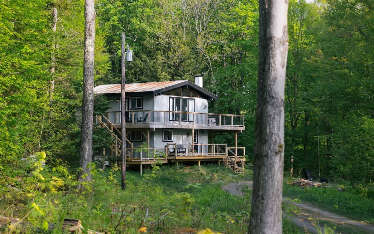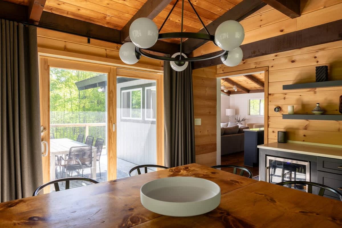 Our mid-century getaway has been thoughtfully updated with modern-day amenities for the utmost enjoyment: a peaceful setting, four bedrooms, three new bathrooms (including two ensuite bathrooms), brand new kitchen with modern appliances, indoor on-demand propane fireplace, outdoor fire pit area, outdoor dining area, modern decor and amenities...all while being central to some of the best Vermont skiing, dining, and activities.