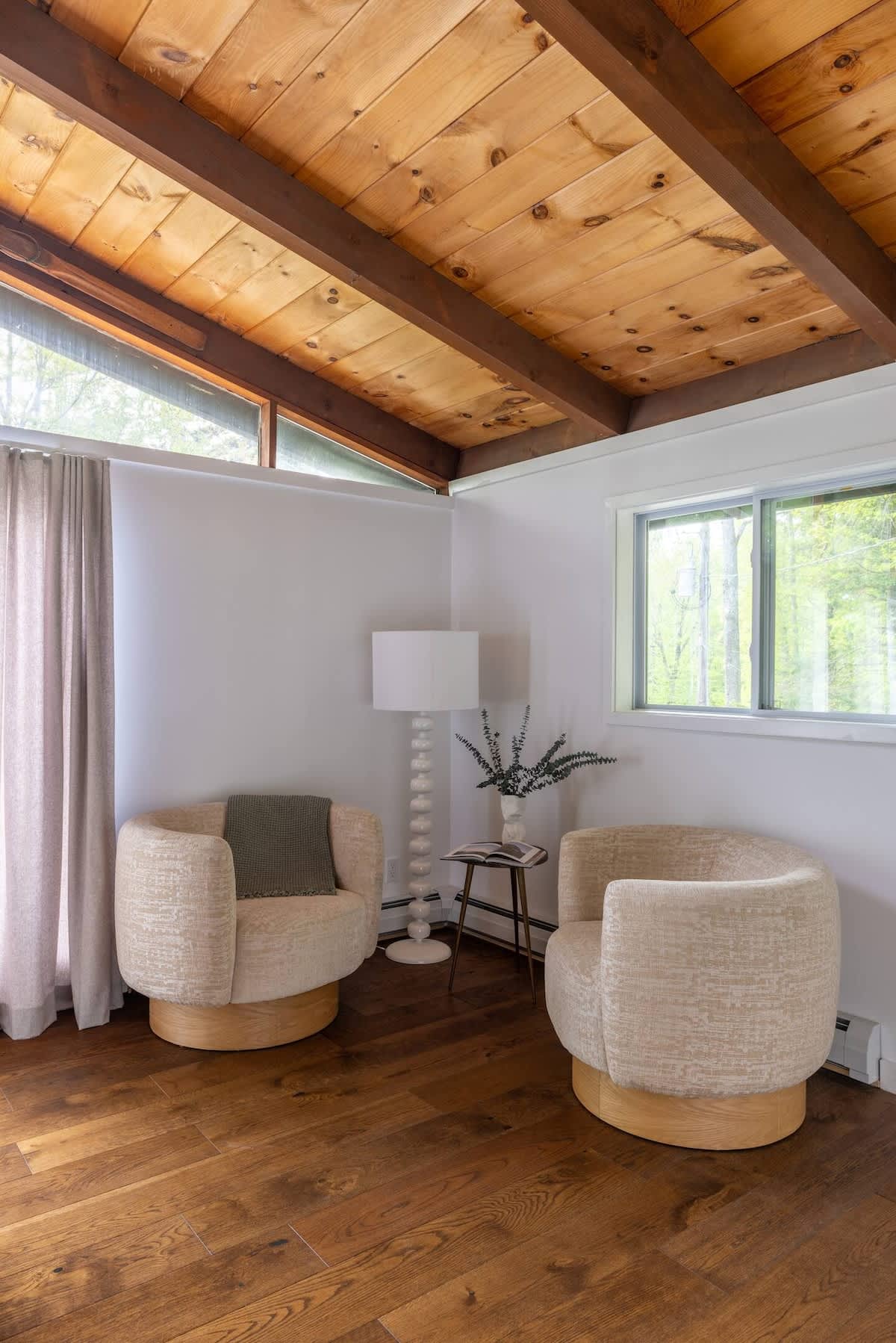 Our mid-century getaway has been thoughtfully updated with modern-day amenities for the utmost enjoyment: a peaceful setting, four bedrooms, three new bathrooms (including two ensuite bathrooms), brand new kitchen with modern appliances, indoor on-demand propane fireplace, outdoor fire pit area, outdoor dining area, modern decor and amenities…all while being central to some of the best Vermont skiing, dining, and activities.