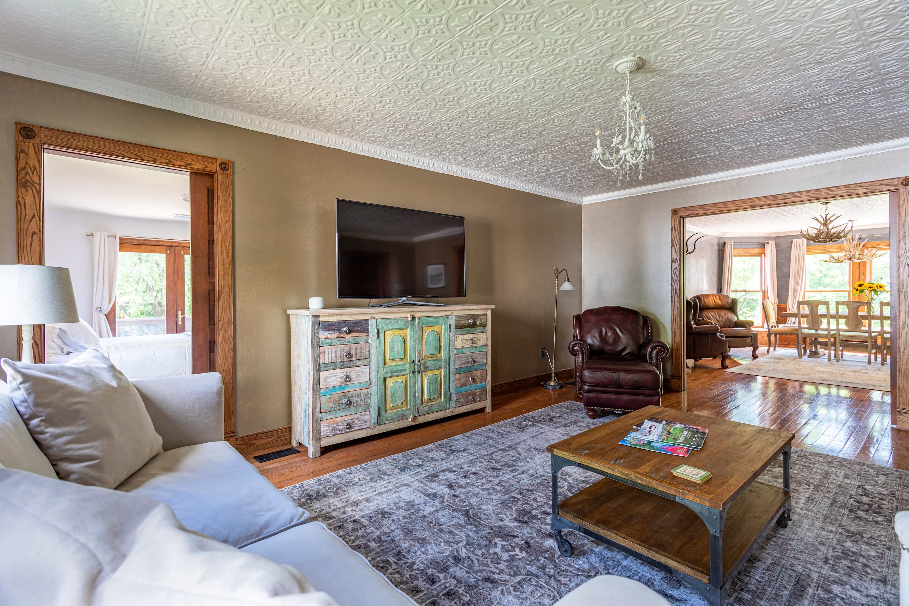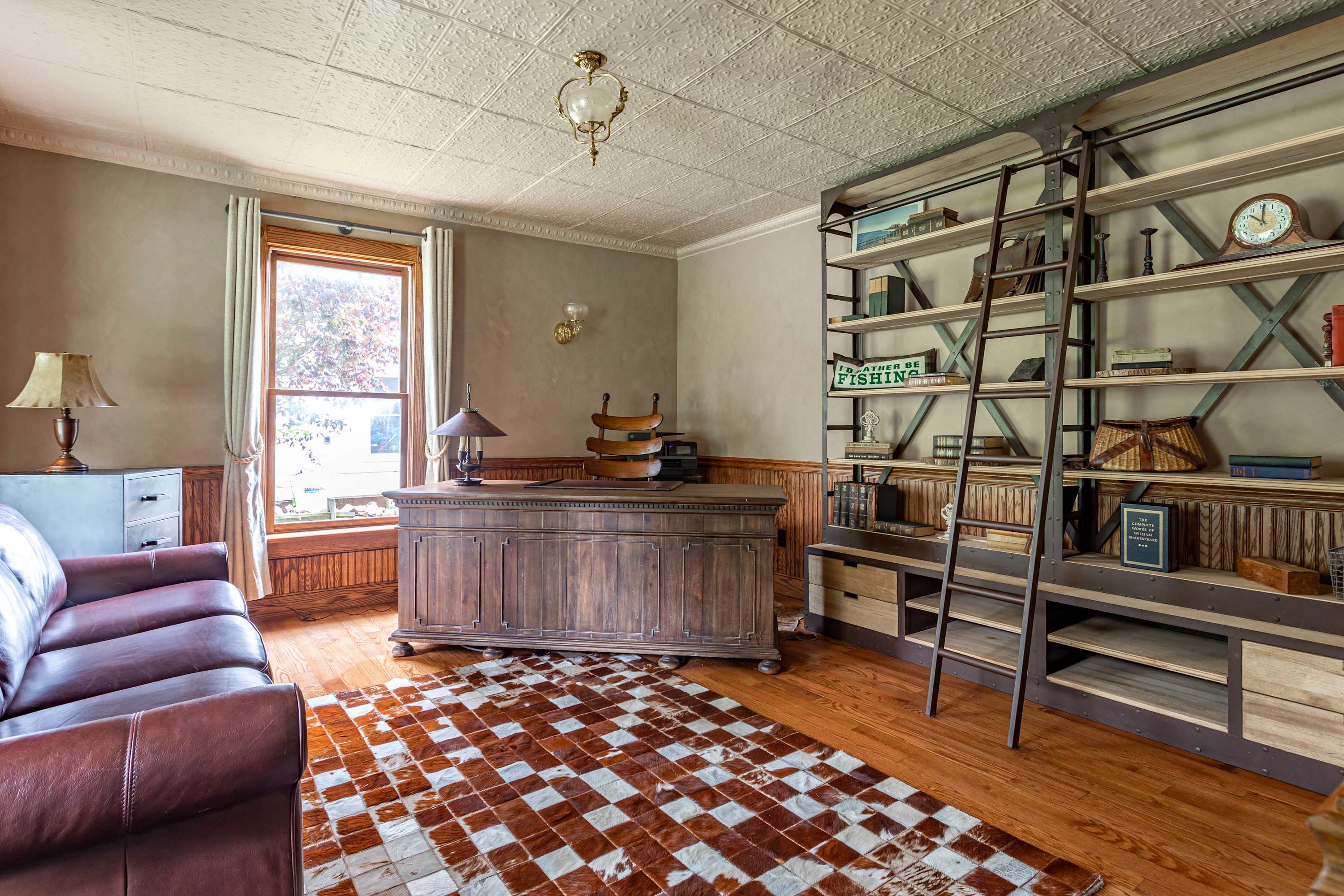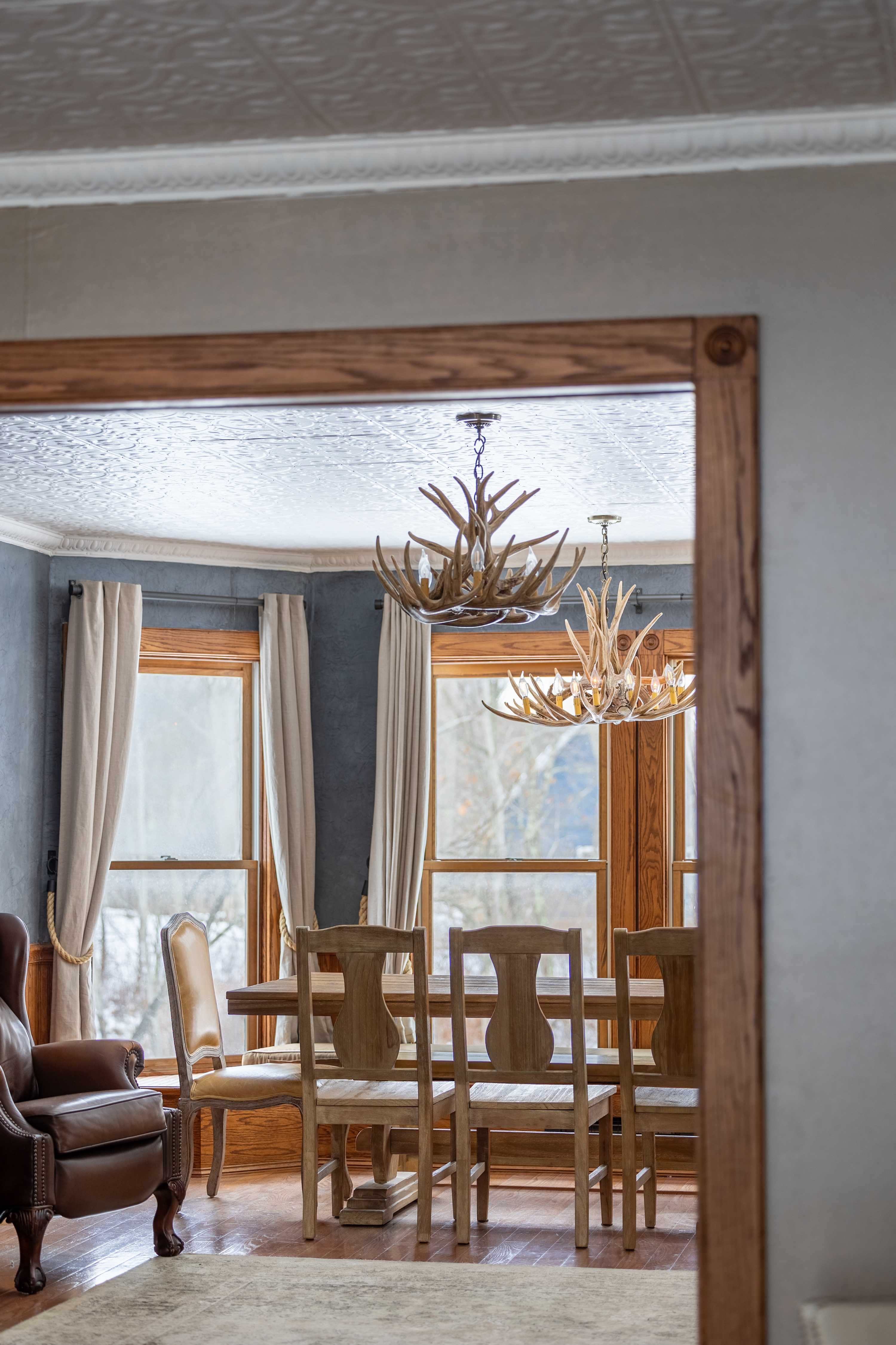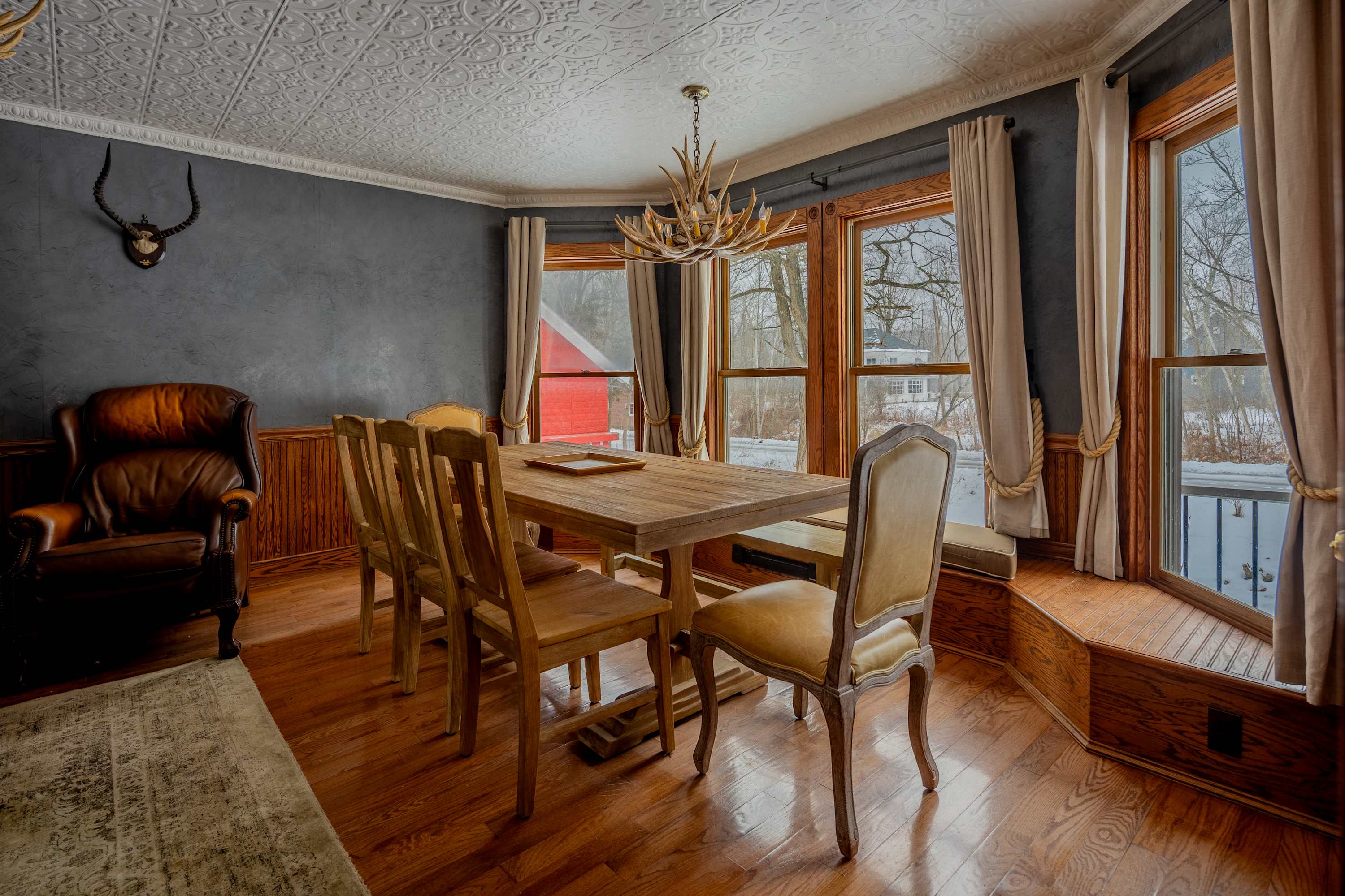 The Makely House is a traditional farmhouse / Victorian influenced home with original architectural details featuring multiple levels, generous outdoor space and a welcoming wraparound porch perfect for morning coffee or evening unwinding. Original tin ceilings and warm hardwood floors set the tone, complemented by rich wood trim throughout.