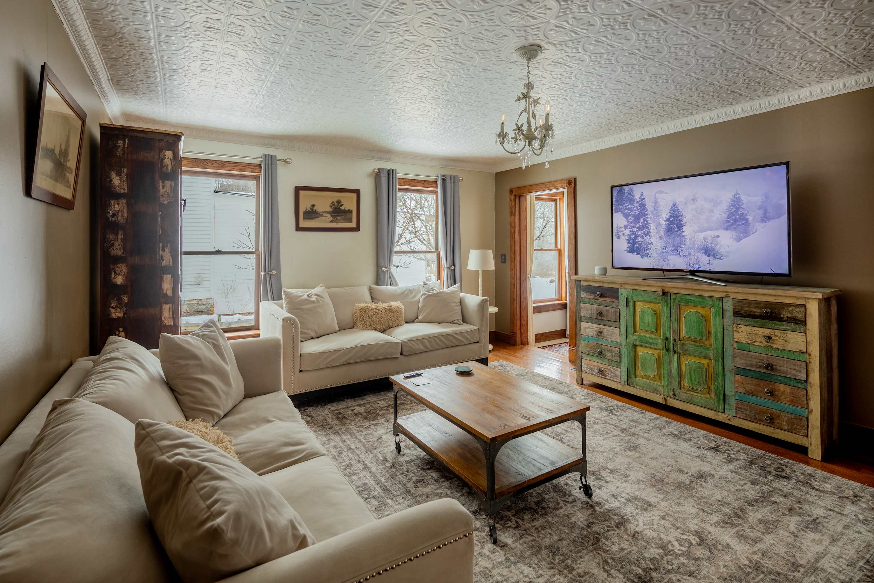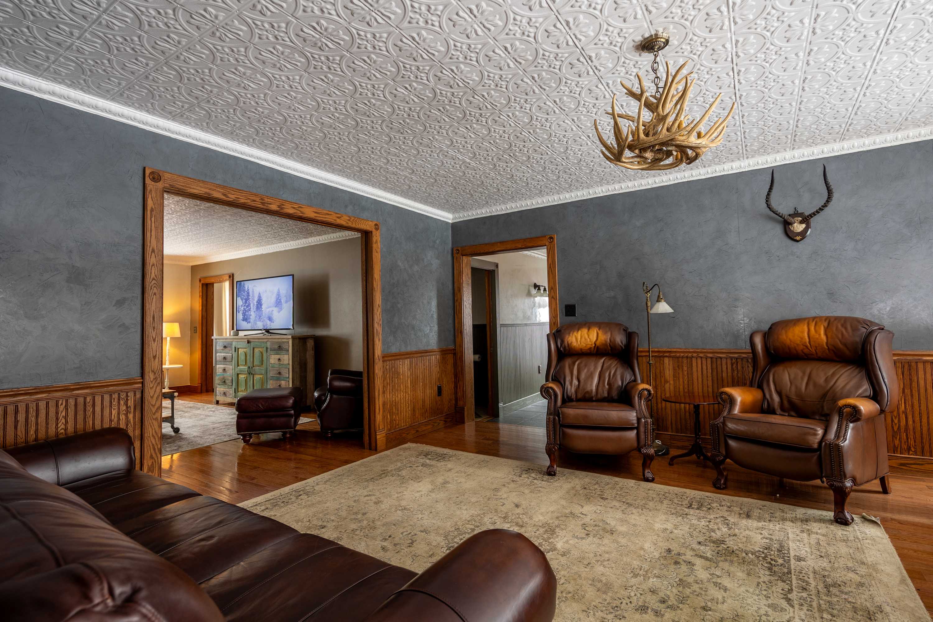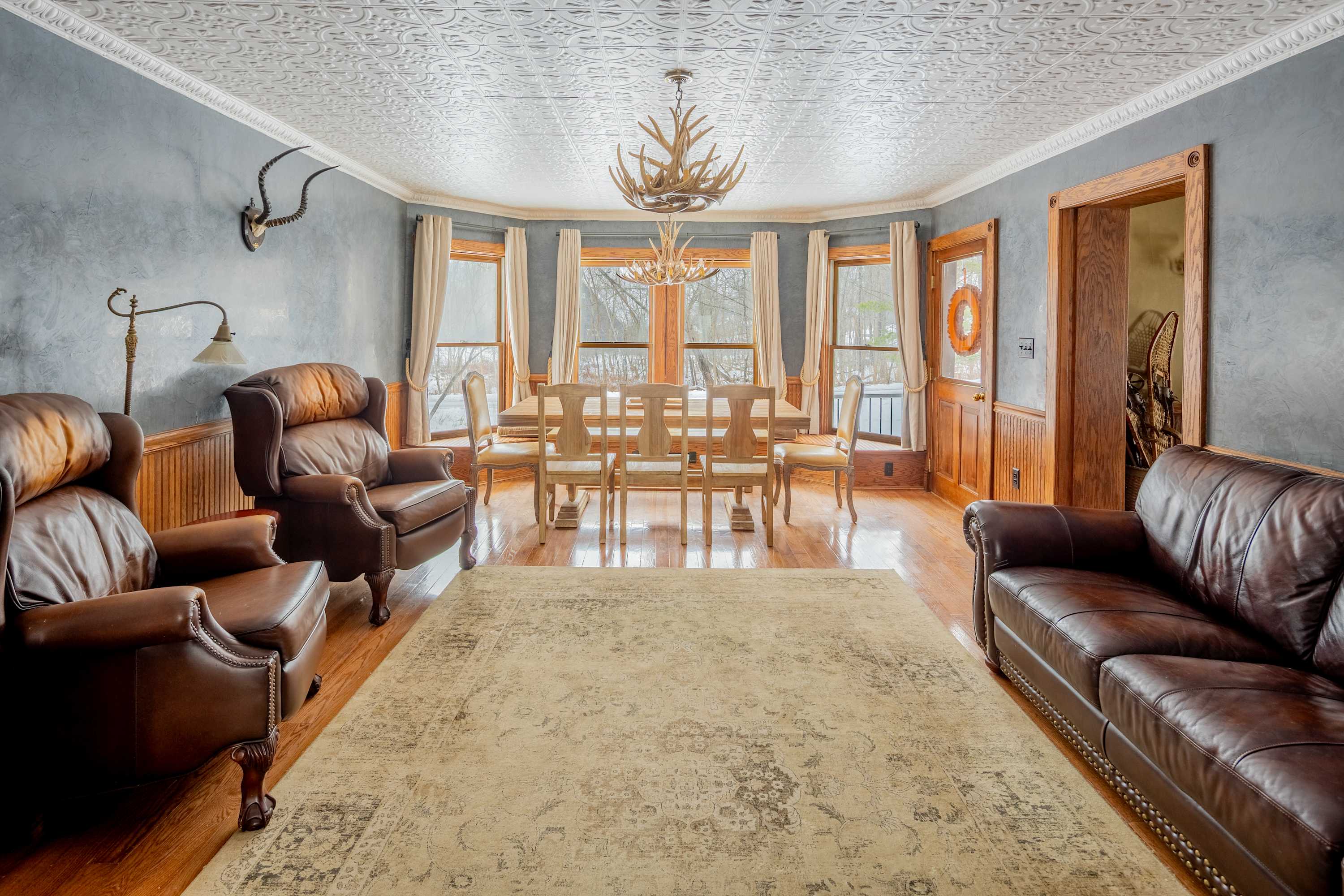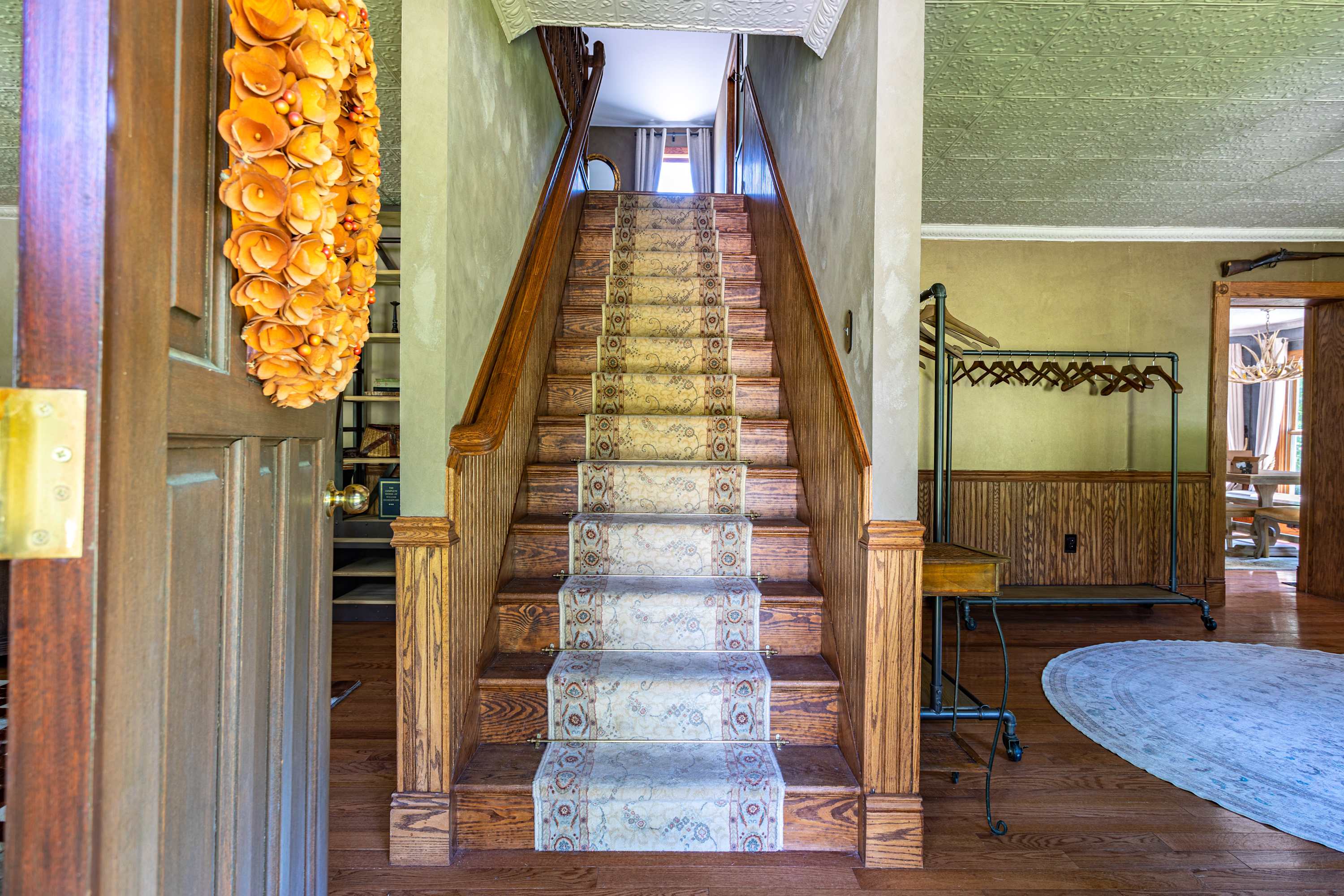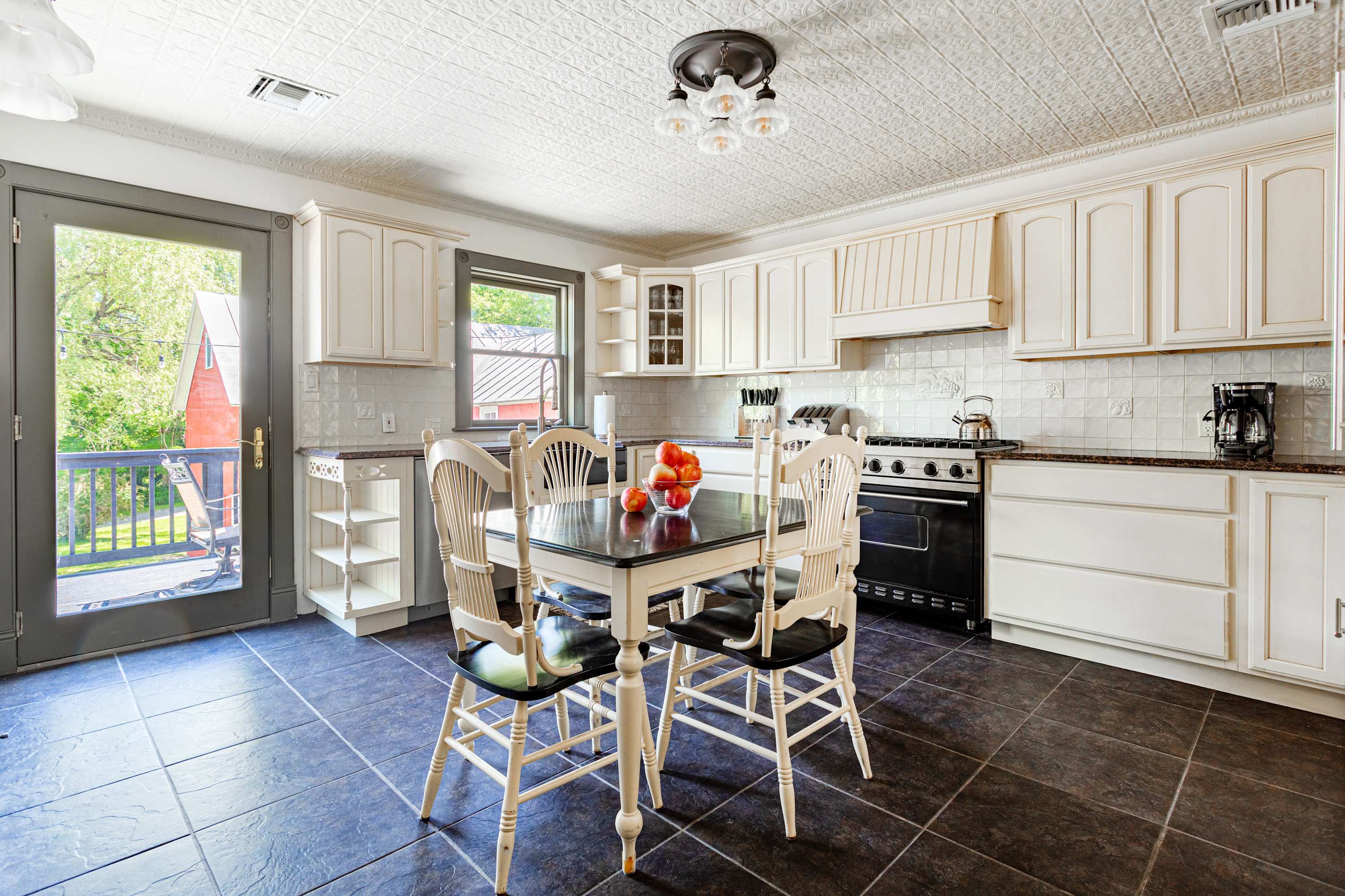 The Makely House is a traditional farmhouse / Victorian influenced home with original architectural details featuring multiple levels, generous outdoor space and a welcoming wraparound porch perfect for morning coffee or evening unwinding. Original tin ceilings and warm hardwood floors set the tone, complemented by rich wood trim throughout.
