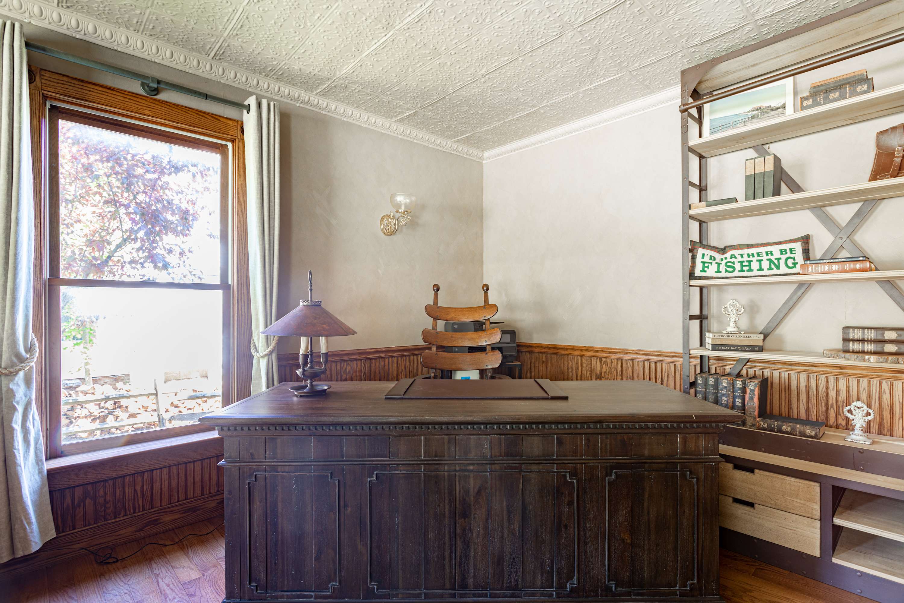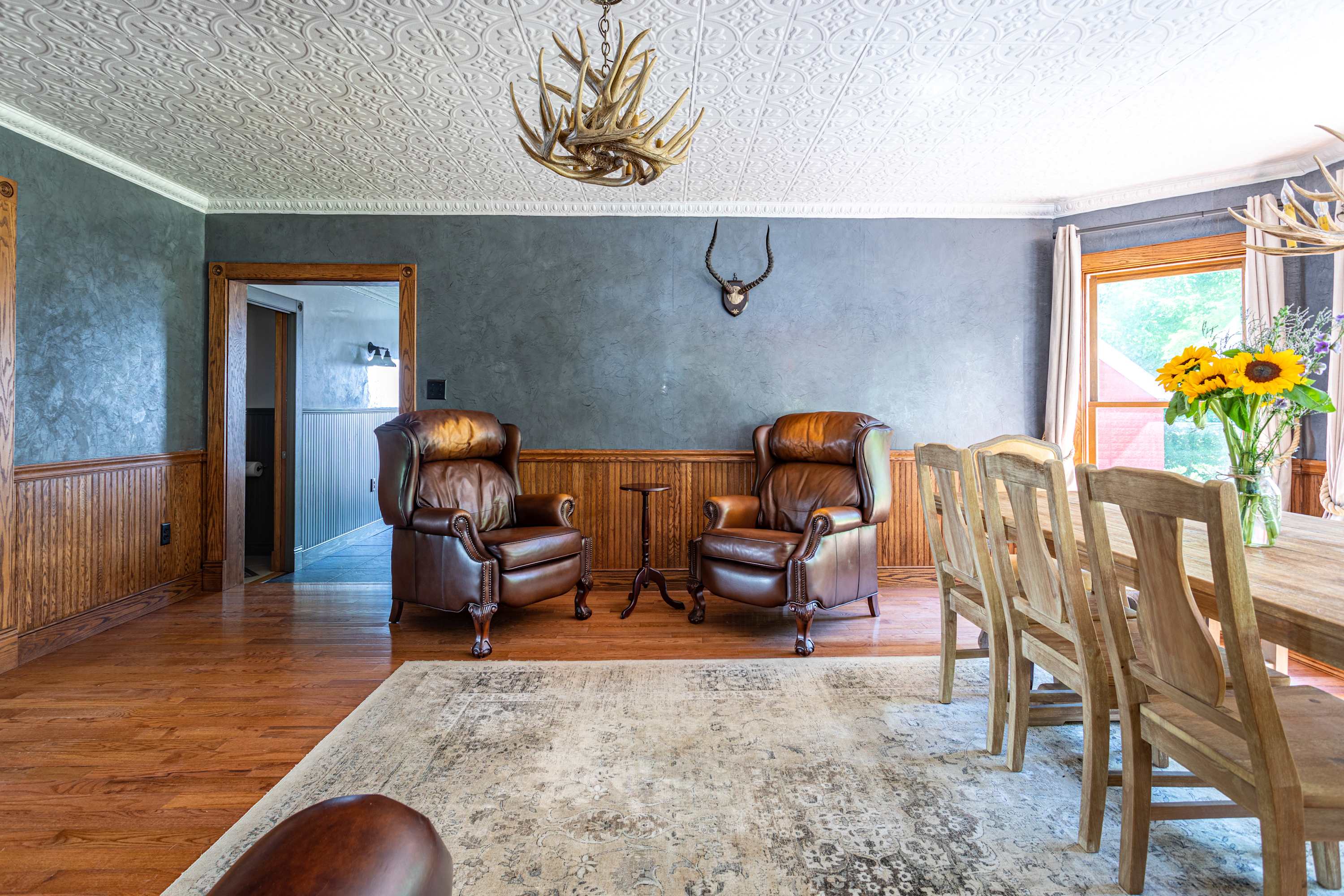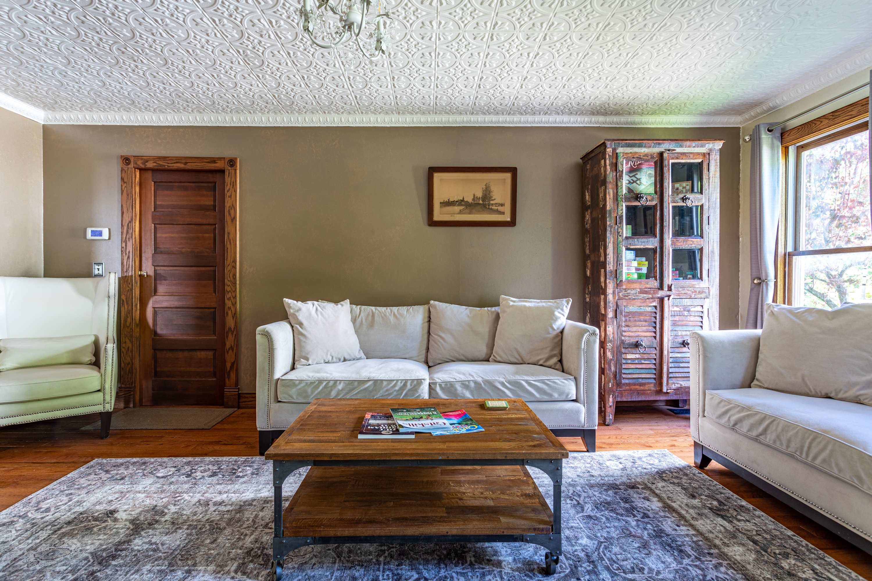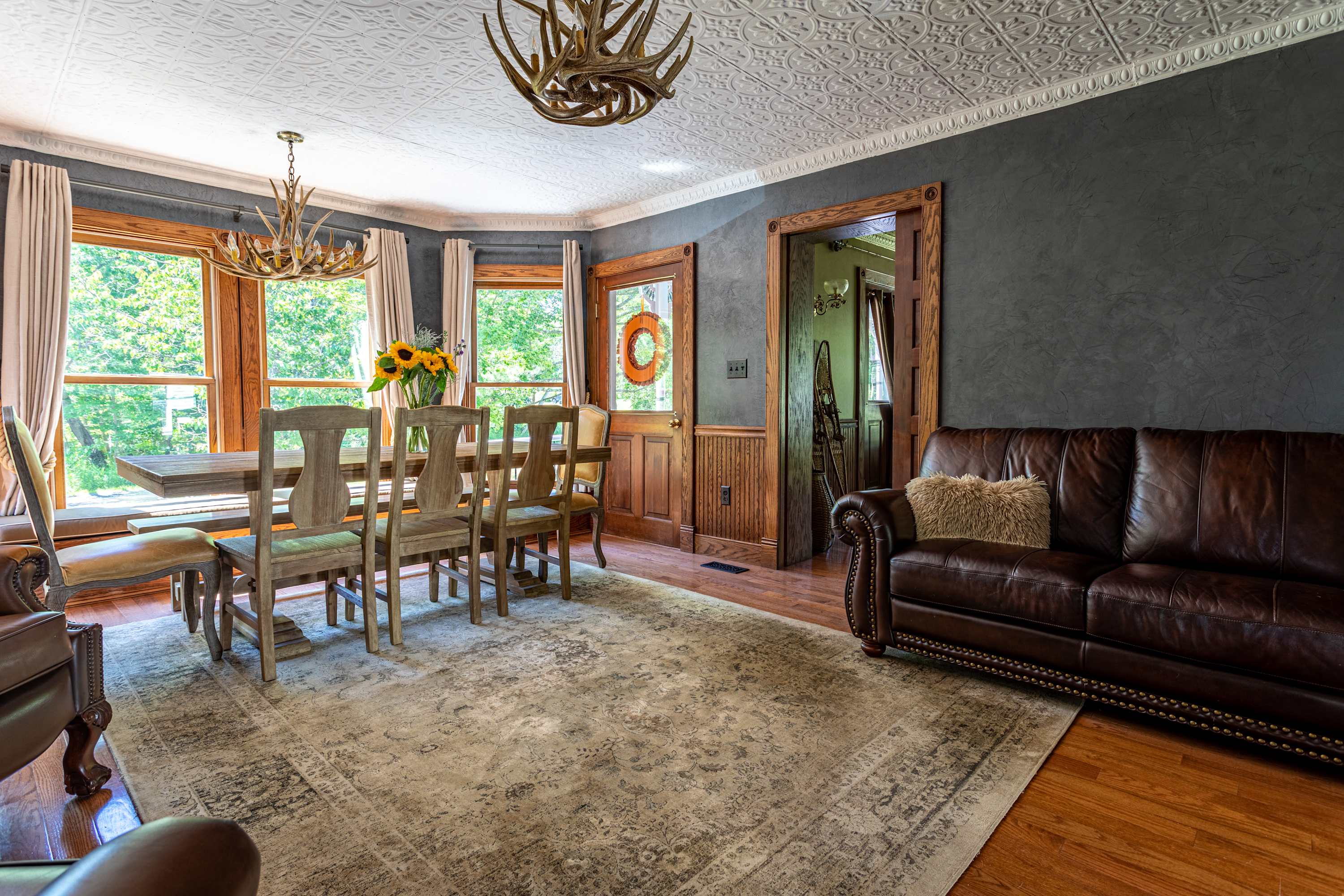 The Makely House is a traditional farmhouse / Victorian influenced home with original architectural details featuring multiple levels, generous outdoor space and a welcoming wraparound porch perfect for morning coffee or evening unwinding. Original tin ceilings and warm hardwood floors set the tone, complemented by rich wood trim throughout.
