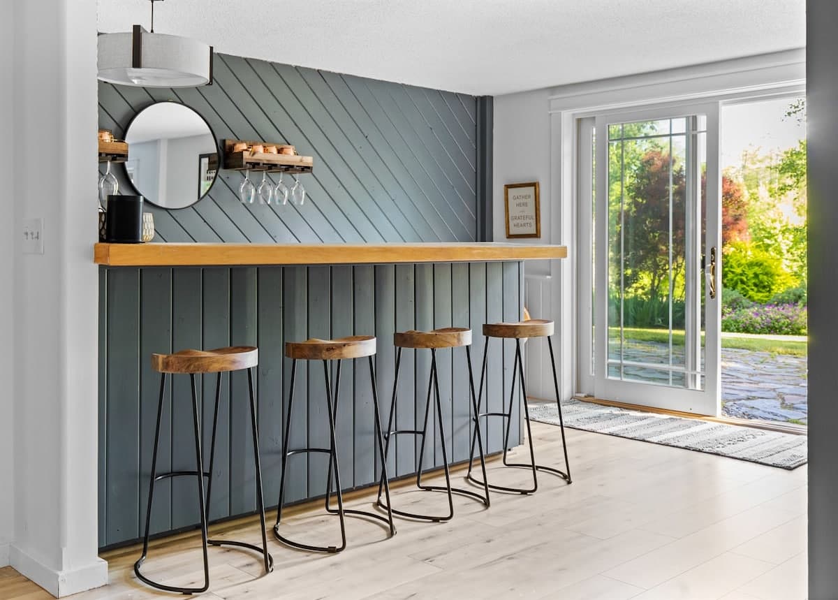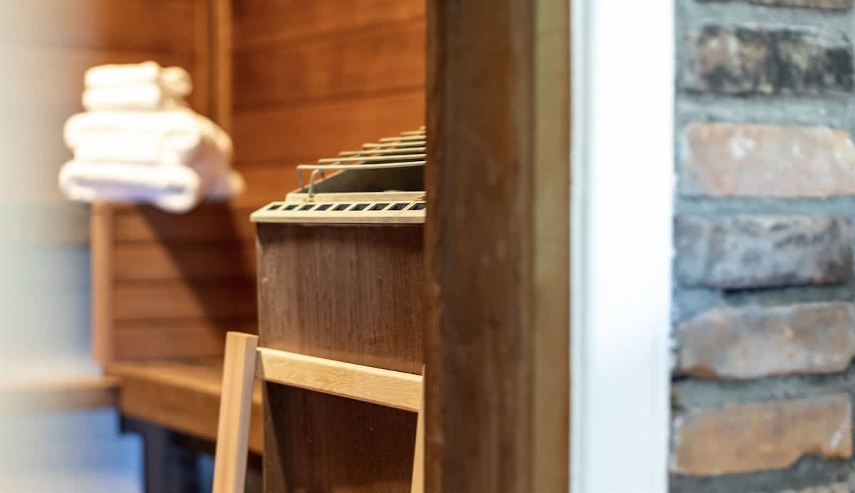 The lower living room features a 75” flat screen smart TV, full bathroom, sauna, game closet, and wet bar with sink, beverage fridge and plenty of glass ware and bar tools to mix your favorite cocktails.