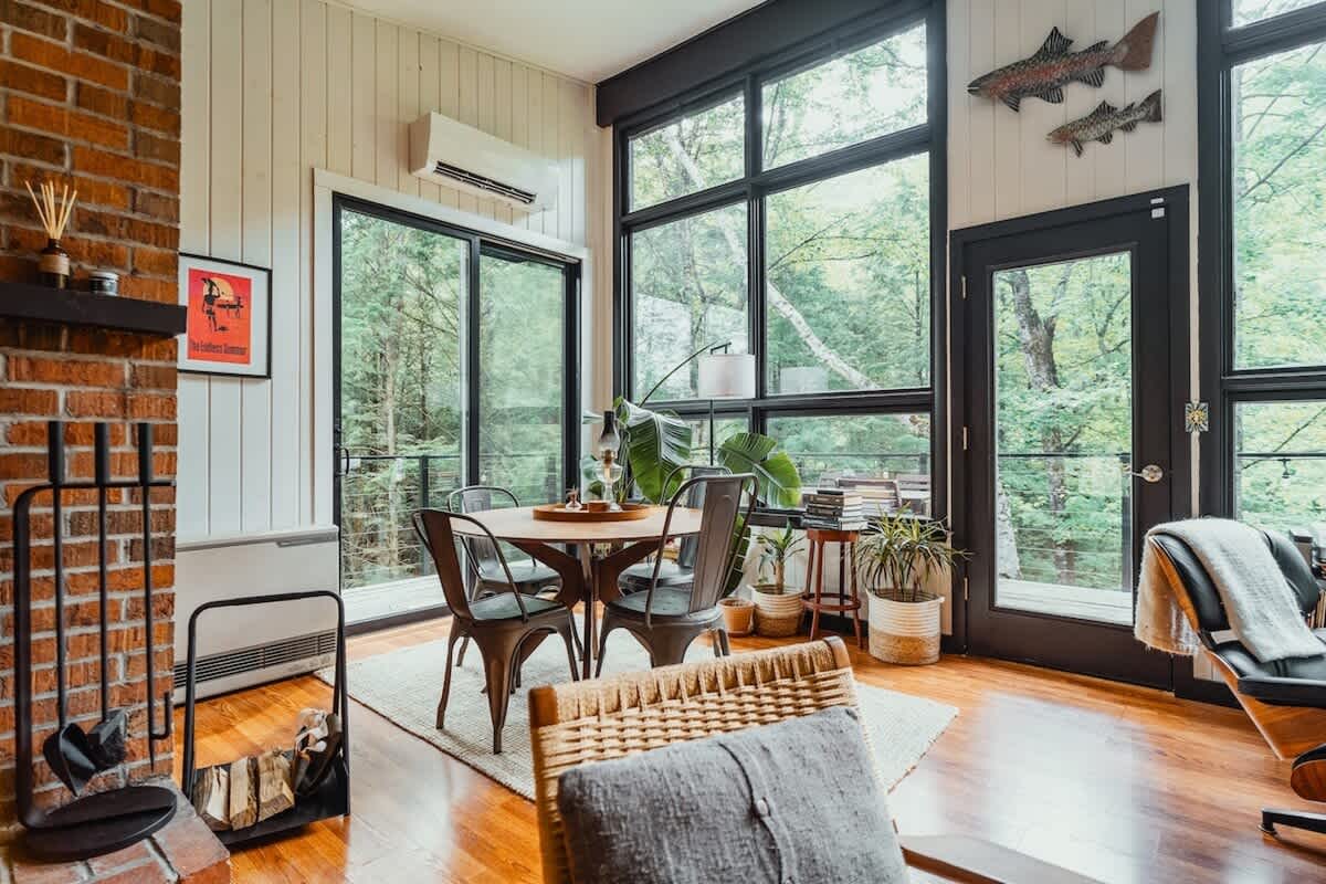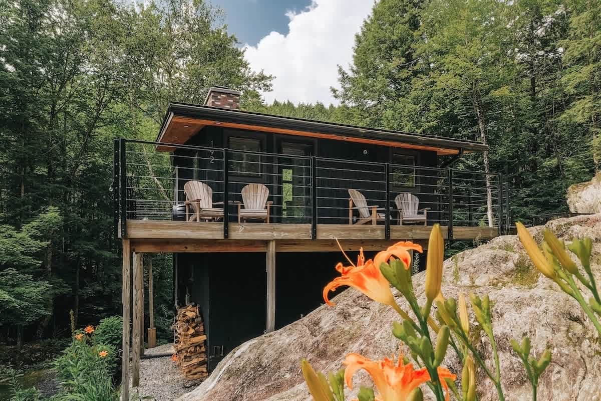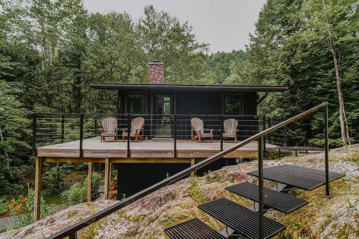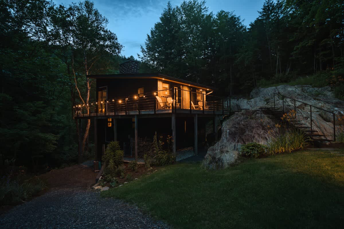 Welcome to The Treehaus! A midcentury modern escape in the Mad River Valley. This one-of-a-kind getaway offers three bedrooms, two updated bathrooms, walls of windows, multiple decks (including a yoga deck!), outdoor dining…and 500 feet of frontage on the Mad River with a private swimming hole! All while being 10 minutes away from two ski resorts! Come enjoy our truly special piece of Vermont!