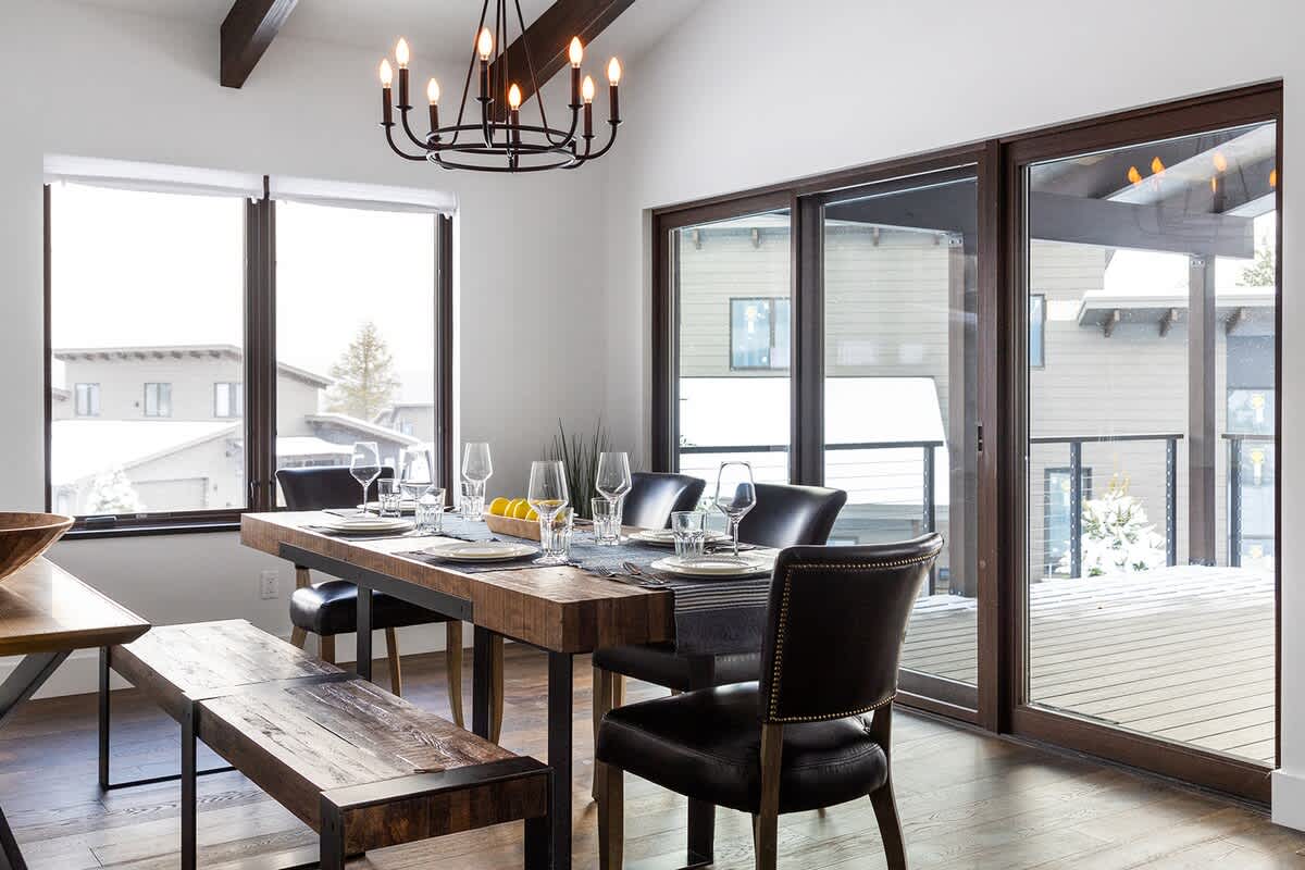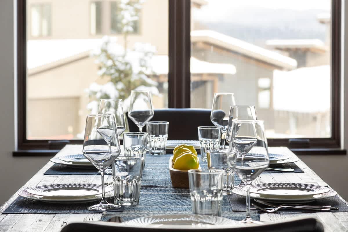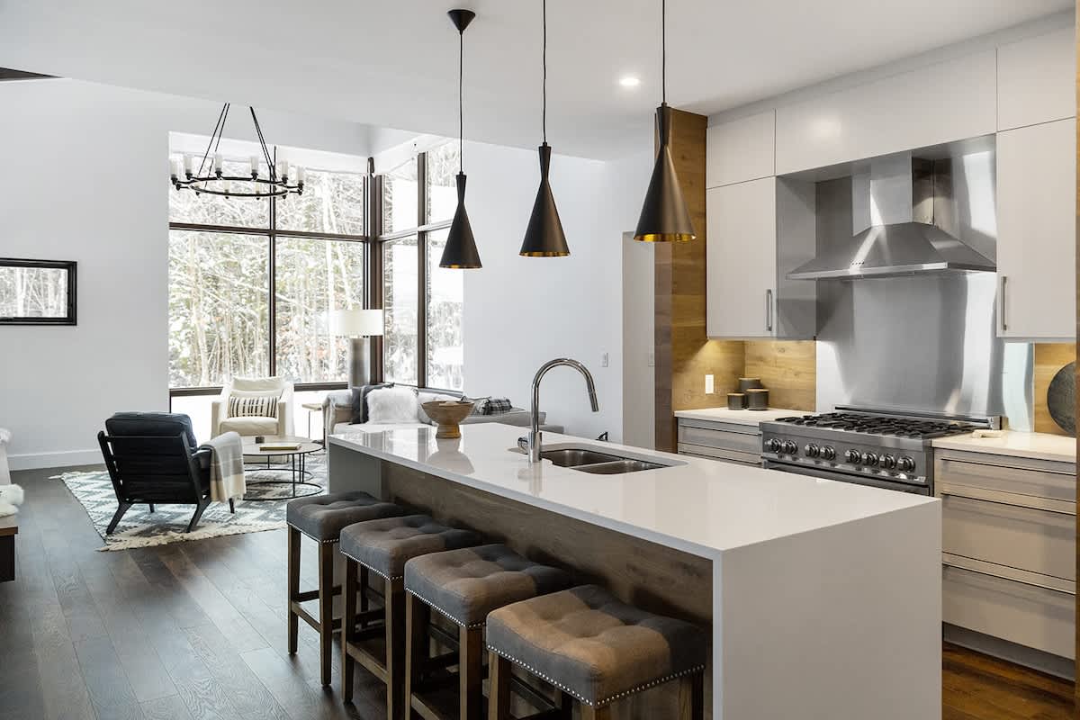 The gourmet chefโs kitchen is outfitted with a brand-new suite of top of the line appliances โ including a gas range, a roomy French-door fridge, and an island seating four. Come together for a delicious meal at the beautiful open dining table and make memories that last a lifetime. The kitchen comes stocked with coffee, tea, sugar and creamers, olive oil, salt & pepper, and a surprise welcome basket!