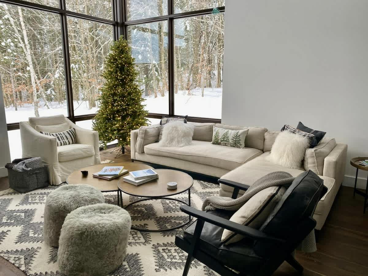 Welcome to Wildewood in Stowe, Vermont! This exquisite property offers you a modern mountain luxury experience within minutes of Stowe Mountain Resort. Pass through an iconic covered bridge and ascend through a private entrance to your vacation in the mountains. Amenities you’ll love: Access to community pool and tennis, gas fireplace, home theater with 120″ 4K screen, chef kitchen, plush hotel-quality towels and linens, separate den with SmartTV, garage with tons of gear storage!